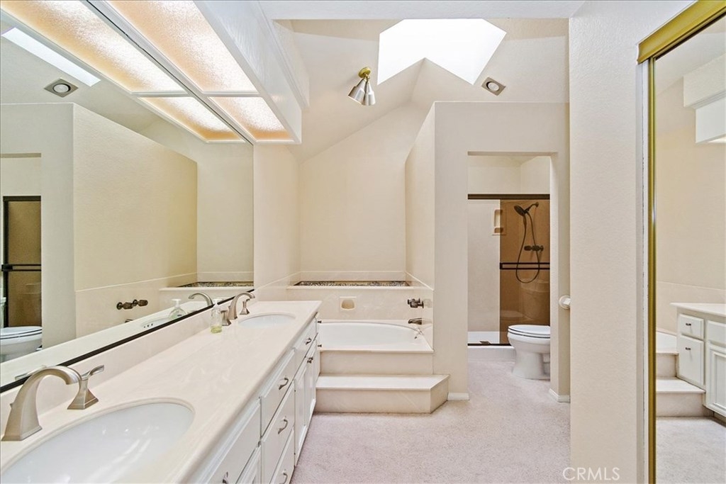 View, View, View of the Walnut Canyon Reservoir just off the back yard porch area, a true hidden Oasis. You will enjoy the evening sunsets with your favorite beverage nightly. The home sits on a corner lot just off a much-desired cul-de-sac featuring 2 master style suites, plus loft, family and dining room areas. 2 wood-burning fireplaces, one in the master suite and the other in the family room. Many skylights throughout which show off the beautiful vaulted ceilings keeping the unit bright and airy. 2 full bathrooms just off the bedrooms plus 1/2 bath in the family room area. Custom powered blinds/window coverings, cedar lined closets, mirrored closet doors, central vacuum system, 2 car garage, driveway with plenty of parking, recently upgraded electric panel featuring 200 amp and 100 amp service which is electric vehicle ready, bring your Tesla! The Rimcrest Villas community features a pool for those hot day's of summer and a hot spa for a colds winter day or night. A truly fabulous gated community situated near the top of the hill where E Canyon Rim Rd ends at S Serrano Ave. Here's your chance to live in a beautiful gated community with views as far as the eye can see in lovely Anaheim Hills California. A true show stopper that won't last long so hurry!