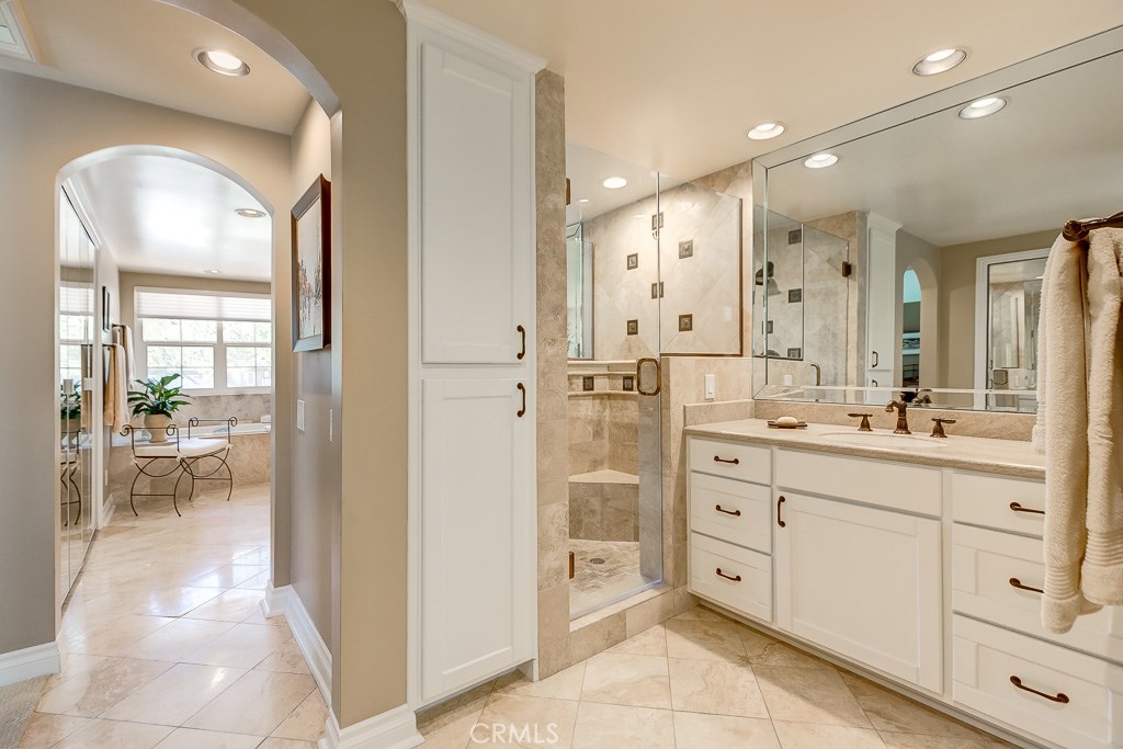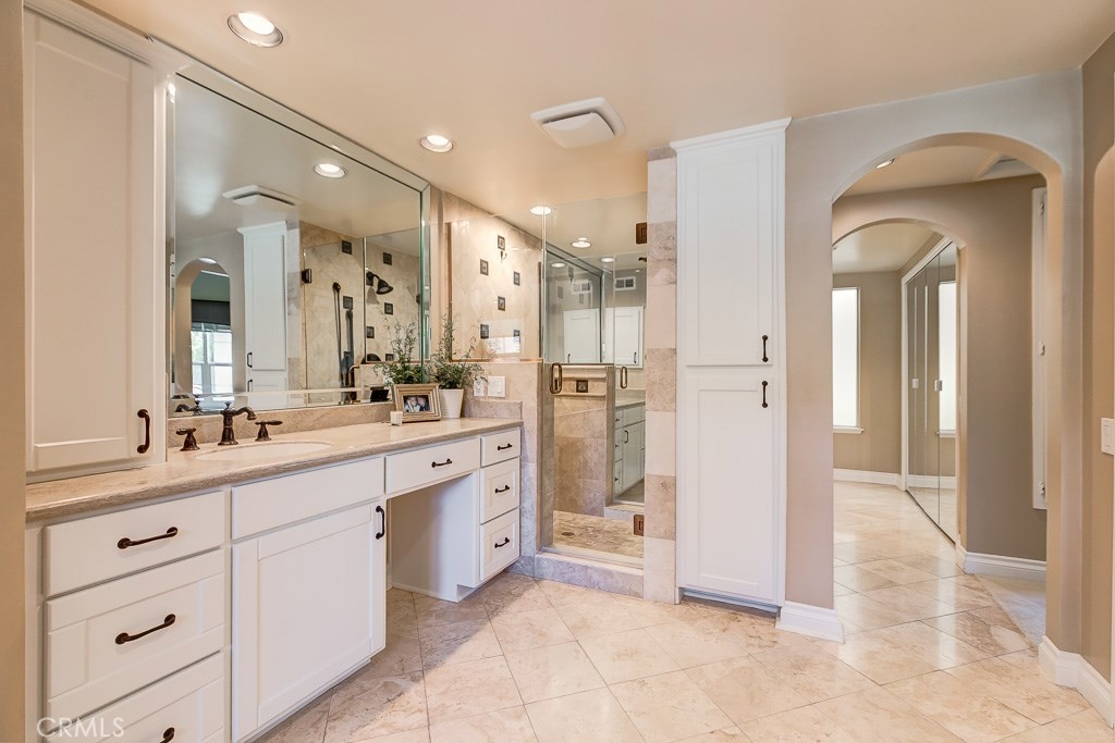 Beautifully remodeled home with city, hills and mountain views. As you enter through the gated courtyard, their is a fountain and beautiful landscaping by Rogers Gardens. Once inside you'll notice the light open floor plan and high ceilings. The living room features a fireplace and lovely views. The formal dining room offers a gorgeous light fixture and skylight. The kitchen has been remodeled with granite counter-tops, raised ceiling, all new appliances, pots and pans drawer and lazy susan, it offers a separate eating area, or breakfast nook. The bathrooms have all been beautifully remodeled. Downstairs offers a possible 3rd bedroom which has a built in desk and Murphy bed. Upstairs features the master bedroom suite, with fireplace, and sitting area. The master baths features his and hers separate bathrooms. There is also an additional 2nd master bedroom with it's own bath, as well as a loft with built in bookshelves. The interior also offers new vinyl white oak flooring downstairs, surround sound, crown molding, newer custom drapes, wet bar, newer custom light fixtures, mirrored closet doors, recessed lighting and more.