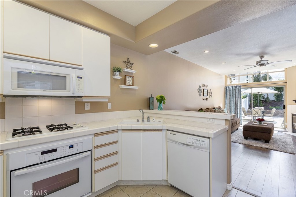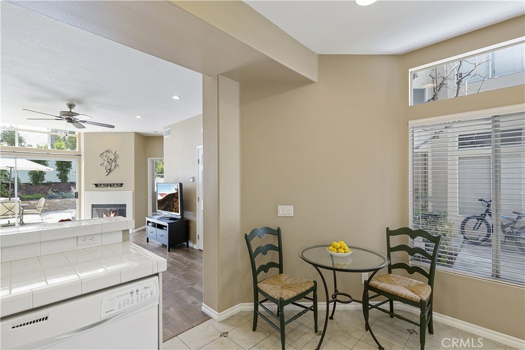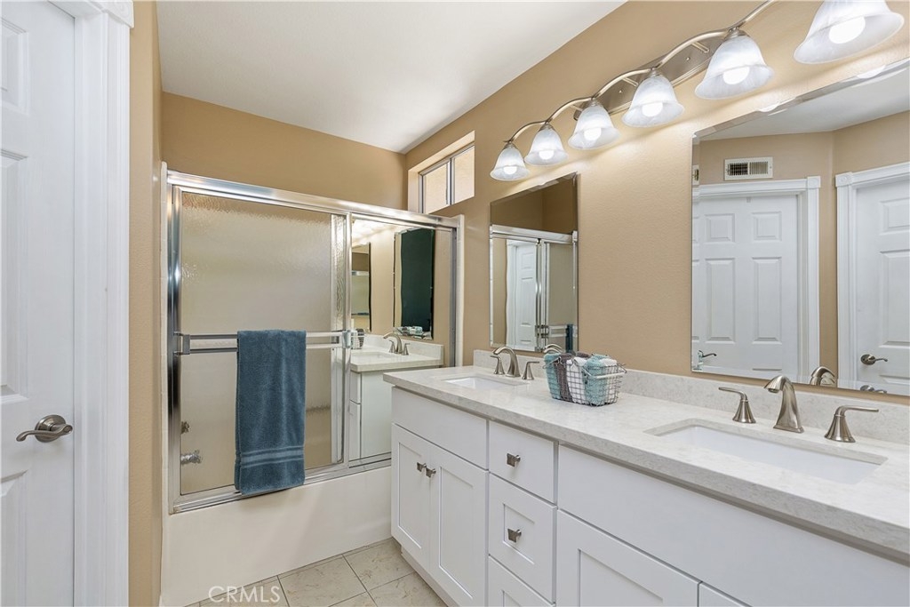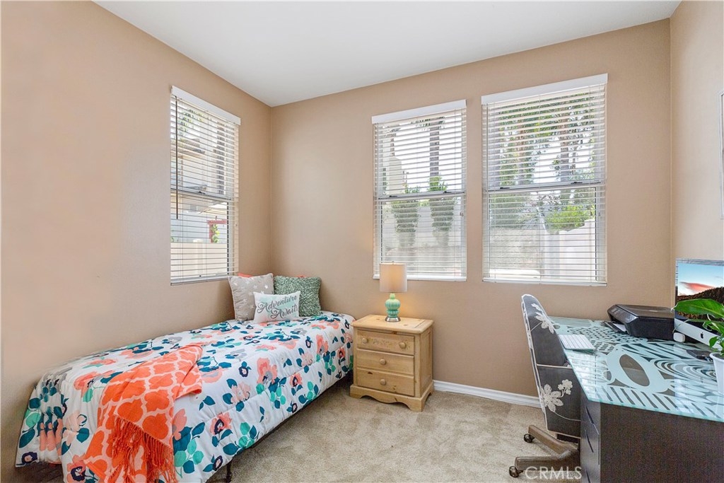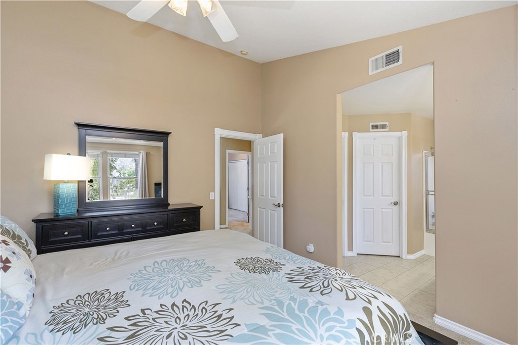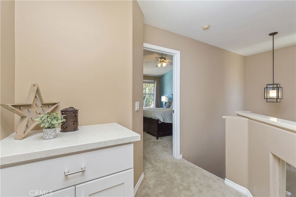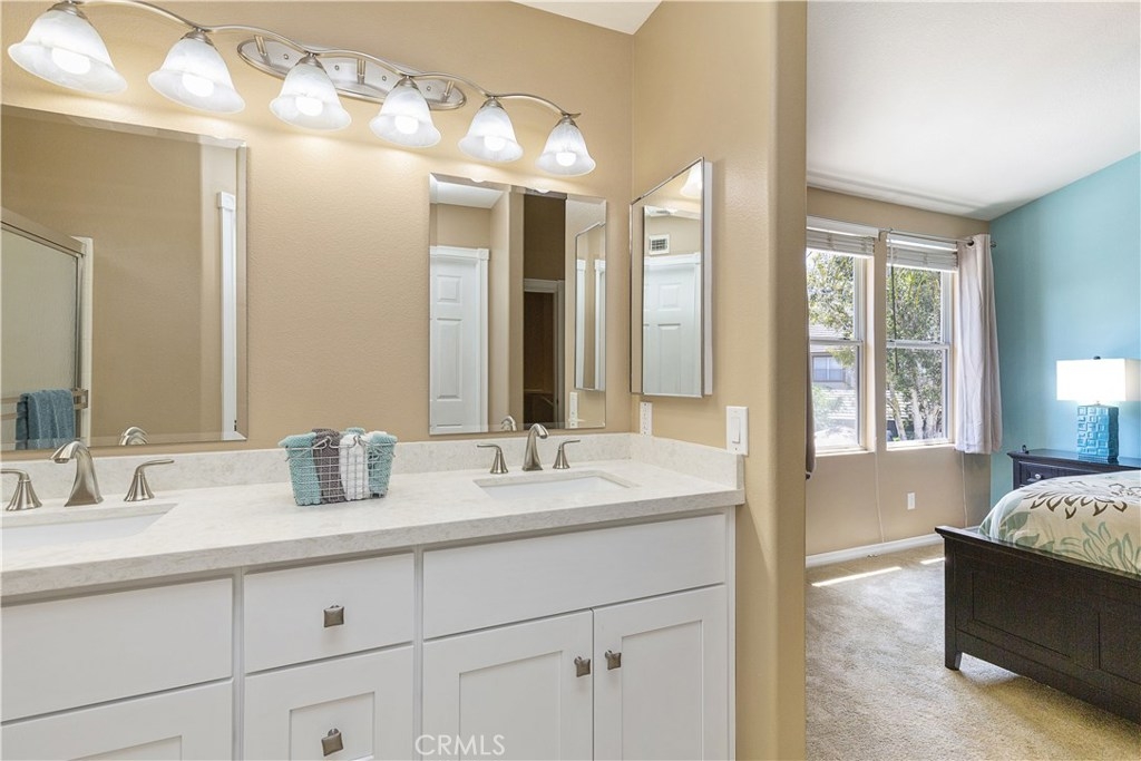 Welcome to Summit Court! This desirable plan has 3 Bedrooms with 3 Bathrooms and tons of natural light! 1 Bedroom and a Bath are located Downstairs. Once you enter this home, you are welcomed into the well lit living room with wood flooring, neutral paint, recessed lighting, ceiling fan and a fireplace. From living room and kitchen, you'll enjoy the view to your own back yard with tons of room to entertain, play games or simply relax. The kitchen has a gas stove-top and oven, dishwasher and microwave with ample cabinet space for all your kitchen needs. Kitchen has access to attached garage with inside laundry area. Upstairs the Master Bedroom features ceiling fan, wooden window blinds and a view of your own lush green backyard. The master bathroom has been upgraded with gorgeous Quartz Counters and Vanity with his and hers sinks, a shower over a tub, a walk in closet and private toilet room. The additional upstairs bedroom has a ceiling fan and it's own bathroom with a walk-in shower. Upgrades include recessed lighting, custom wooden window blinds, ceiling fans, quartz counters, Ecobee thermostat and so much more. The Summit Court community amenities include gated pool and spa with lounge chairs and umbrellas, gas bbq's, gated playground, private gym, and clubhouse. This home is located close by Running Springs Elementary School, numerous hiking trails, Ronald Reagan Park, Tons of Shopping, Restaurants, Library, 91 Freeway and 241 Toll Road.