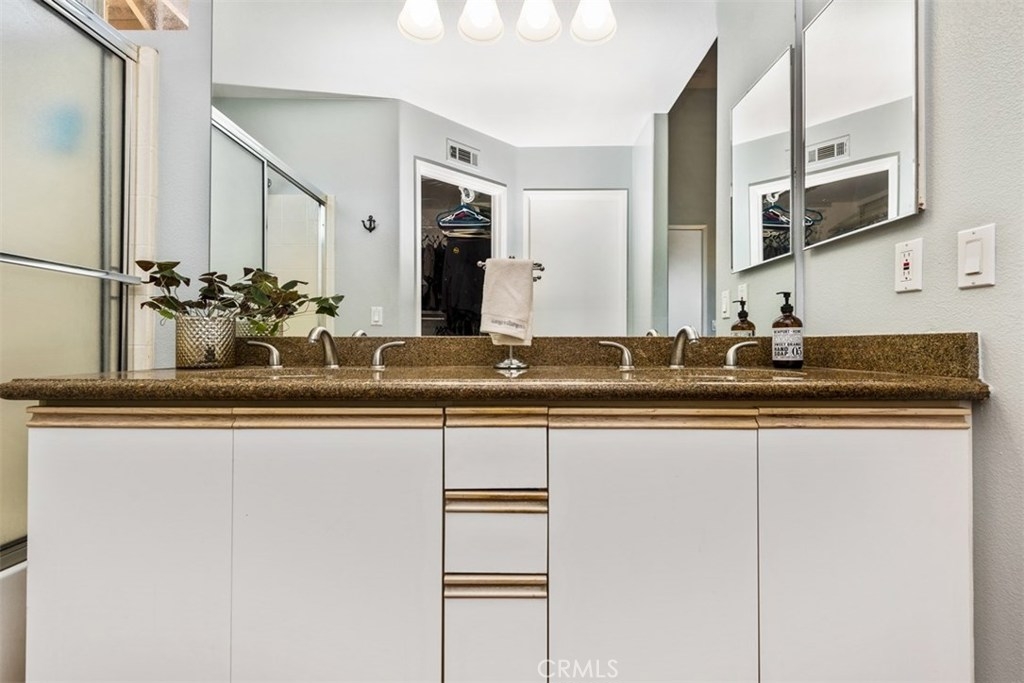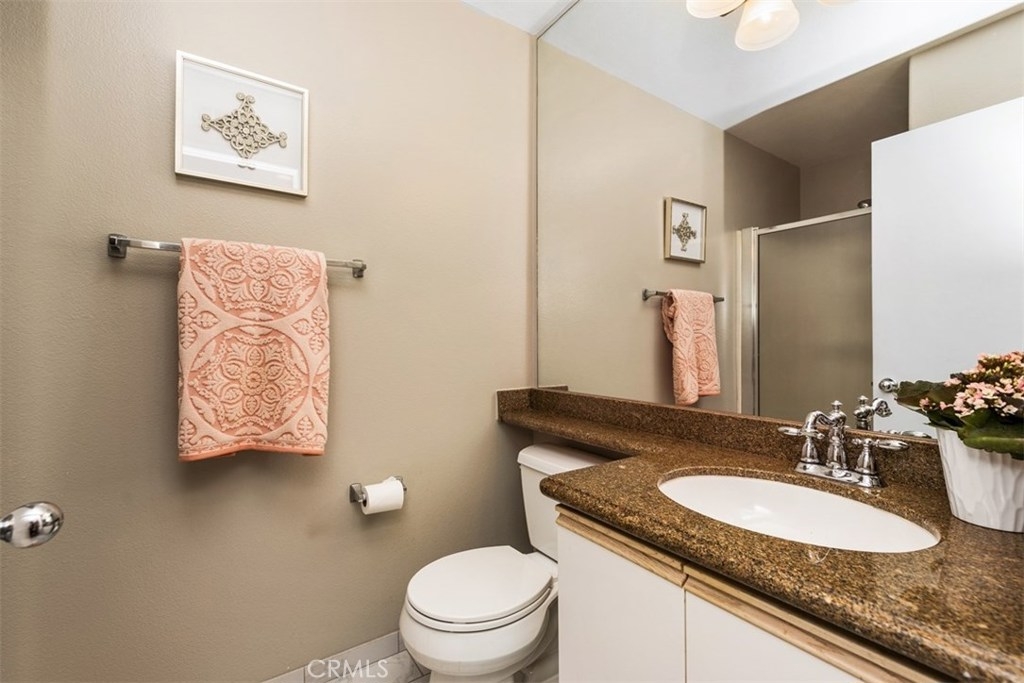 Welcome home to this beautiful three bed, three bath Summit Court condo. Enjoy walking in from a private ground level front door into a bright and open family room. Step inside and you’ll find the kitchen with updated granite countertops and enough space to create a multitude of culinary delights to serve on the breakfast bar. The convenient downstairs bedroom is great for an office, guest bedroom, or playroom, and offers an adjacent full downstairs bathroom. Walk through the sliding glass doors into the backyard with a covered concrete patio, 3 year old synthetic turf, and fruit trees. Make this your place to BBQ and relax! Upstairs is the master suite complete with dual sinks, a full bathtub and huge walk in closet. The third bedroom and full bathroom are located at the end of the hall upstairs. The home has a one car attached garage as well as an assigned covered carport directly in front of the garage. Enjoy everything Summit Court has to offer, with a beautiful pool, spa and outdoor BBQ area, fitness room, playground and ample guest parking. And for the adventurous types there are several hiking and biking trails in close proximity! Close to shops, restaurants and convenient freeway access. Don’t pass this one up!