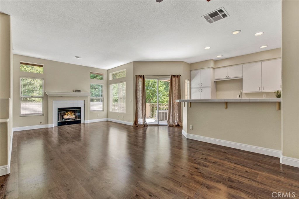 Light and bright atmosphere in this upper end unit with no one living above or below you. Private location within the Summit Court community surrounded by lush greenery and mature trees. Desirable open floor plan with two bedrooms, two bathrooms, and direct access oversized one car garage with covered carport nearby. Spacious living room includes new wood laminate flooring, many windows, fireplace, and access to private balcony. Kitchen is open to living room and dining room via breakfast bar and includes stainless steel appliances, white cabinets, and recessed lighting. Dining room is adjacent to living room with wood laminate flooring and new ceiling fan. Guest bedroom with new carpet and guest bathroom. Master bedroom offers new ceiling fan, new carpet, and peaceful trees view. Master bathroom with walk-in closet, bathtub/shower combo with separate vanity area. Highlights include new wood laminate flooring, new paint, new carpet and baseboards, new stainless steel appliances, and new ceiling fans. Summit Court is a beautiful Anaheim Hills community including community pool, spa, playground, and gym. Ideally located within walking distance to park, shopping/dining, and elementary school.
