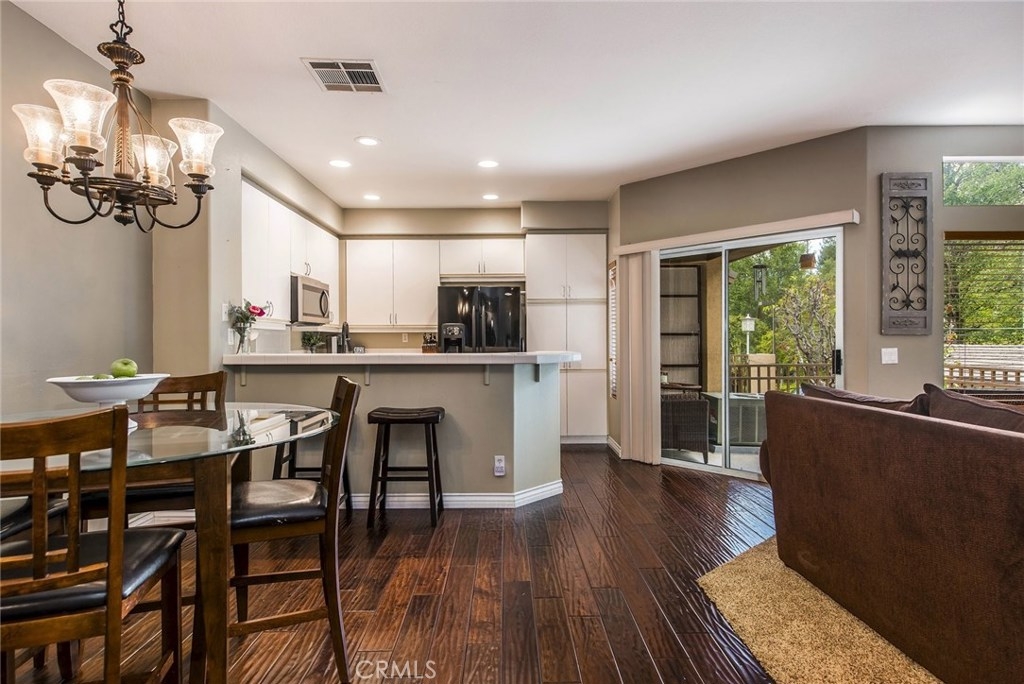 One of the BEST locations in the area with lush green views through every window & door! This 2 bed, 2 bath condo is located in the popular Summit Court community & perched among the hills & trees. The main floor entry leads to an upstairs living area featuring a wonderful open floor plan. Relax in front of the cozy fireplace & enjoy the views. Gorgeous high-end wood flooring extends through the dining area, kitchen & hallway. The kitchen is open to the living area & features stainless steel appliances, tons of storage & counter space plus a convenient breakfast bar. The formal dining area is perfect for family meals & gatherings. Step out to the private patio for serene views of the surrounding hills. The master bedroom with attached bath has neutral carpet & loads windows to let the light pour in and let the views be enjoyed. The well-appointed master bathroom has private tub/shower area & walk-in closet. The guest bedroom or home office has a double door entry. The beautiful guest bathroom features a shower with glass enclosure. This popular floor plan has an attached 1 car garage with direct access to the inside entry PLUS a private carport steps from the front door. In addition to the numerous nearby walking, hiking & biking trails, neighboring Ronald Reagan Park is the home to summer concerts & events plus outdoor recreation facilities. The LOW ASSOCIATION DUES provide for use of the clubhouse, gym, pool, spa & tot lot. Prime location near shopping, dining & schools.
