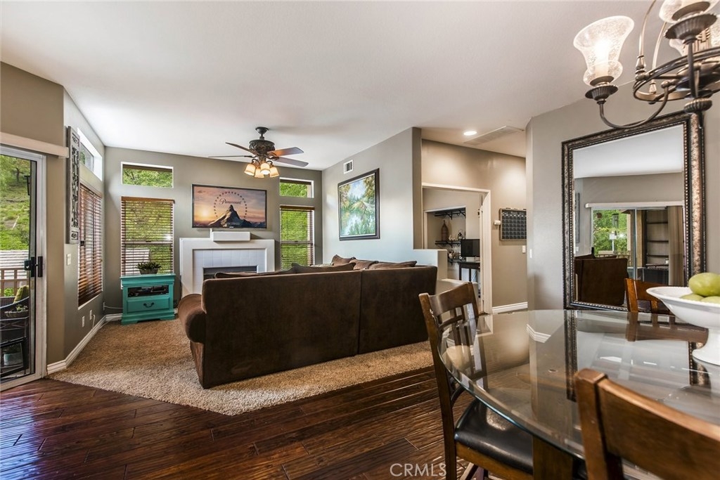 One of the BEST locations in the area with lush green views through every window & door! This 2 bed, 2 bath condo is located in the popular Summit Court community & perched among the hills & trees. The main floor entry leads to an upstairs living area featuring a wonderful open floor plan. Relax in front of the cozy fireplace & enjoy the views. Gorgeous high-end wood flooring extends through the dining area, kitchen & hallway. The kitchen is open to the living area & features stainless steel appliances, tons of storage & counter space plus a convenient breakfast bar. The formal dining area is perfect for family meals & gatherings. Step out to the private patio for serene views of the surrounding hills. The master bedroom with attached bath has neutral carpet & loads windows to let the light pour in and let the views be enjoyed. The well-appointed master bathroom has private tub/shower area & walk-in closet. The guest bedroom or home office has a double door entry. The beautiful guest bathroom features a shower with glass enclosure. This popular floor plan has an attached 1 car garage with direct access to the inside entry PLUS a private carport steps from the front door. In addition to the numerous nearby walking, hiking & biking trails, neighboring Ronald Reagan Park is the home to summer concerts & events plus outdoor recreation facilities. The LOW ASSOCIATION DUES provide for use of the clubhouse, gym, pool, spa & tot lot. Prime location near shopping, dining & schools.