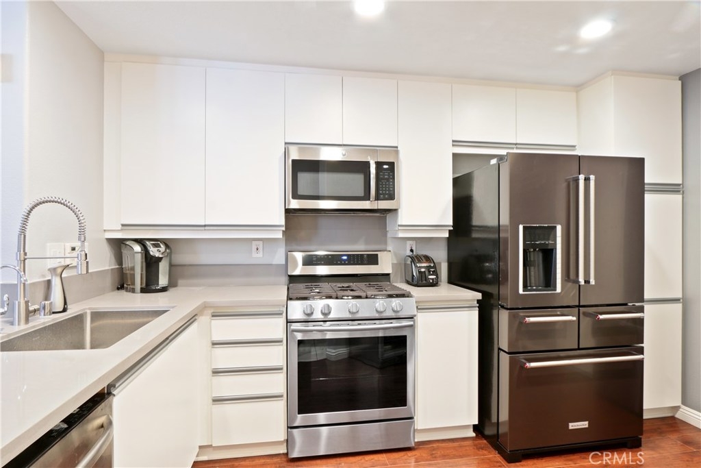 ANOTHER MAJOR PRICE REDUCTION!!! Lowest Priced Town Home in Summit Court. Absolutely stunning two bedroom, two and one half bathroom Summit Court condo. This model, "the Hampton" is truly one of, if not the most desired two bedroom floor plan in all of Anaheim Hills. The large kitchen with quartz counter tops, stainless steel appliances and custom painted cabinetry open directly into the family room/entertaining space. The engineered hardwood floors give the downstairs a sophisticated and rich look while the two tone paint creates a modern and comfortable feel. The family room is large and features a fireplace as well as a nearly full wall sliding glass door to the back patio that provides tons of natural light. The upstairs offers dual master bedrooms, each with their own attached private bathrooms. There is a Play area for children and a beautiful Pool area with Sunset Views and an Exclusive Private Party Room with Kitchen. Close access to Weir Canyon Trail, perfect for the outdoor enthusiast. You buyers will absolutely fall in love with this home!