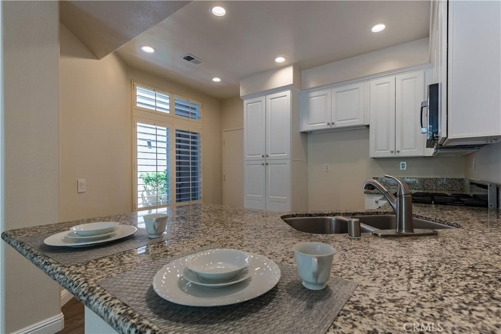 Beautiful Turnkey move-in ready 2- story condo at Summit Court. This unit features 3 bedrooms and 3 bathrooms, with 1 bed and full bath being on the first floor. Recent improvements include new paint inside, new laminate flooring, new carpet, new baseboards, new PEX piping, new dishwasher and microwave, Plantation shutters throughout the home, a single car garage and a single assigned carport. Kitchen features granite counters and there's a Viking range. There is also a back patio/yard with partial concrete and synthetic turf. The community features a pool, spa, outdoor BBQ area, and a playground. This quiet neighborhood sits at the top of Wier canyon, with many shops and restaurants not too far away such as Costco, Home Depot, Target, Kohls, Best buy, Sprouts market, Hobby Lobby, Wood Ranch, BJ's, Wahoo's, Chipotle, Habit, Togo's, Panera, and many more...Call for a preview today, this will go fast.
