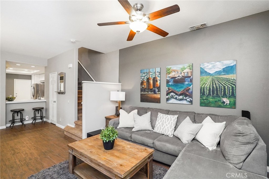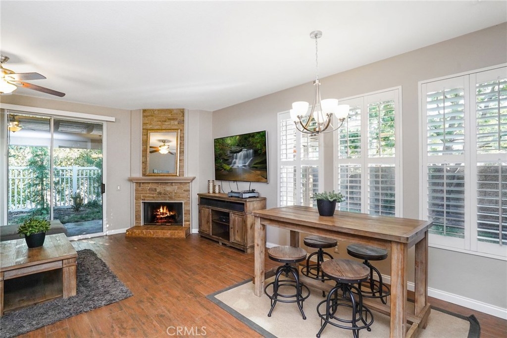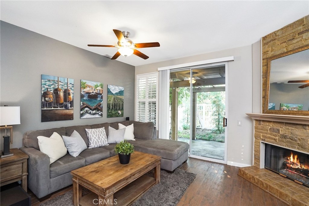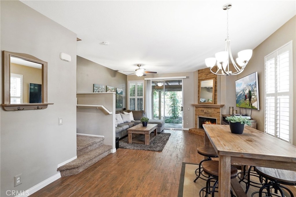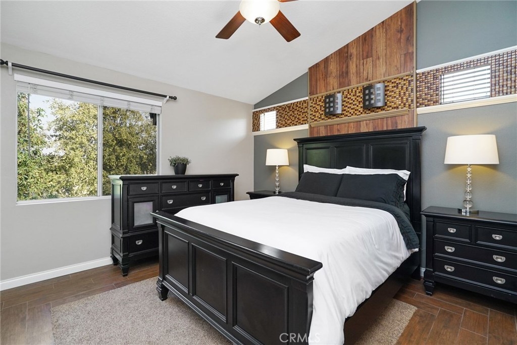This private and perfectly maintained townhome is located on a prime corner lot in the beautiful community of Summit Court in desirable Anaheim Hills and offers two bedrooms, two and one-half baths and approximately 1,097 square feet of living space. Its classic open concept boasts a comfortable floor plan with a living and dining area warmed by a fireplace and a bright spacious kitchen with custom cabinets, stainless appliances and recessed lighting. Dramatic high ceilings and multiple windows allow for an abundance of natural light while sprawling laminate wood tile floors flow throughout the home, adding a contemporary feel. Two spacious masters are located upstairs with private bathrooms, ceiling fans and mirrored closets. A generous linen storage closet, indoor laundry area, one-car attached garage with built in storage and additional carport add to the home’s appeal. Outdoors enjoy the expansive wrap-around backyard with a covered patio, grass lawn and peaceful mountain views. You’ll also appreciate the wonderful community amenities at Summit Court which include a large pool and spa with ample space for entertaining poolside plus a gym, playground, BBQ area and nearby park. Welcome Home!