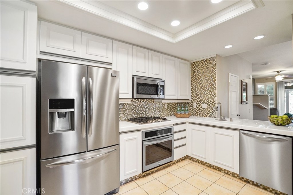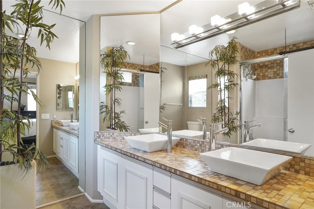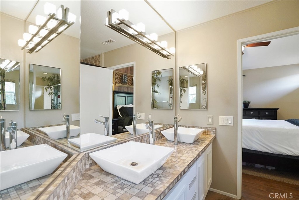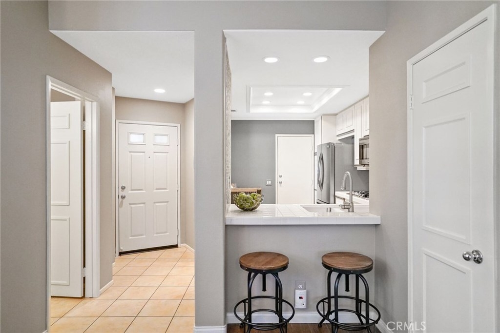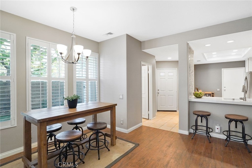 This private and perfectly maintained townhome is located on a prime corner lot in the beautiful community of Summit Court in desirable Anaheim Hills and offers two bedrooms, two and one-half baths and approximately 1,097 square feet of living space. Its classic open concept boasts a comfortable floor plan with a living and dining area warmed by a fireplace and a bright spacious kitchen with custom cabinets, stainless appliances and recessed lighting. Dramatic high ceilings and multiple windows allow for an abundance of natural light while sprawling laminate wood tile floors flow throughout the home, adding a contemporary feel. Two spacious masters are located upstairs with private bathrooms, ceiling fans and mirrored closets. A generous linen storage closet, indoor laundry area, one-car attached garage with built in storage and additional carport add to the home’s appeal. Outdoors enjoy the expansive wrap-around backyard with a covered patio, grass lawn and peaceful mountain views. You’ll also appreciate the wonderful community amenities at Summit Court which include a large pool and spa with ample space for entertaining poolside plus a gym, playground, BBQ area and nearby park. Welcome Home!