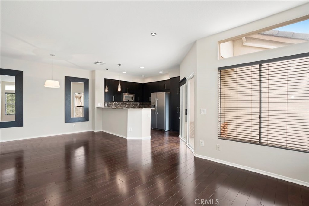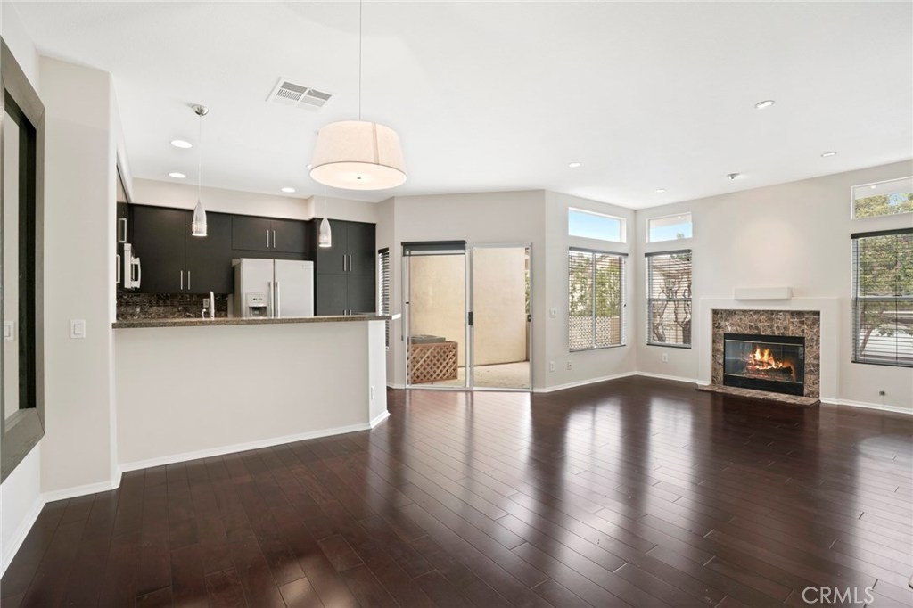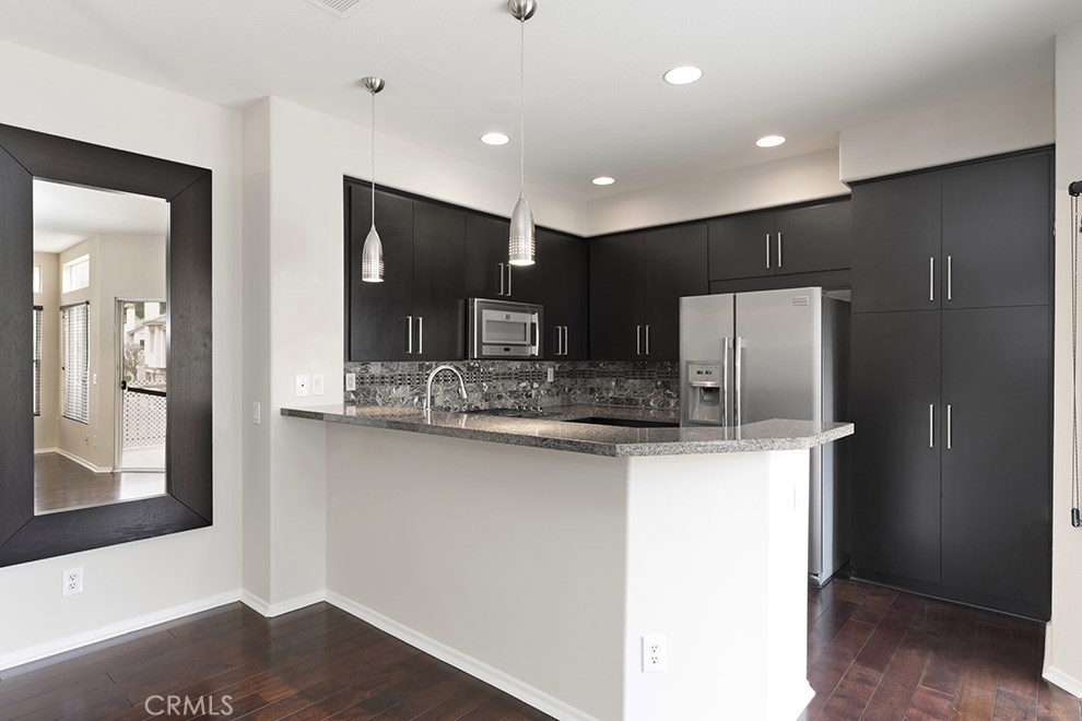 Situated among the serene settling of Summit Court in Anaheim Hills is this fabulously modernized condo. Updated throughout with a contemporary flair, this floor plan offers great room style living complete with hardwood flooring, fresh neutral color palette and wood blinds. The remodeled kitchen is accessorized with flat panel espresso cabinetry, pendant lighting, granite breakfast bar and counter tops, upgraded stainless steel appliances and farm style sink. The adjacent dining and living room open to the kitchen offer ease of conversation or entertainment, stone fireplace and roomy balcony. A sizable master suite offers a private en suite bath accentuated by the beautiful shaker vanity and generous walk in closet. Attached single car garage provides direct access to the home and assigned covered carport provides additional parking. Wonderful community amenities include a pool, spa, private recreational center, fitness room and play structure. Minutes to Ronald Reagan park, hiking, restaurants and shopping.