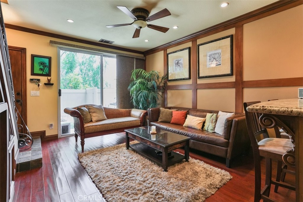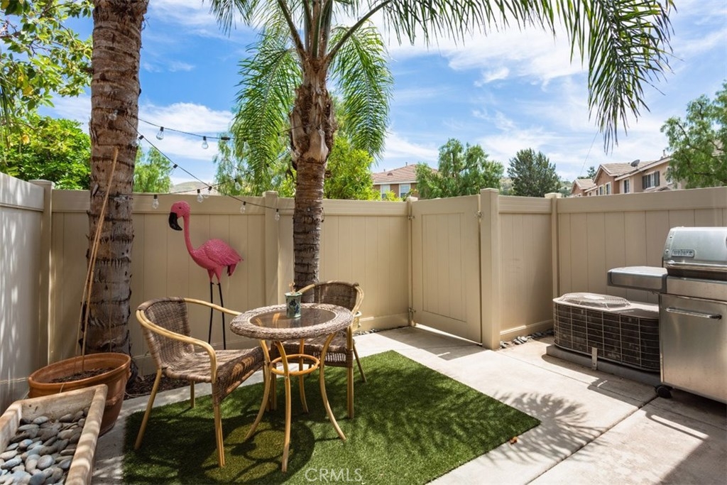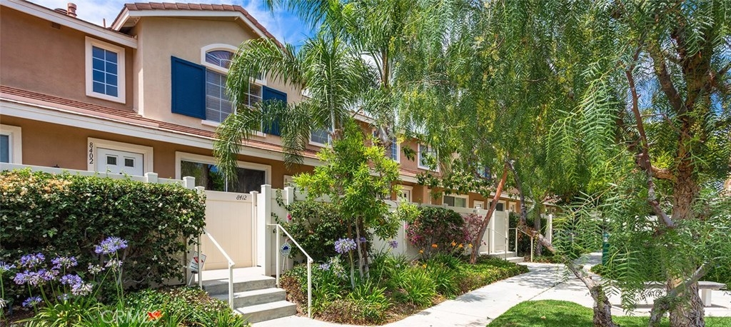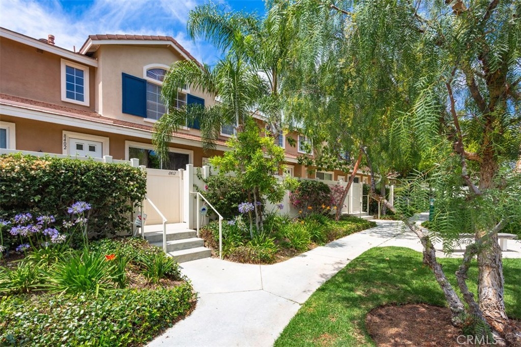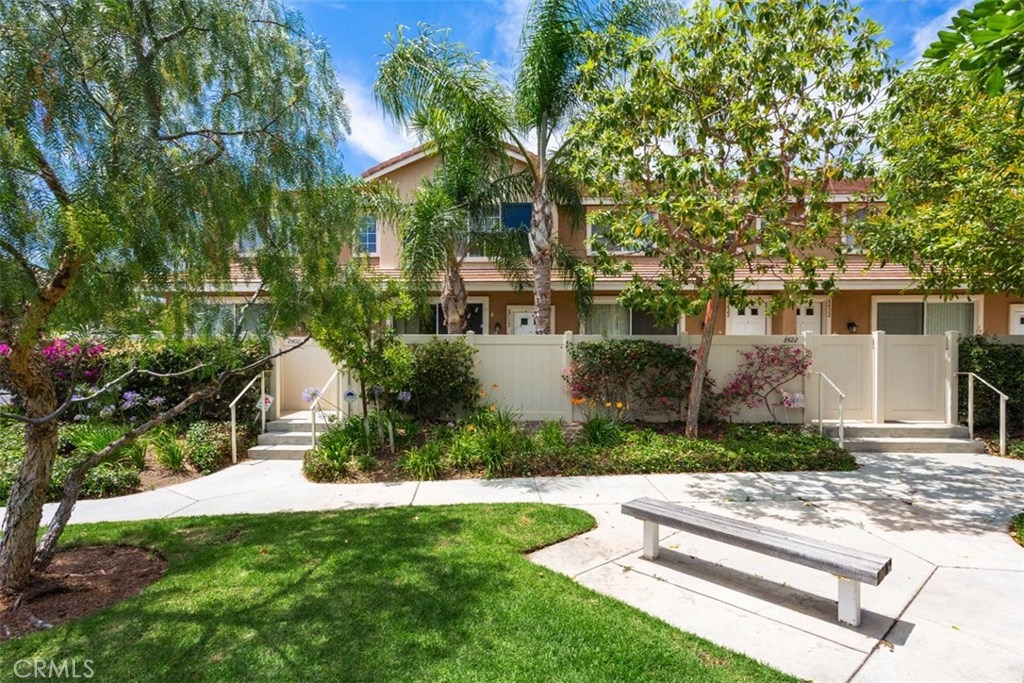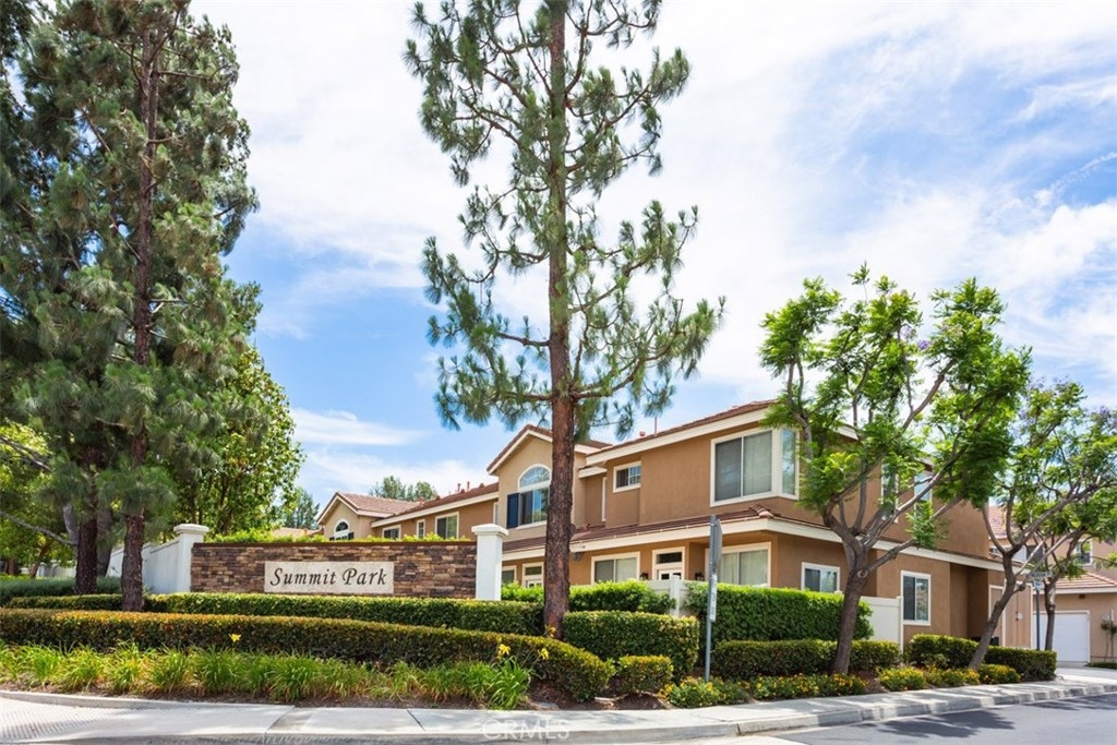 MUST SEE VIDEO TOUR! Arguably one of the finest townhomes in Summit Park! This pristine home was professionally designed by an interior decorator and no expense was spared! From hand-scraped hardwood floors to hand-forged wrought iron stair railing to plantation shutters. As you enter into the private front courtyard that has artificial grass and concrete, you will find a nice area to BBQ and relax under the palm trees. Then prepare to be wowed when you open the front door and see the inviting great room with extensive wood finishes like crown molding, entertainment niche, wall accents and high quality light fixtures throughout. The kitchen features granite countertops with a bar area, custom backsplash, upgraded stainless steel appliances and an adjoining dining area. As you go upstairs you will find the master suite and a large secondary bedroom with vaulted ceilings. Both bathrooms are highly upgraded with stone floors and showers, granite countertops and high-end fixtures. The laundry is conveniently located upstairs in the hallway. Direct access from the single car garage into the unit. There is an assigned covered carport for a second vehicle. Just steps from Ronald Reagan Park and situated close to the 91 Freeway, 241 Toll Road, and Savi Ranch Shopping. Association amenities include the newly updated pool & spa, tot lot and gym. Located within the boundaries of highly rated schools: Running Springs Elementary, El Rancho Middle and Canyon High. LOW HOA & NO MELLO ROOS!