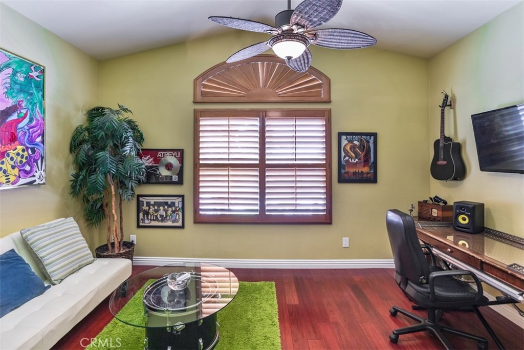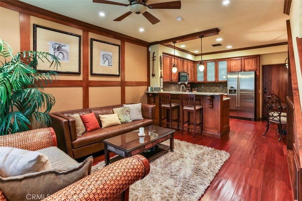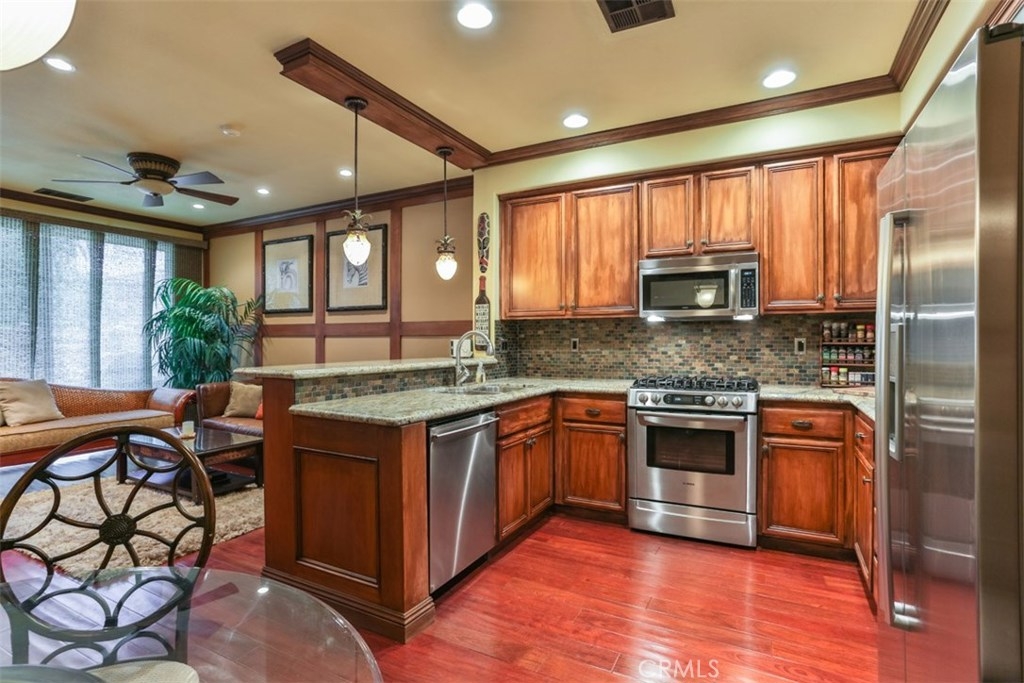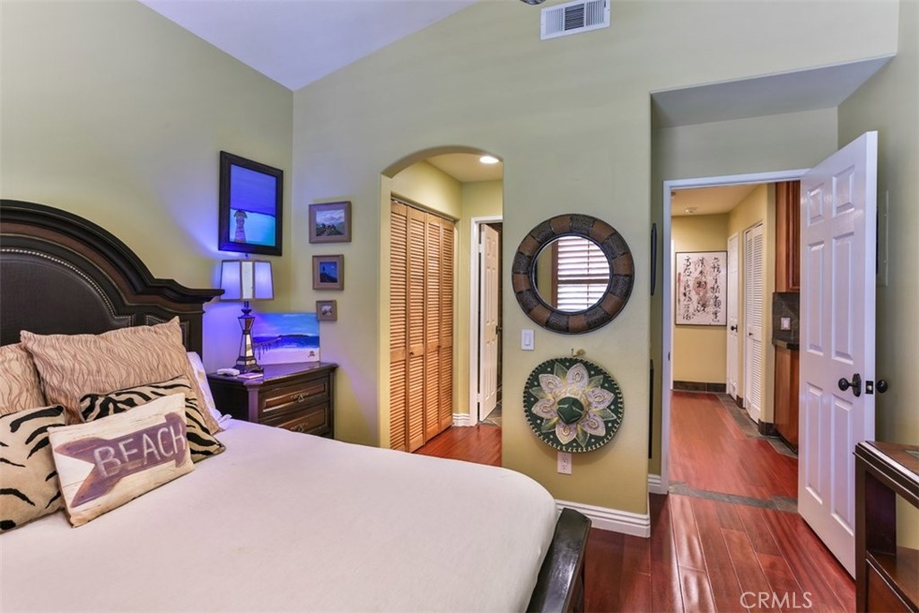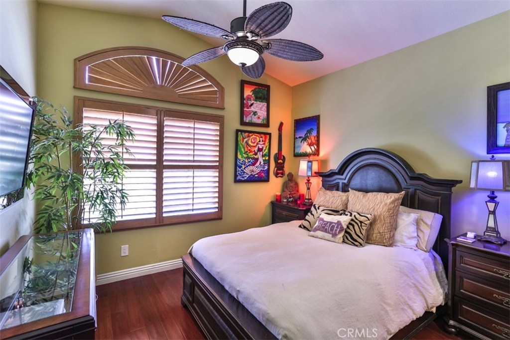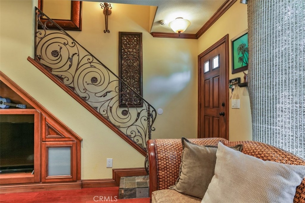 MUST SEE VIDEO TOUR! Arguably one of the finest townhomes in Summit Park! This pristine home was professionally designed by an interior decorator and no expense was spared! From hand-scraped hardwood floors to hand-forged wrought iron stair railing to plantation shutters. As you enter into the private front courtyard that has artificial grass and concrete, you will find a nice area to BBQ and relax under the palm trees. Then prepare to be wowed when you open the front door and see the inviting great room with extensive wood finishes like crown molding, entertainment niche, wall accents and high quality light fixtures throughout. The kitchen features granite countertops with a bar area, custom backsplash, upgraded stainless steel appliances and an adjoining dining area. As you go upstairs you will find the master suite and a large secondary bedroom with vaulted ceilings. Both bathrooms are highly upgraded with stone floors and showers, granite countertops and high-end fixtures. The laundry is conveniently located upstairs in the hallway. Direct access from the single car garage into the unit. There is an assigned covered carport for a second vehicle. Just steps from Ronald Reagan Park and situated close to the 91 Freeway, 241 Toll Road, and Savi Ranch Shopping. Association amenities include the newly updated pool & spa, tot lot and gym. Located within the boundaries of highly rated schools: Running Springs Elementary, El Rancho Middle and Canyon High. LOW HOA & NO MELLO ROOS!