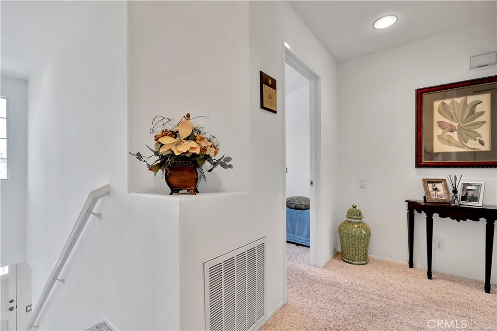 This remodeled condo is the LARGER 2 bedroom model that has a 3rd bathroom, a 2 car garage versus single car, both bedrooms are Master Bdrms, and the Living room has a fireplace, unlike other 2 Bdrm units in Summit Park. Not only is it larger, with a larger garage, but this particular unit has a prime, rear location that faces Ronald Reagan Park & has sunset views, city light views and park views. Being in the back corner, there is less traffic than in other areas of the community. The Kitchen & both bathrooms were remodeled in 2015. Kitchen was remodeled with granite counter tops, stainless steel appliances, a new porcelain sink, new cabinetry with self closing doors/drawers & a lazy-susan cabinet was added for storage ease. Floors were replaced with Maple wood engineered flooring. Bathrooms were remodeled with Quartzite and Granite, new cabinets, new shower doors, marble flooring, glass-in lay tiles and other quality materials. The 3rd bathroom downstairs is a half bath, while the upstairs baths are both full baths. The fireplace stone was also upgraded. A/C Condenser was replaced in 2012/13 and duct work was also done at that time. Water heater was just replaced in May of 2020. Come experience the peacefulness of this beautifully well-maintained condo, and notice the easy access to the park and hiking trails. Highly-sought-after Running Springs Elem, El Rancho Charter School & Canyon High School! Community features: Pool & Spa, Playground, Fitness room & Clubhouse.