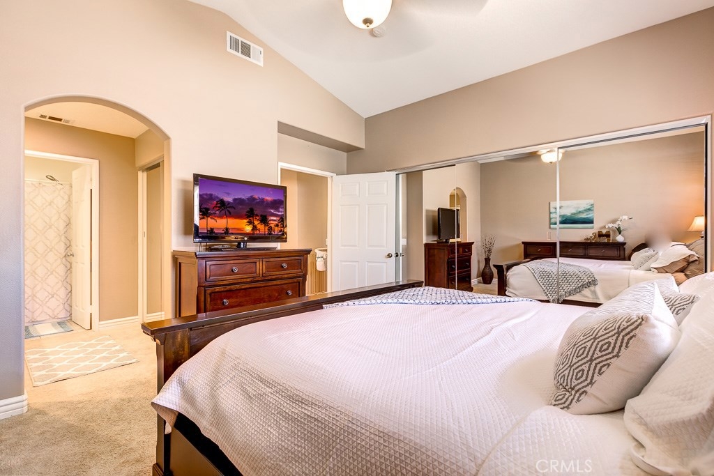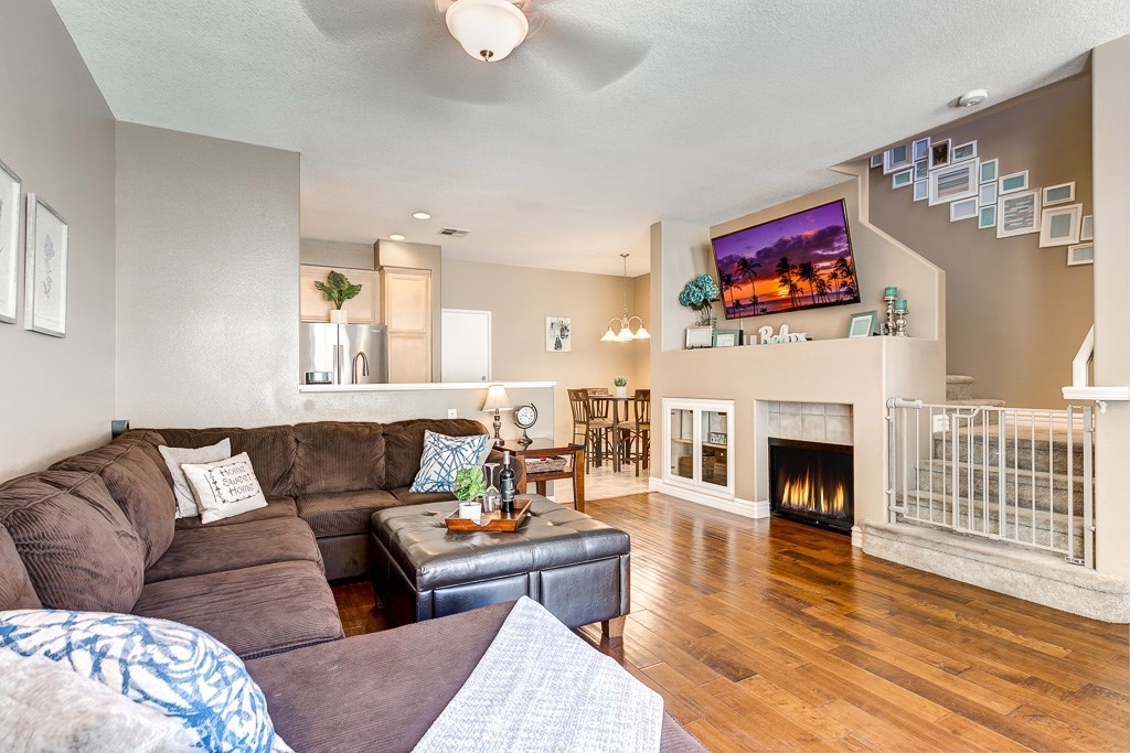A rare offering in the Summit Park Community of prestigious Anaheim Hills! A beautifully updated 3 bedroom & 2.5 bathroom condo, no one above or below, that features Vaulted Ceilings, Stainless Steel Appliances (Brand New Oven, Gas Stove, and Microwave), Wood Floors in the living area, Tile Floors in kitchen & bathrooms, Open Floor Plan, Custom Painted walls, Ceiling Fans, Mirrored Closet Doors, Recessed Lighting, Nest Thermostat, 2-Car Direct Access Garage with updated overhead storage, and much more! The light and bright condo's main entry is the open concept living-dining area with fireplace, storage closet, spacious kitchen, generous powder room, and direct access to a two car garage. Off the living room is a large slider open to a spacious patio perfect for entertaining and a weekend BBQ! Second floor includes the generous sized Master Bedroom and Master en-suite bathroom including dual sinks, his & her closet space, and vaulted ceilings! The additional 2 bedrooms include large closets, vaulted ceilings, and abundant natural light! Down the hall is your upstairs laundry space, linen closet, and a spacious full bathroom. Summit Park Community amenities include large resort style pool, spa, gym, playground, clubhouse, and more! Summit Park is conveniently located near Ronald Reagan Park, hiking & biking trails, Shopping, Restaurants, Entertainment, 91 & 241 freeways. Don't miss out on this opportunity and come by to see how lovely this home really is!