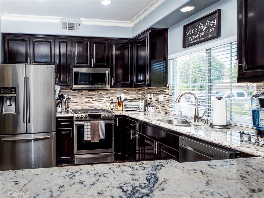 Don’t miss out on this one. Beautiful end unit on a corner lot making it feel like a single family residence. This home boasts a private courtyard space great for entertaining. As you stroll through the gated courtyard and enter the homes main living area, you immediately notice the open floor plan and beautiful natural light. The kitchen is highly upgraded--recently remodeled. On the first floor you will find a dining area, half bath and direct access to the 2 car garage, with newer epoxy floors. Upstairs you will find all 3 bedrooms. The master bedroom is very spacious with a master bath and 2 Closets ,1 walk in closet and 1 mirrored sliding closet doors. The two additional bedrooms are spacious. There is also another full bath (Jack & Jill) upstairs. The complex--Summit Park--offers a tot-lot & park, a pool, spa and clubhouse with small gym; and entertainment area. Close to shopping and top rated schools. Very easy access to major freeways. This highly upgraded end unit will not last long.