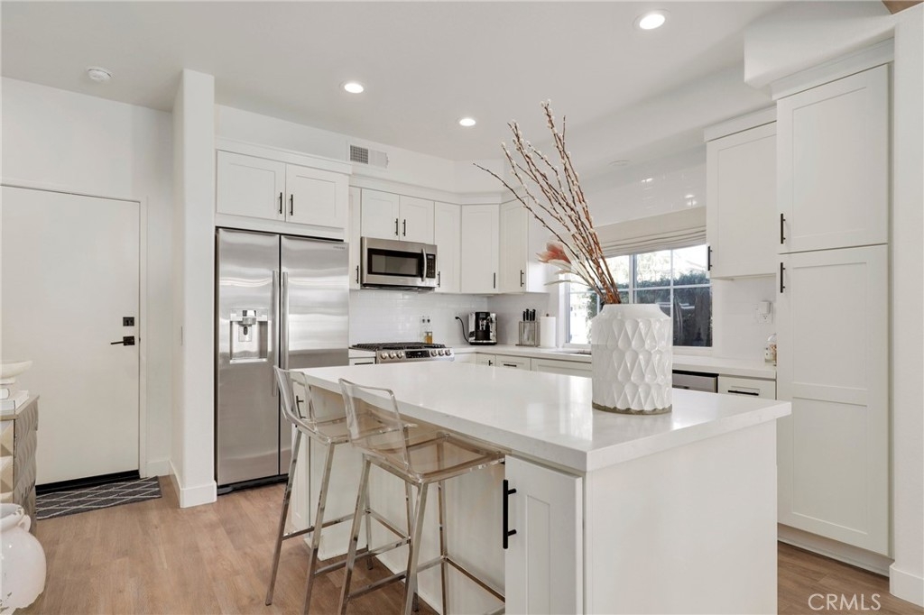 Be ready to smile when you walk into this bright corner unit townhome in the highly sought-after community of Summit Park in Anaheim Hills! This three bedroom, two and a half bathroom home has been upgraded throughout. Enter through a private spacious patio, into an open floor plan featuring beautiful upgrades with quartz countertops. The kitchen has modern finishes including upgraded appliances and beautiful white shaker cabinets. A charming powder bath and indoor laundry room completes the downstairs. The attached two car garage has overhead storage including an epoxy floor and 240 volt plug in. The attention to detail continues to the second floor where you will find two generously sized bedrooms connected by a Hollywood bathroom, and the spacious primary bedroom. The primary bedroom has two separate custom closets and an en-suite spa like bathroom. The association features a pool, spa, tot-lot, park, gym and clubhouse. Close to award winning schools, Ronald Regan Park, Summer Concerts and much more! Welcome Home!