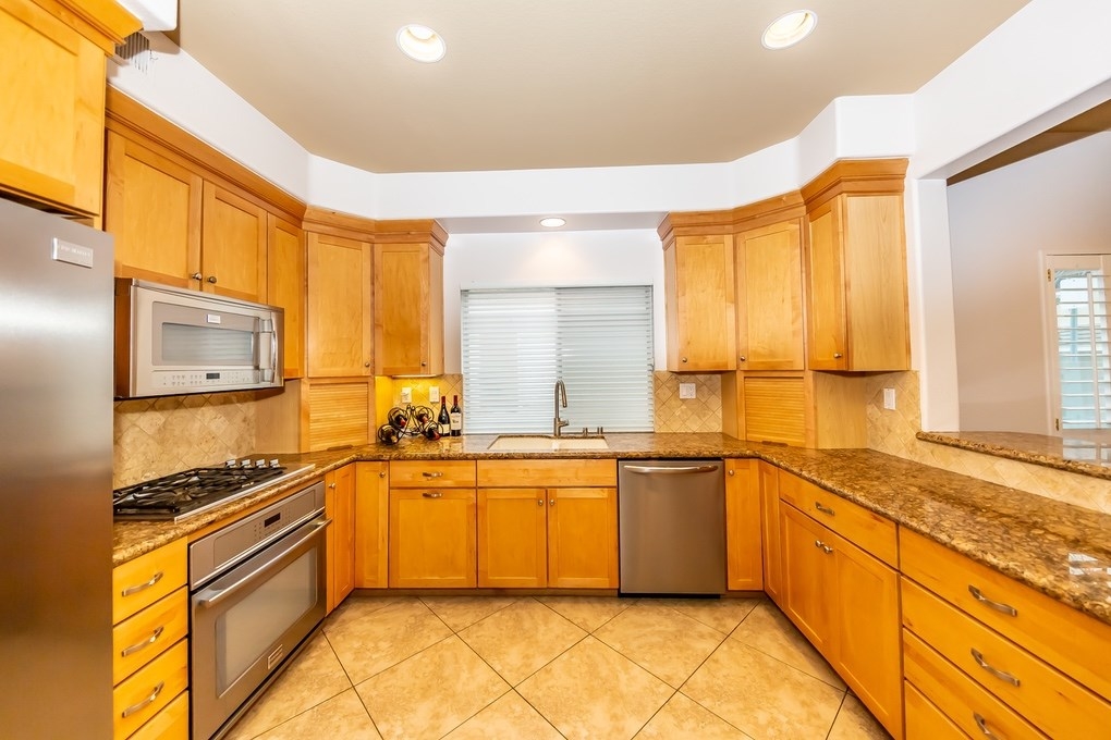 Beautifully Upgraded 3 bedroom 2.5 Bath End Unit Townhome in Anaheim Hills. 2 Car Attached Garage. Large Open Kitchen Features Wood Shaker Cabinets, Granite Counters, Stainless Appliances, Custom Tile Back Splash and Breakfast Bar. Freshly Painted Interior. Custom White Wood Shutters. Living Room with Fireplace. Spacious Master Suite Features Both a Mirrored Wardrobe and a Separate Walk-In Closet! The Master Bathroom has been Remodeled with a Double Vanity with Plenty of Storage, Custom Tiled Walk-In Shower and Beautiful Travertine Floors. The Two Secondary Bedrooms Feature Ample Closet Space and Share a Beautifully Remodeled Jack & Jill Bathroom. Indoor Laundry Includes Washer and Dryer. Private, Enclosed Patio. New A/C. Summit Park HOA Includes Nearby Resort Style Pool, Spa and Private Gym. Close to the Ronald Reagan Park and Award Winning Running Springs Elementary School.