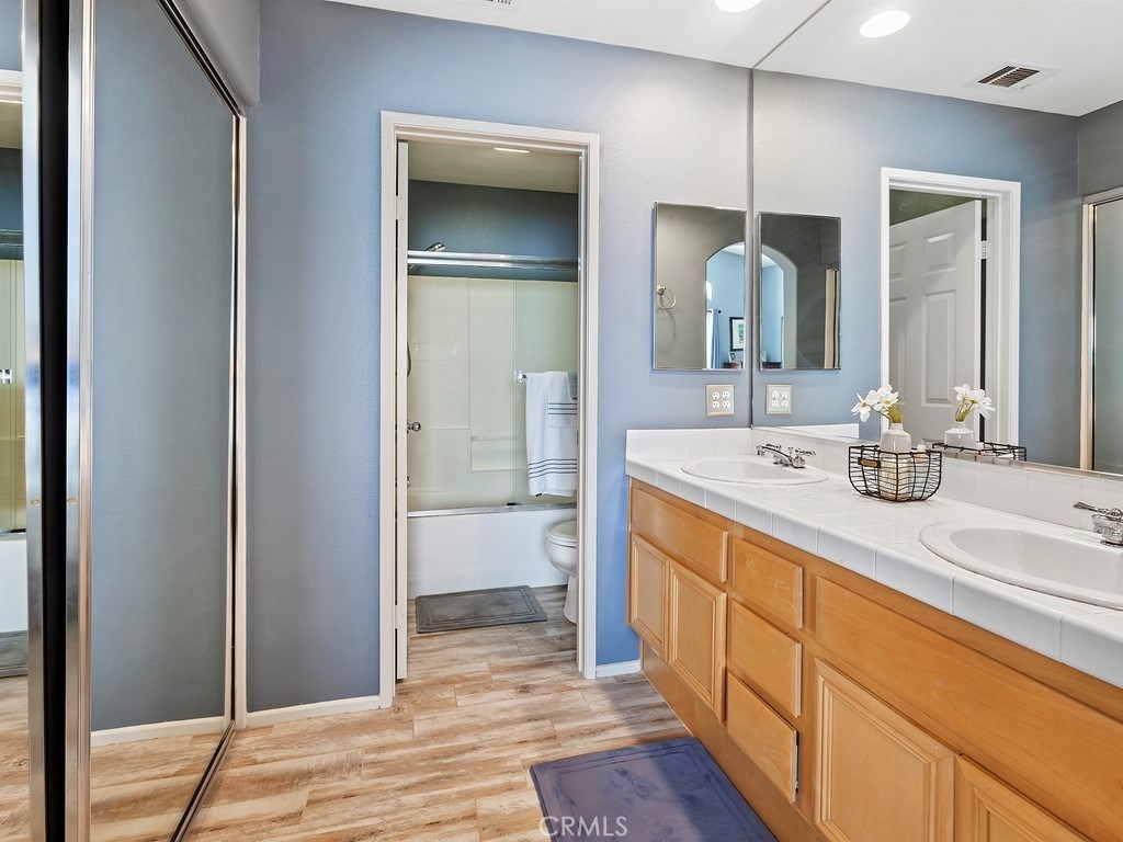 Move-in-ready-for-you! Enjoy this 3D Virtual Tour: https://www.tourfactory.com/idxr2734470 ... Go ahead - measure the walls with the Interactive Floor Plan! It’s in relaxing Summit Park in peaceful & secluded Anaheim Hills. Before you even go in the house, kick back on the front patio - your very own Zen Den with a soothing fountain. It’s an outdoor living haven just off the living room, accessible through the sliding glass door. Inside, take in the wood grained porcelain tile flooring, gas fireplace with a perfect spot for the big screen, & the modern 3-blade ceiling fan – comfy living! The open floor plan continues: kitchen & dining areas have direct access to the attached 2-car garage & built-in storage. Adorning the refurbished/upgraded kitchen are quartz counters, tile backsplash, deep stainless steel sink, bright recessed lights, newer microwave & dishwasher. Downstairs guest bath with new vanity. Master bedroom with mirrored wardrobe doors, ceiling fan, cathedral ceiling; master bath with dual sinks, recessed lighting, additional mirrored wardrobe. Two secondary bedrooms with chair rails & high ceilings are served by a full upstairs hall bath & convenient laundry closet. Central heating & A/C, newer water heater, newer upstairs carpeting, designer color palette throughout! Sparkling association pool/spa, BBQ area, clubhouse, fitness room. Close to restaurants, parks, shopping, freeways. And did we mention the schools? Excellence at every level! Come see your next home!