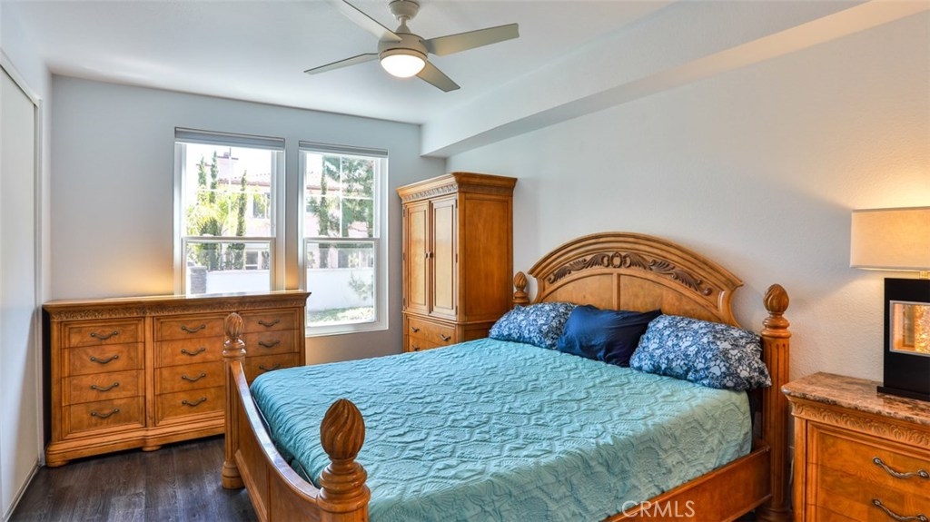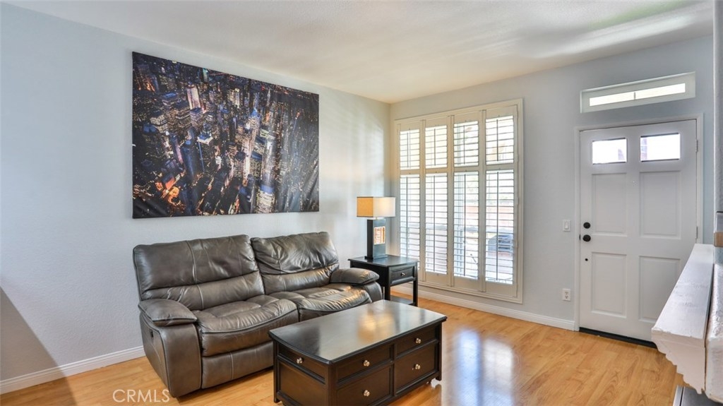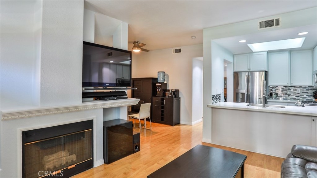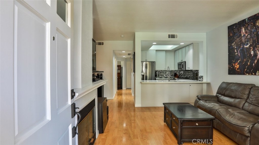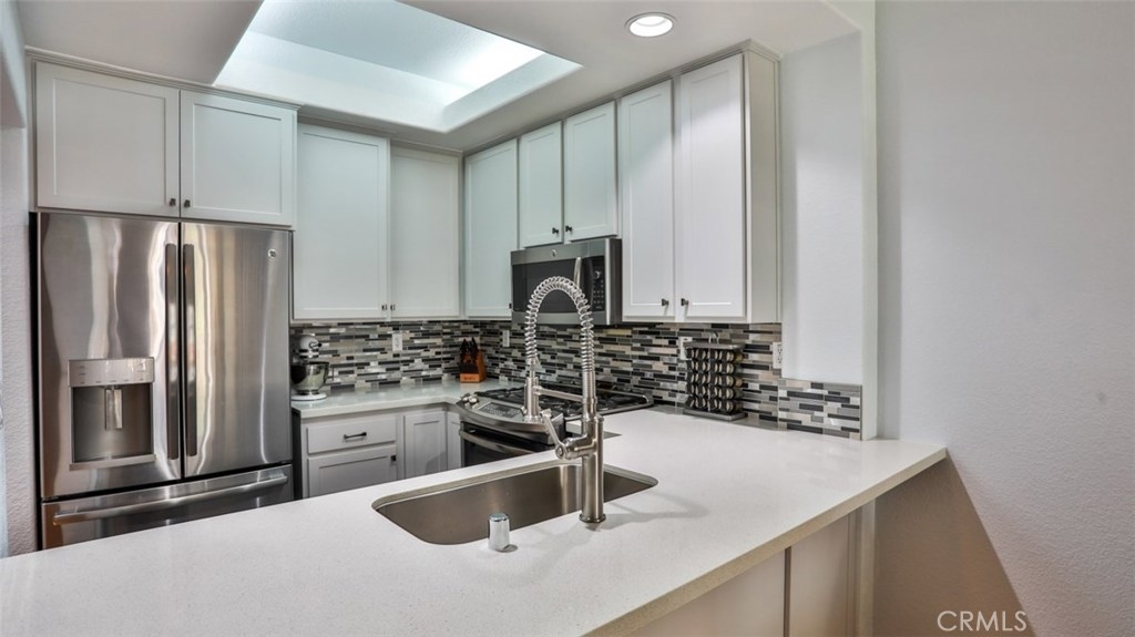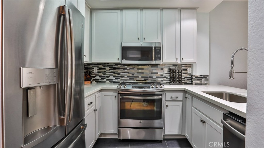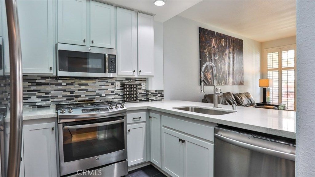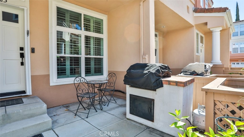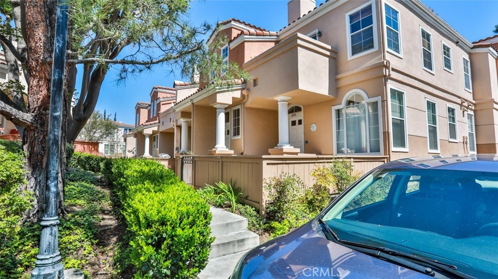 MUST SEE VIDEO TOUR: https://www.qwikvid.com/realestate/go/v1/mls/?idx=ZfSIFeWCwDE8we7OEwk00DInpyDbg1uD Beautiful home in highly sought-after Summit Renaissance, gated community, resort living with pool, spa & gym. LOADED WITH RECENT UPGRADES: remodeled kitchen, Trane XR air conditioning, Anlin low-E windows w/ transferable warranty, plantation shutters, fresh paint throughout, garage door & opener. Open concept, with then entire living area on a single level. Carriage style with laundry room and direct-access two car tandem garage below. Spacious living room opens to the gorgeous kitchen, dining area & front porch area making it the perfect space to entertain. Living room features a cozy gas fireplace. This dreamy kitchen has top-of-the-line cabinetry w/ smooth closing drawers & doors, designer tile backsplash, quartz countertops w/ breakfast bar, tile flooring, upgraded stainless steel appliances and under-mounted single basin sink. Down the hall you will find the private master suite with dual vanities. Both bedrooms feature upgraded flooring and newer remote-controlled ceiling fans. The front porch offers a built-in BBQ with room for a seating area and some potted plants. Very well-maintained community with a low HOA that includes water, trash, exterior maintenance and landscaping. Minutes from award-winning schools, Savi Ranch Shopping, restaurants, movies, golf courses, parks, hiking and easy access to 241 Toll Rd, 91/55 Fwys.