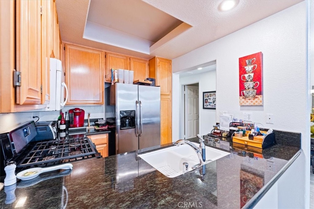 Welcome to 1027 S Stresa Way located in the gated community of Summit Renaissance! This tastfully upgraded interior has a nuetral color pallete and overs 2 bedrooms, 2 baths, and an oversized laundry room with an attached 2 car tandem garage. Upon entry you will find the large living room anchored with a fireplace and highlighted with granite slab accents. Through out the main level you have designer laminate flooring, upgraded base boards and white crown molding. The Kitchen opens to the living areas and has granite counter tops with 2 1/2" bullnose edges, matching backsplash granite, and nuetral maple cabintes. The main bedroom has lots of natural lighting, high ceilings, mirrored closet doors, and an attached main bathroom with dual sinks. The hall bath is oversized and has a tub/shower unit, sliding glass bath enclosure, and white counter tops. On the lower level you have extra large laundry room that leads to the 2 car tandem garage. The community offers a pool, spa, gym, and is gated. Close to award winning schools, fine dining, entertainment, shopping, and easy freeway access. 1027 S Stresa Way is a must see home!