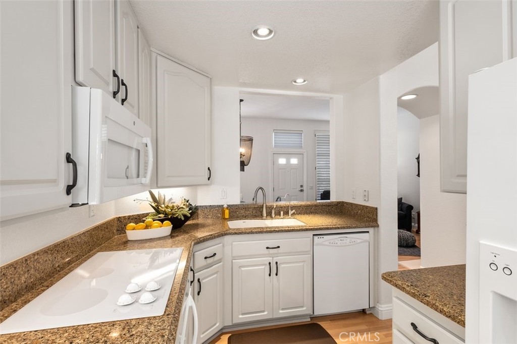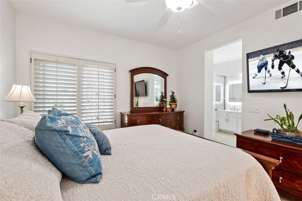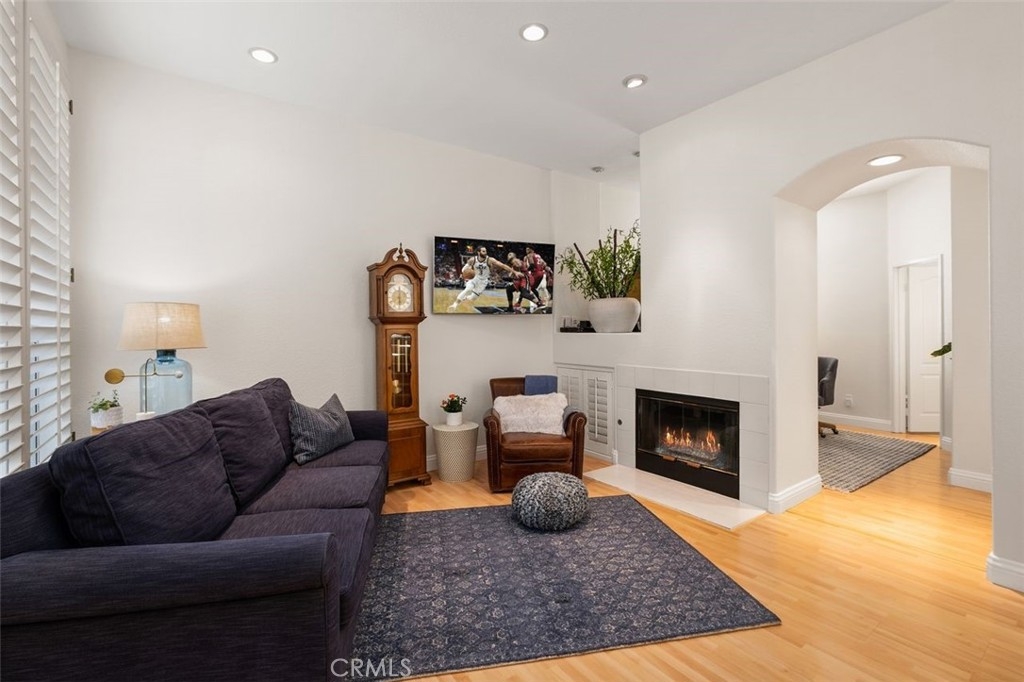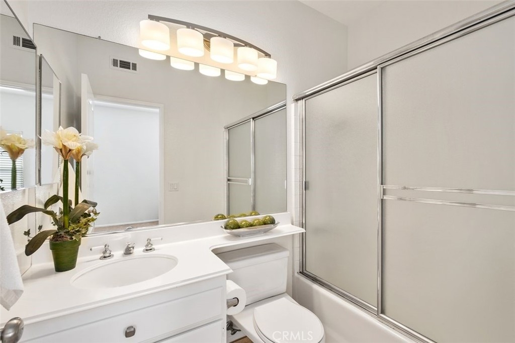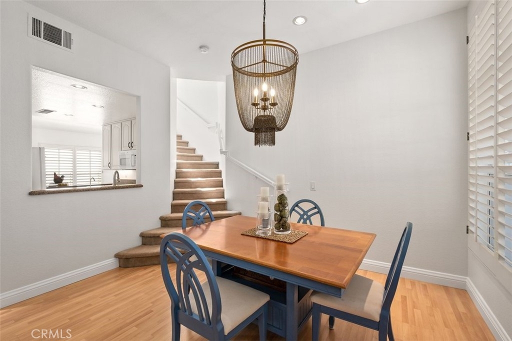 This brilliantly updated condominium is situated in the prestigious Summit Renaissance community of Anaheim Hills. Meticulously cared for, this three bedroom, three bathroom home is ready for you to call home. As you approach, you are greeted by the open patio with white vinyl fencing and manicured landscaping. Once inside, the crisp white walls, laminate wood flooring and open concept invite you in with open arms. The living room features a fireplace filled with blue crystal highlights, plantation shutters and canned lighting. Opening to the dining area and kitchen you have the convenience of enjoying conversation with company or a peaceful night inside. The kitchen features light cabinetry, neutral Corian countertops and white appliances. Off the kitchen is the downstairs bedroom currently used as an office with access to a full bath with a walk-in shower. Upstairs is the master bedroom featuring an en-suite bathroom with an updated shower and vanity. Across the hall is the upstairs guest room with an en-suite bath. Enjoy the privacy of the attached two-car garage with direct access, as well as a community pool, spa and gym. Top schools include Canyon Rim Elementary, El Rancho Charter and Canyon High. All in proximity to the festival shopping center, wonderful restaurants and convenient access to the 91 and 241 freeways.