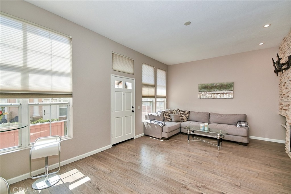 Welcome to this beautiful three-story Townhome in Summit Renaissance! It is located in a fabulous Gated community with charming European Villa Style buildings. Upon entering, the living room with upgraded Recessed Lighting, decorative wall Tile, and laminated hardwood floor. No one lives above or below you in this townhome. A fresh coat of New paint in kitchen/dining and other living areas including Garage. The windows have Hunter-Douglas blinds and the upstairs bedrooms have wood/door shutters installed. It has been beautifully upgraded with kitchen cabinets, granite countertops, and stainless steel appliances. The Master Suite includes an upgraded double sink vanity with granite countertops and its own private bath, upgraded closet Dresser Organizer, both upstairs bedrooms are Suites. The third bedroom is adjoining to 3/4 bath, it is without a door, that can easily be converted to a downstairs suite. Spacious 2-Car Garage with direct access and New carpet installed on the stairs. With wonderful amenities including a luxury resort-style pool, spa, and exercise room. HOA fees include Water/Trash /Pool/Spa/Maintenance & Master Insurance. This is a great opportunity to add your finishing touches and start living Anaheim Hills lifestyle, with award-winning Schools, excellent Restaurants, and Shopping. See it before it's gone!