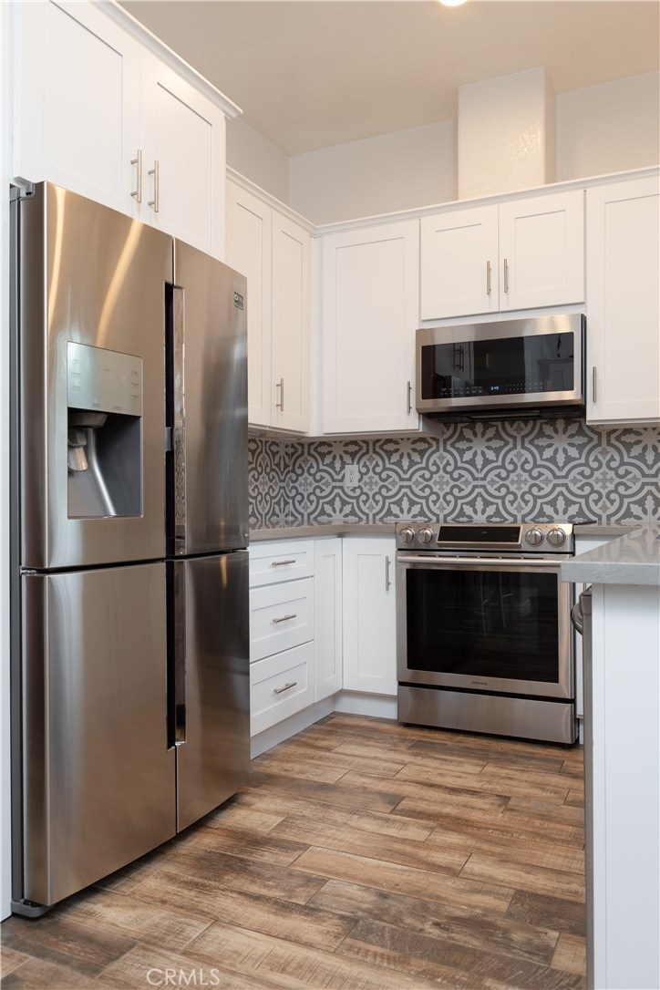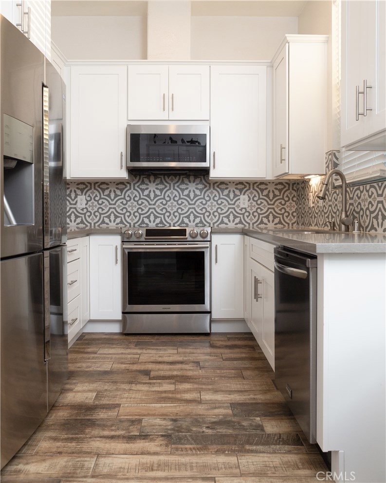 This highly upgraded 2-bedroom 2-bathroom condominium is situated in the exclusive private gated community of Summit Renaissance. This popular floor plan with nobody above or below has the living room, kitchen and half bathroom on the first floor. Two master suites upstairs with full bathrooms. The master bedroom has a walk-in closet and duel sinks in the bathroom. The kitchen has been beautifully remodeled with custom cabinets, quartz countertops, tile backsplash, 2 lazy susan’s, new stainless-steel appliances and pantry. Upgraded ceramic flooring on the first floor and newer carpet in stairway and bedrooms. 2-car side by side garage on the ground floor with direct access. The private patio is perfect for entertaining and enjoying the beauty of Anaheim Hills. Live the resort lifestyle and enjoy the community amenities that include a heated pool, spa and fitness center. The property is located close to highly ranked schools, shopping, equestrian trails, several parks, golf courses and the 91 & 241 toll road. This condominium is a must see!