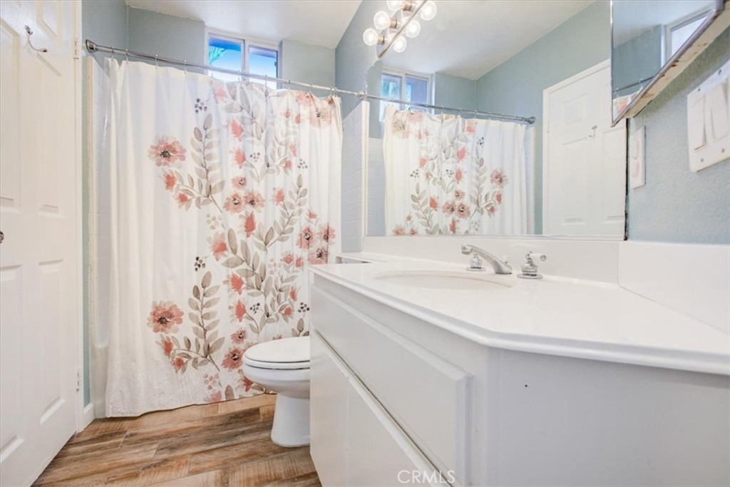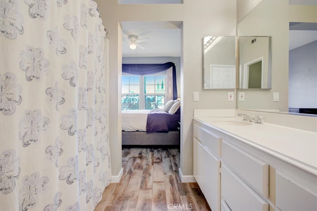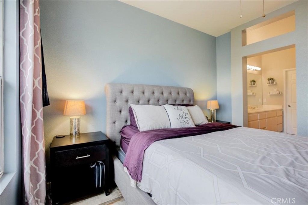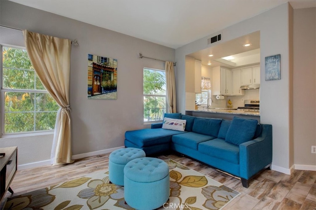 Gorgeous home located in the gated Summit Renaissance Community of sought-after Anaheim Hills. Warm laminate wood floors and modern paint colors throughout complement the bright and open floorplan. On the first level is direct access to the convenient two-car tandem garage. Upstairs to the second level, the inviting living room features light-catching sliding doors to a spacious and private balcony. The living room opens to the dining room and to the kitchen. The kitchen is well-appointed with granite counters, subway tile backsplash, stainless steel appliances and a breakfast bar. Down the hall, the primary bedroom features a walk-in closet and an en-suite primary full bathroom with dual sinks. Two secondary bedrooms are generously sized and share the full bathroom. Enjoy the nearby community pool, spa and exercise room. Centrally located near shopping and dining options, toll road, 91 & 55 freeway close, and award-winning schools.