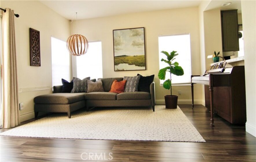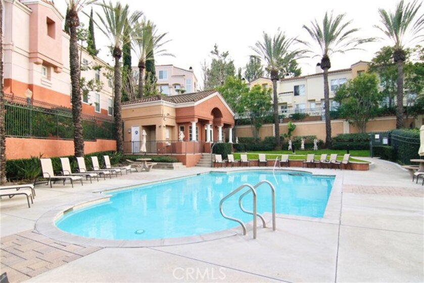 10K Price Improvement! Welcome to this highly desirable top floor unit, enjoy the lifestyle without the noise. This very clean corner unit with tons of windows and natural light, 3rd floor, very secure, private and tastefully updated 3 bedroom and 2 full bath condo with the much preferred direct access two car side-by-side garage. This home contains numerous modern security features and is currently “baby-proofed” throughout. The home features one single connected laminate floor throughout the entire home giving the home a clean, cohesive feel. Newer carpeted stairs to hide tread, newly tiled bathroom floors, and modern Spanish tiled fireplace. The kitchen features all matching stainless steel Samsung appliances, including a gas oven and range, beautifully painted cabinets, with a view into the family room and breakfast bar. Custom floor-to-ceiling built in bookcase. All living space is on one floor with no one above you! The master closet and a secondary bedroom have newly installed and semi-custom closet organizers, and all three closets are cedar lined. The completed garage features a modular FlowWall storage system and commercial grade diamond tread vinyl flooring. The Summit Renaissance community offers resort-style amenities including a pool, spa, exercise room, and gated entry. HOA dues covers all exterior surfaces, roof, landscaping, and some utilities. This is a pet friendly community Canyon Rim elementary school and park are walking distance.