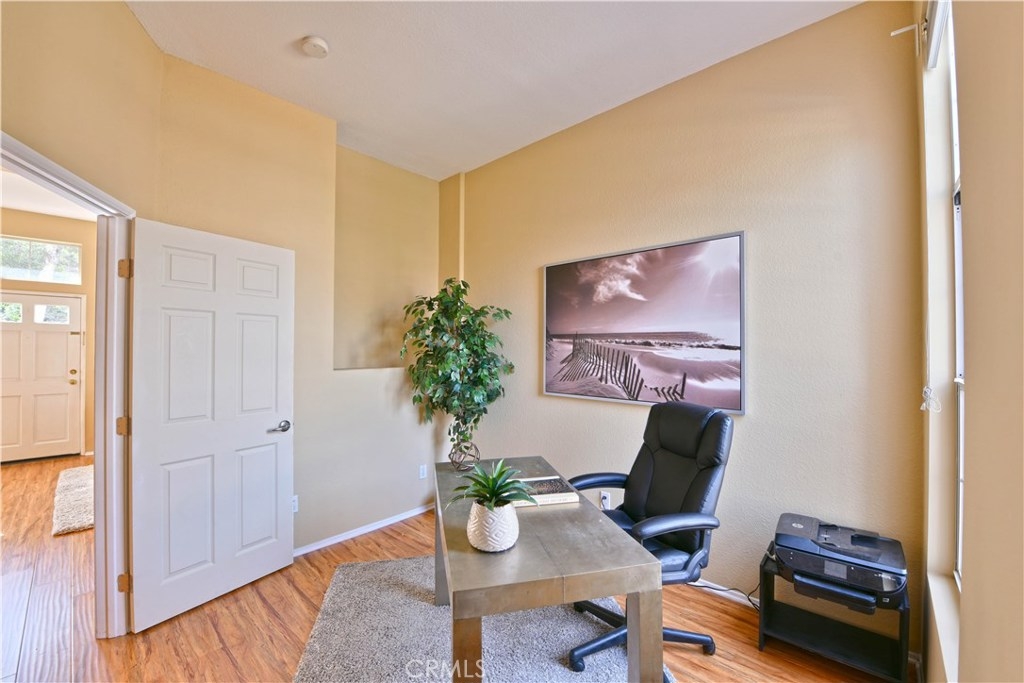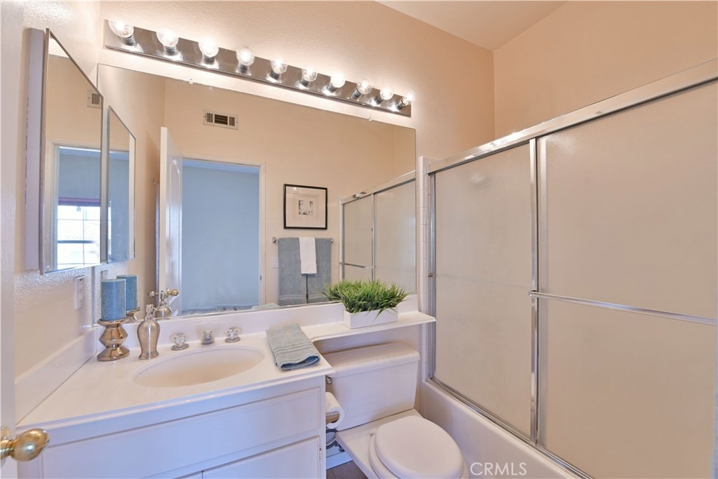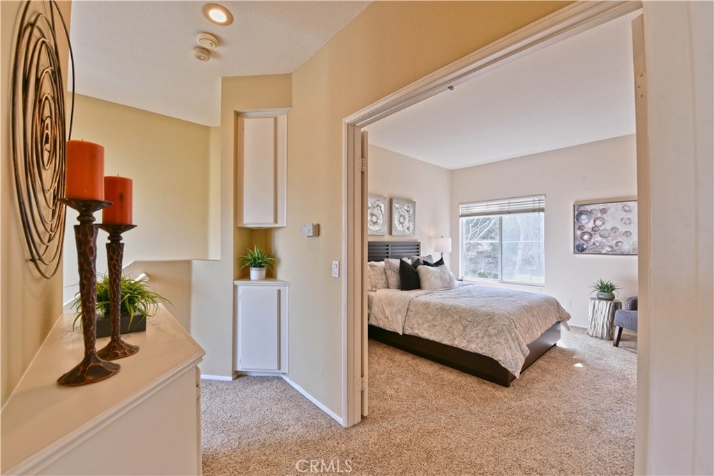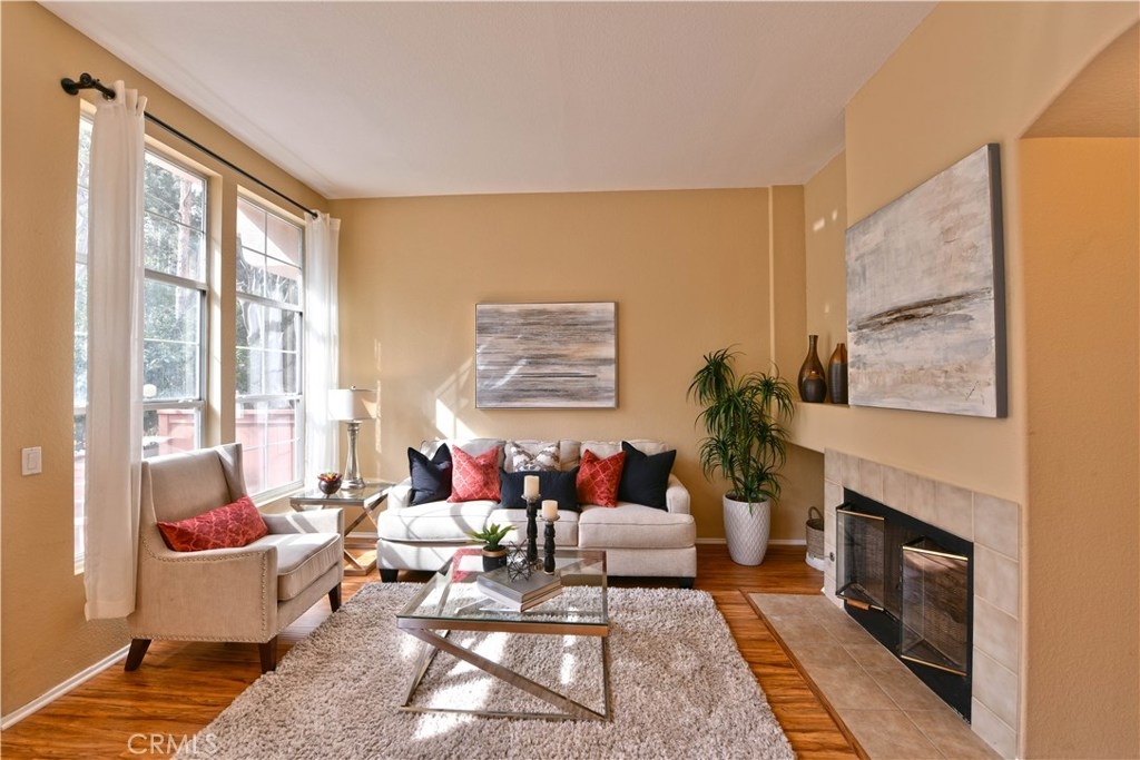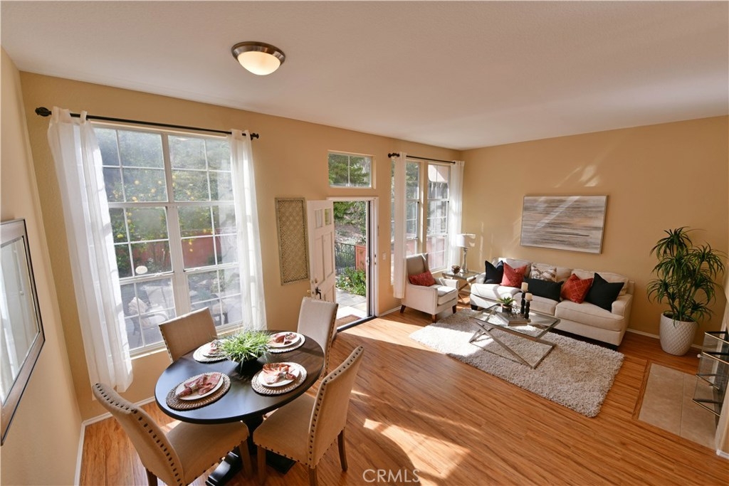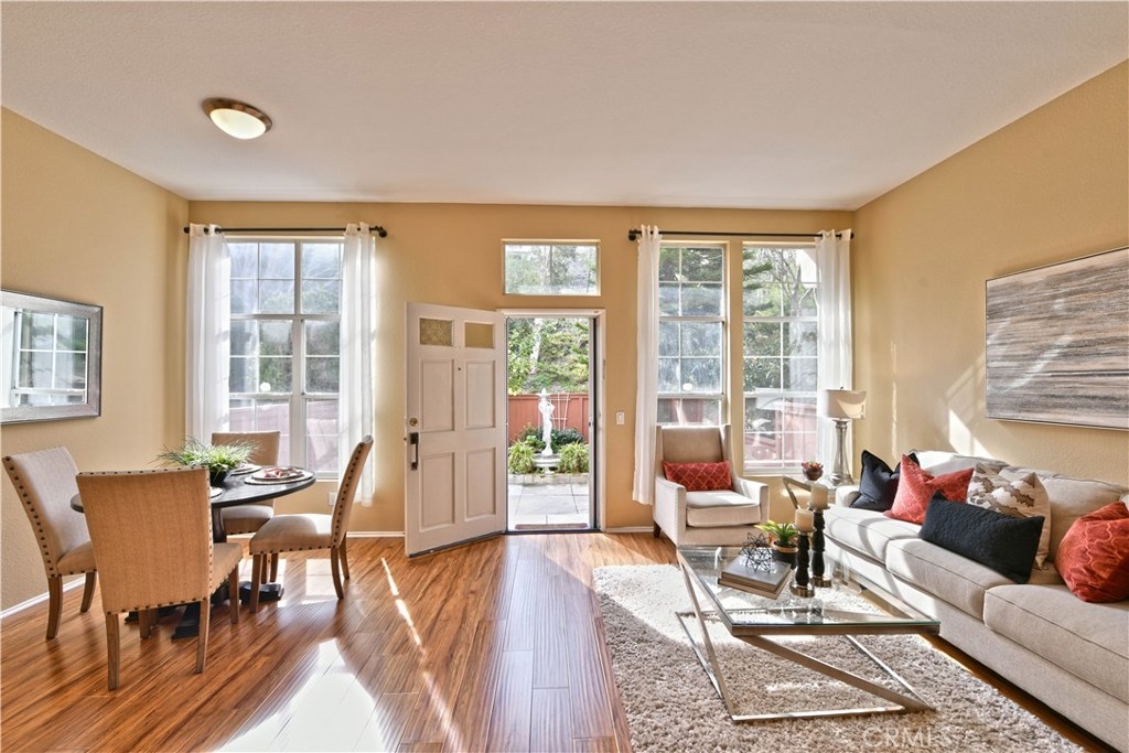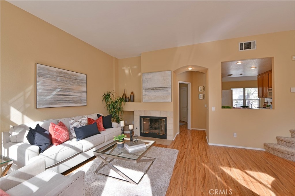 Fantastically Located 3 Bedroom, 3 Bathroom condominium/in the desirable gated community of Summit Renaissance. This Beautiful property features, Whole house Water Purifier and one of the larger size yards/patio in the community. A Popular Floor Plan that also includes on the main level, a cozy Fireplace in the Living Room, Kitchen with Maple Cabinets and Breakfast Nook, a Bedroom with it's own bathroom and finally all New laminate wood flooring in living rm & downstairs bedroom.. Upstairs you will find two more Bedrooms with their own private bathrooms. The Beautiful Patio Surrounded by trees and relaxing water fountain. The Attached over-sized 2 Car Garage offers Direct Access to your home! The Wonderful community has amenities that include; secured gated entry, sparkling heated swimming pool, relaxing spa and well appointed gym. You are close to 91 freeway and 241 toll road.