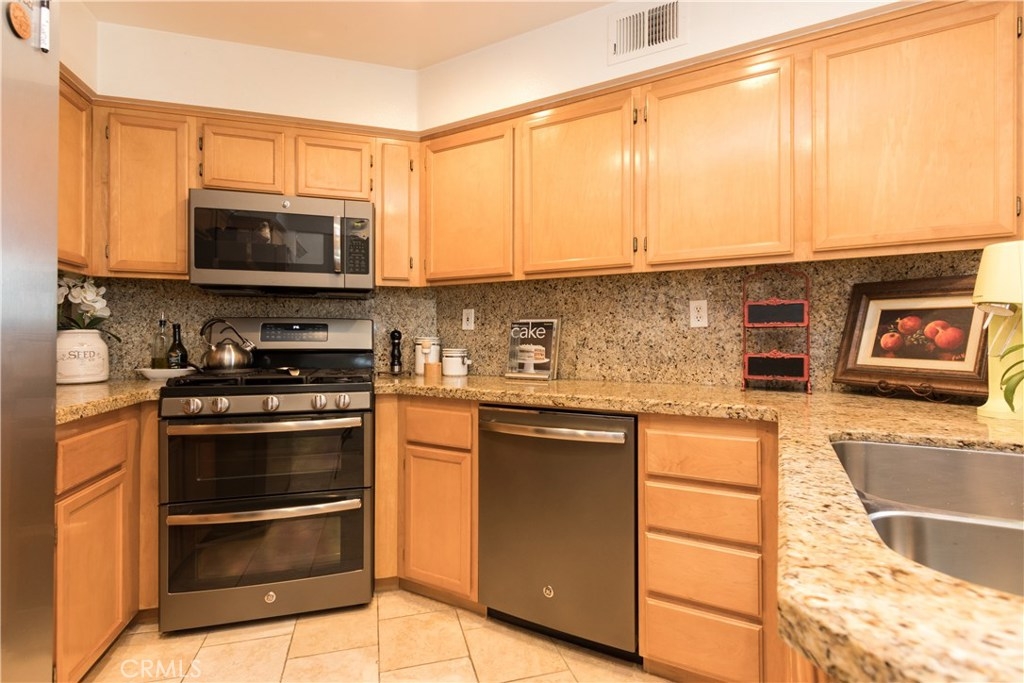 Fabulous and totally private end unit with sparkling city lights view---great to see fireworks from Disneyland and the spectacular show on the Fourth!!! Direct access from 2 car attached garage--inside laundry room too! Loft could be great office ....Perfect condition --no need to preview this one --and it won't last!!! Window covering at slider in living room excl. (decorative) Agents: See private remarks for gate code.