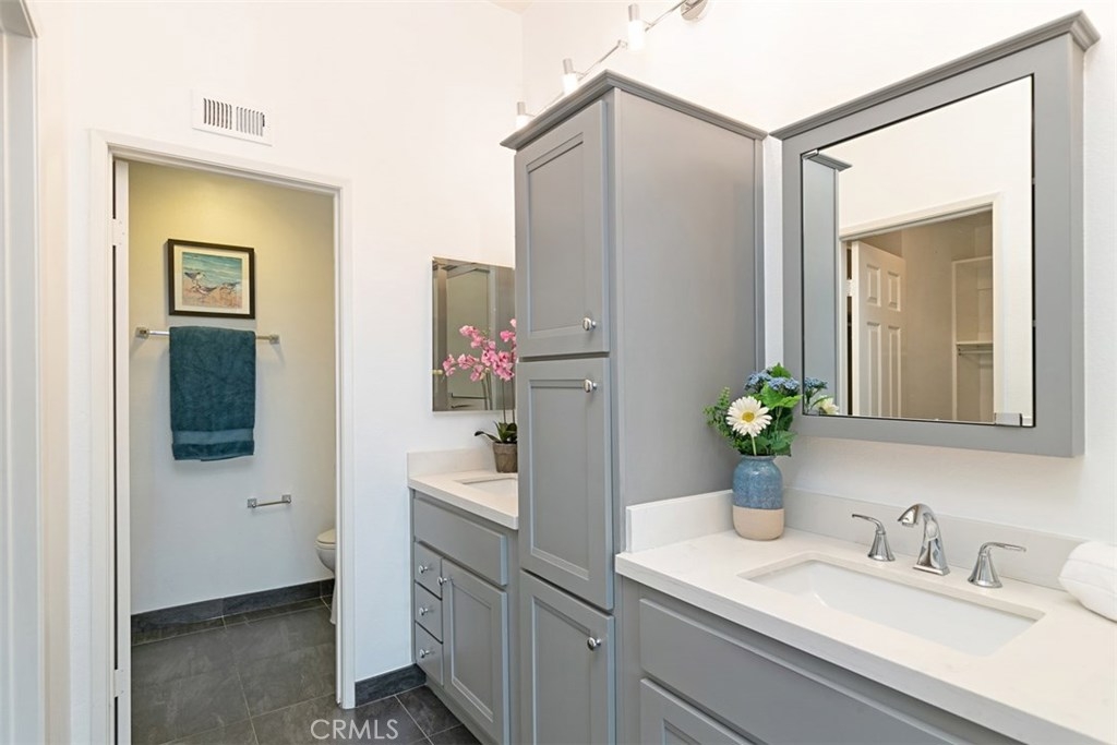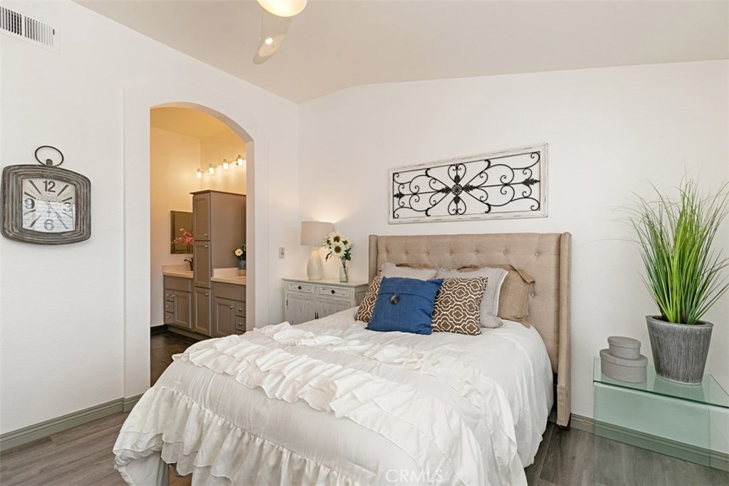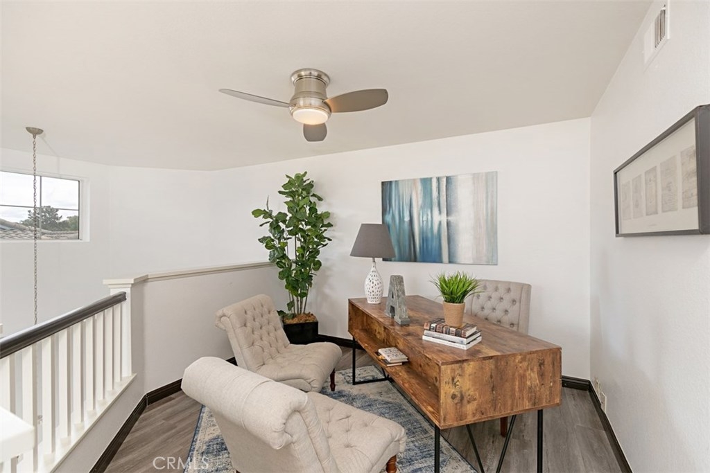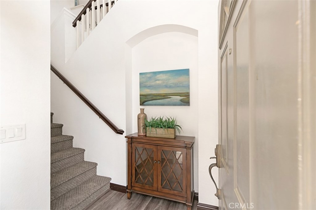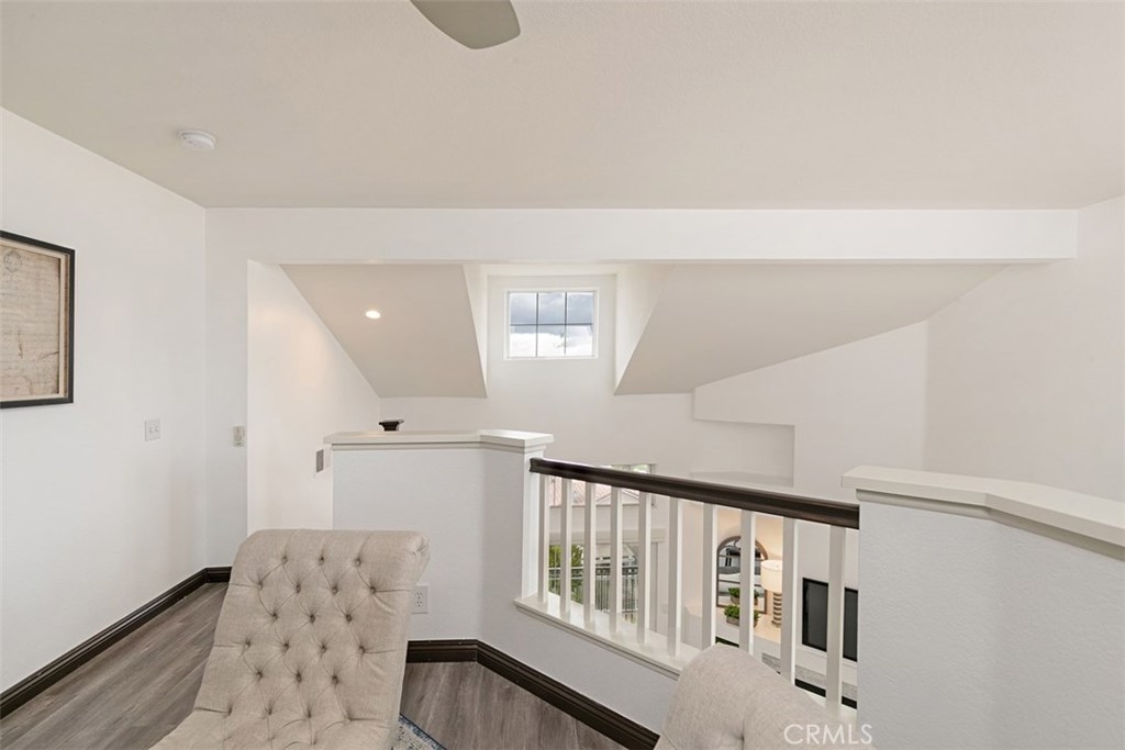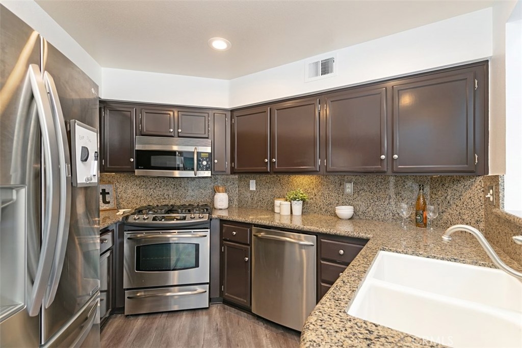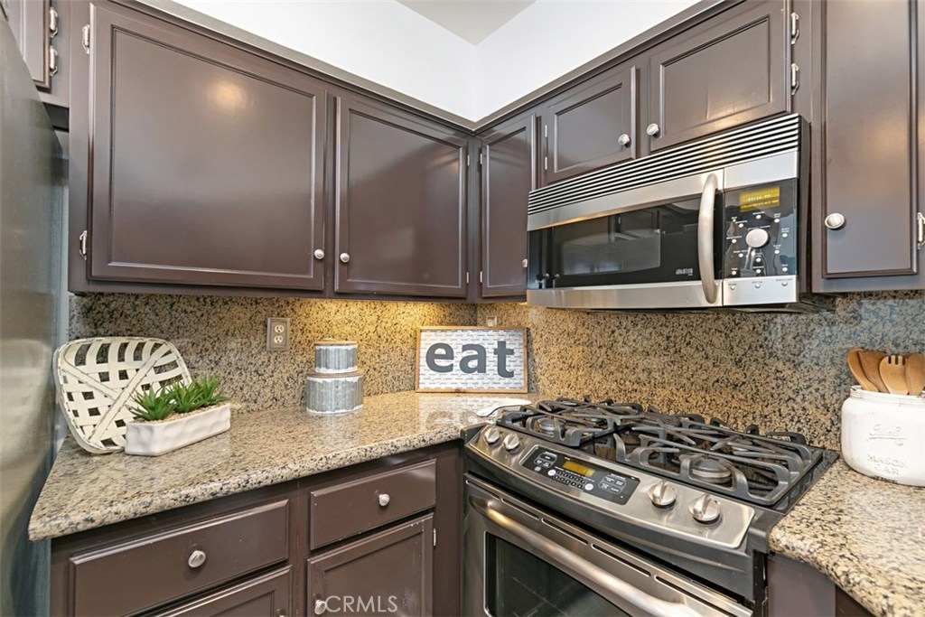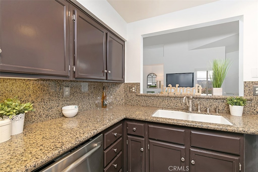 Welcome to this beautifully upgraded home with breathtaking city light and mountain views that can be enjoyed from almost every room! This turnkey 2 bedroom, 2 bathroom condo with 2-car attached garage also features a loft, perfect for a home office. As you enter, you will notice stunning laminate flooring and soaring ceilings, providing a bright and airy space. The living room, with a cozy marble stone surround fireplace, opens to the dining room and kitchen, perfect for entertaining. Walk through the sliding doors and admire the million dollar view from your private balcony. The kitchen features stainless steel appliances, granite countertops and dark cabinetry. As you walk down the hall you will find a spacious secondary bedroom, a full bathroom with granite countertops and dark cabinetry, and a laundry room with overhead cabinets. The master bedroom features a walk-in closet with built-in organizers, an attached full bathroom with dual sink vanity and quartz countertops. Additional features include newer carpet on stairs and custom paint. Located in the charming community of Viewpointe North in Anaheim Hills, this home is in close proximity to award-winning schools, shopping, freeways and toll roads. This gorgeous home is a must see!