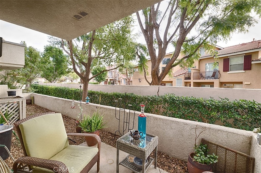Desirable ground floor two bedroom two bathroom located in the gated community of Viewpointe North. Popular floor plan includes sizable patio extending from living room to master bedroom. Spacious living room , fireplace, and sliding glass door to access private patio. Dining room is open to the living room. Master bedroom with sliding door access to private patio. Master bathroom includes new quartz dual sink vanity, walk-in closet, and bathtub/shower combo. Convenient indoor laundry closet suitable for full sized washer and dryer. One car attached garage with direct access, one covered carport, and a driveway offering additional parking space. Viewpointe North offers two pools, five spas, clubhouse, and two gated entrances to community. Award winning Anaheim Hills schools. Nearby convenient shopping, restaurants and freeway access.