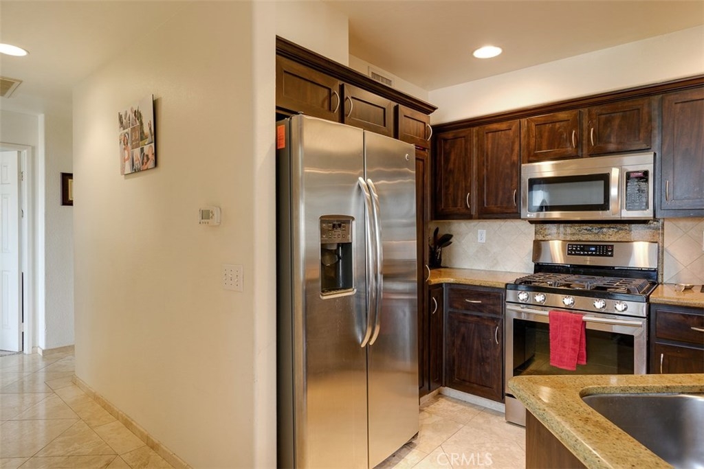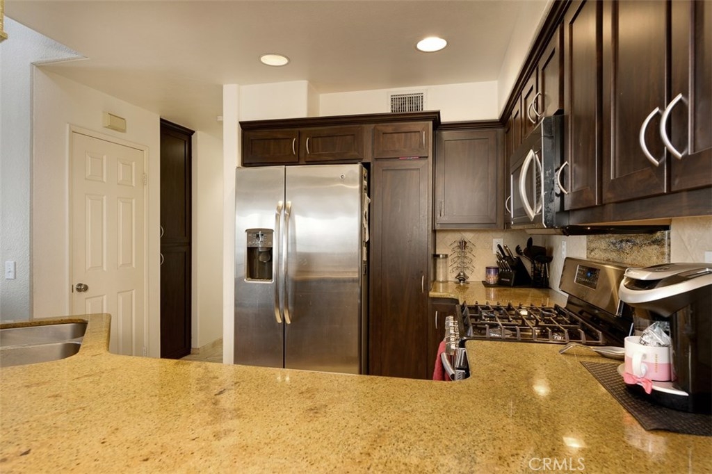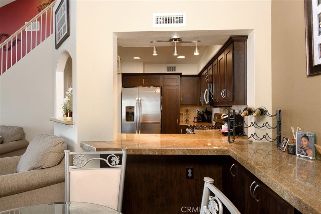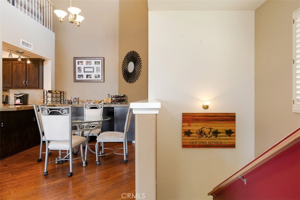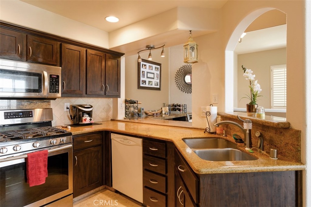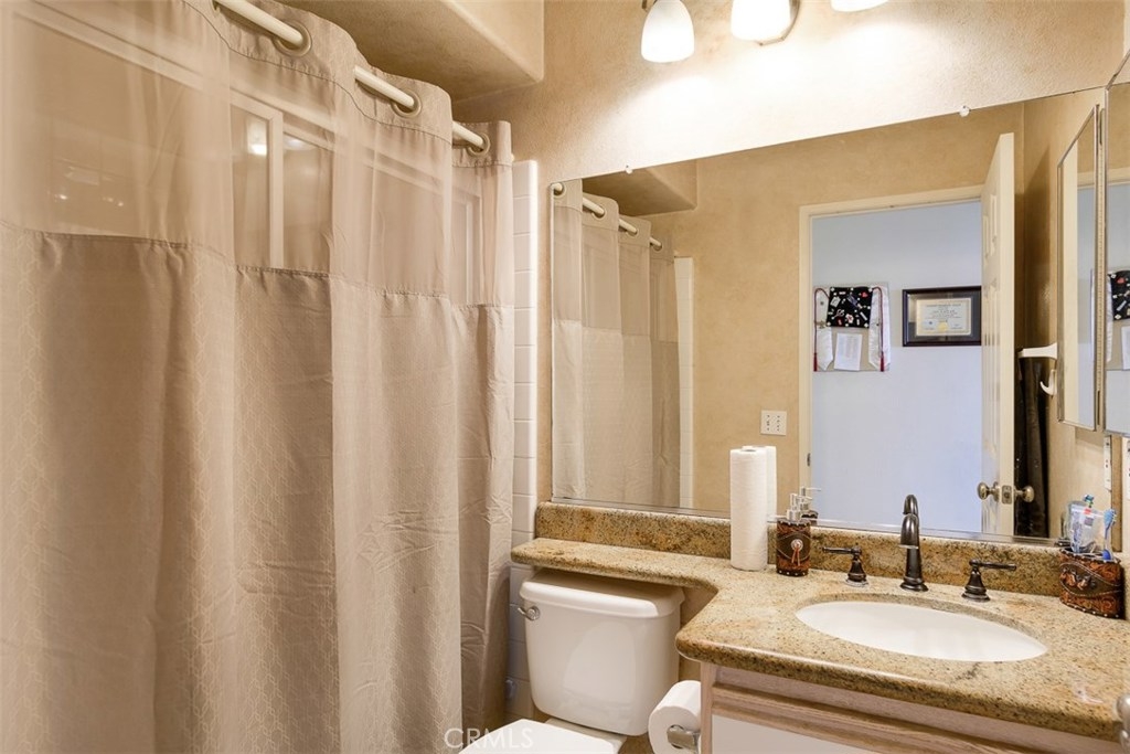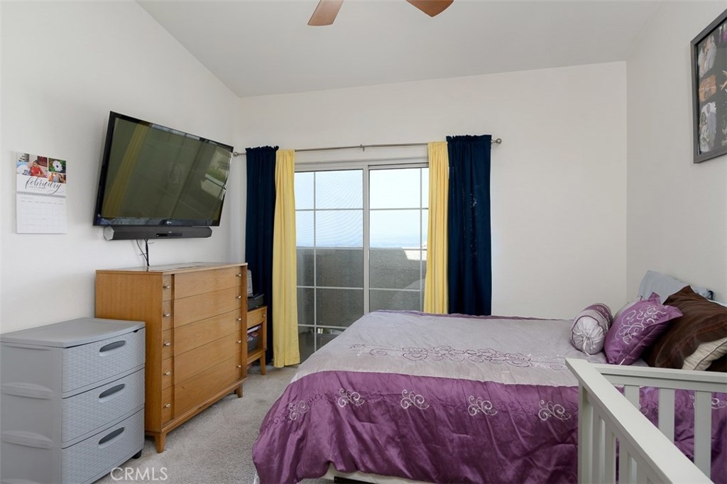 Enjoy spectacular city lights and sunset views from this upgraded two bedroom plus loft, two bath home in Viewpointe North. The upgraded kitchen with a built in breakfast bar has granite counters, travertine flooring, Stainless Steel appliances and is open to the Family room with a Stone Fireplace. The Dining room is adjacent to the kitchen with a built-in granite topped buffet which provides additional storage and has space for a wine refrigerator. Cathedral ceilings and abundant windows make this living area very light and bright. Sliding glass door in the family room open to the Large VIEW balcony. There is an oversize loft above the family room with ceiling fan, built ins and storage, that can be used as an office, game room, additional bedroom, or gym. The master bedroom with ceiling fan has a slider that opens to another VIEW balcony and the master bath has granite counters and dual sinks. There is an inside laundry closet that can accommodate full size washer & dryer. The home has wood flooring in the living areas and plantation shutters. There is a 2-car attached garage with direct access to the home, that has epoxy coated floors and built-in storage cabinets. Full size driveway accommodates 2 extra cars for a total of 4 personal parking spaces.This a gated community with pools, spas, and clubhouse. The community has lots of greenbelts , trees and plenty of guest parking across the street.