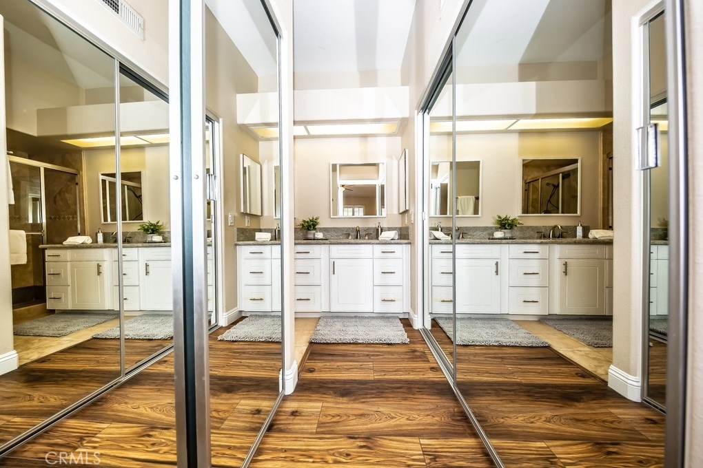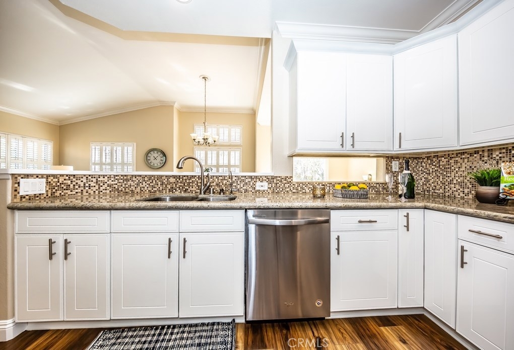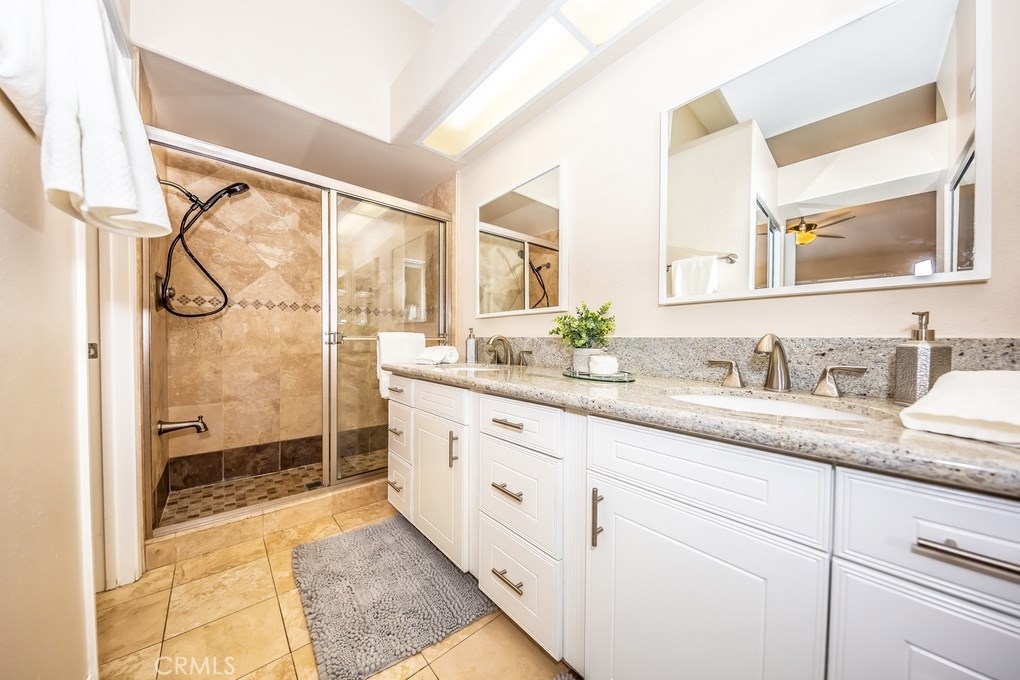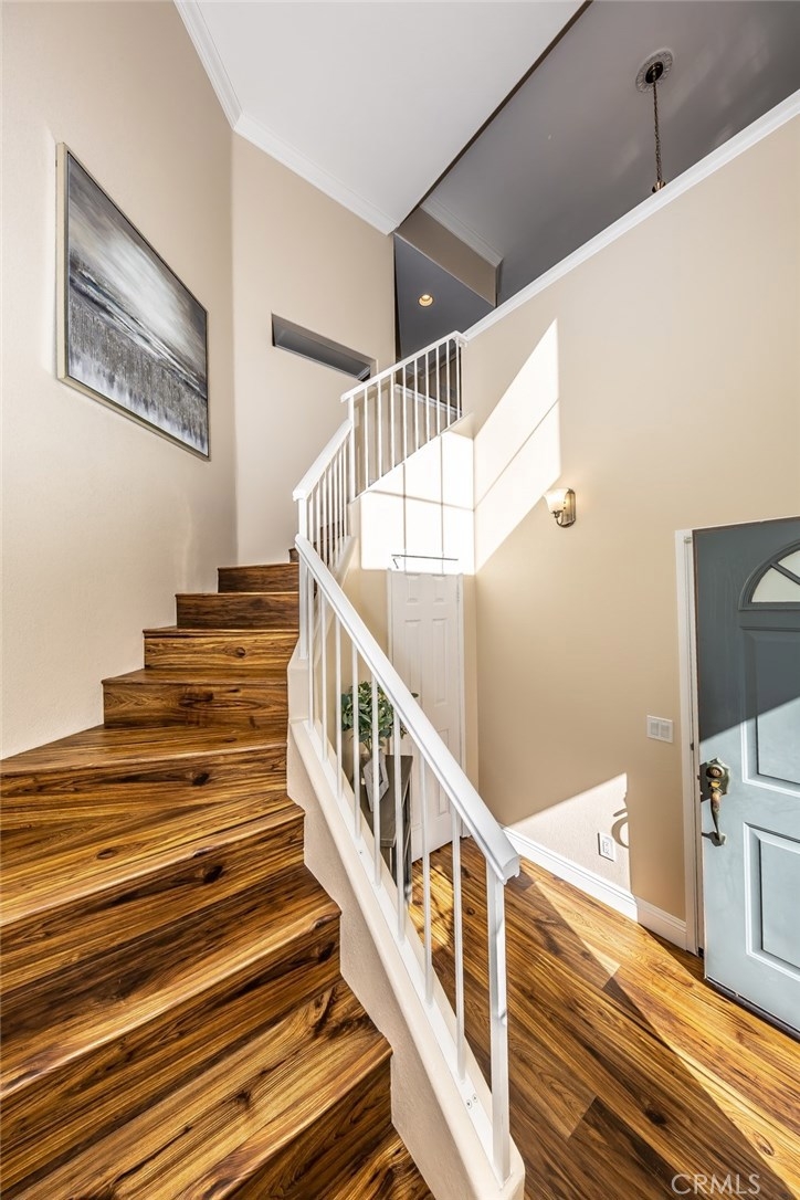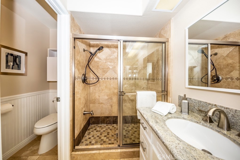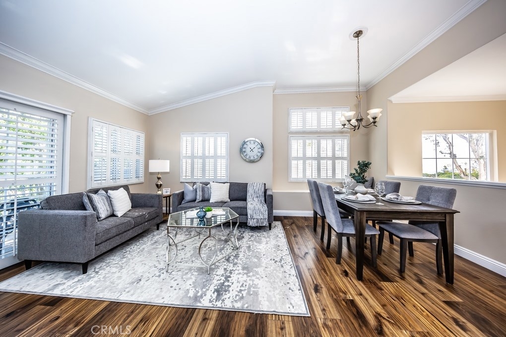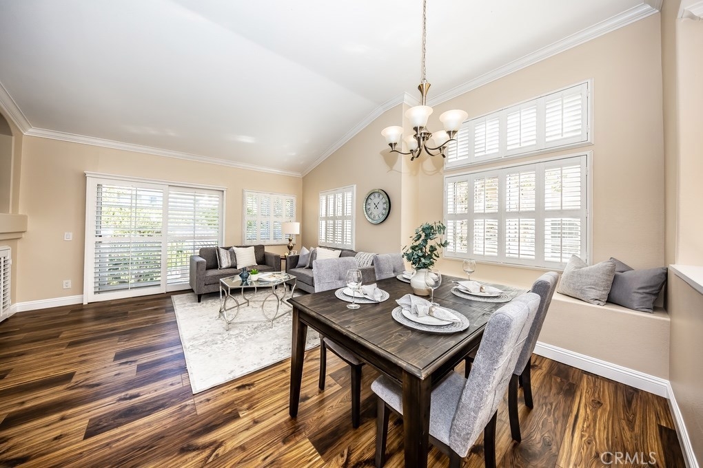 Viewpointe North just got a little sweeter! This end-unit 2 bedroom, 2 bath townhouse has been beautifully upgraded w/no one above or below you! New paint, wood floors & a stacked stone gas fireplace welcome you. Enjoy the view from your built-in window seat! Light & bright white kitchen cabinets w/grey granite counter tops & custom backsplash, along w/soft-closing drawers makes 4 easy meal prepping. Don't forget all the stainless steel appliances (refrigerator, dishwasher, microwave & brand new gas range) are included! Stylish wainscoting & recessed lighting are throughout as well. Double door entry to the master bedroom invites you to mirrored wardrobe doors & new upscale ceiling fan fixture. The master bathroom offers a vaulted ceiling, upgraded natural travertine shower & granite countertops w/double sink vanity. The built-in Murphy Bed cabinetry surrounds the second bedroom wall...all it's waiting for is your bed! The electric washer & dryer are included & wooden shutters close for reducing noise. There's an attached 1-car garage w/direct home entry w/auto door opener, as well as a long driveway & carport, providing space for 3 cars! Viewpointe North is a gated community w/2 pools, 5 spas, clubhouse, BBQ areas & greenbelts throughout. HOA also includes cable service. Great location near dining, shopping, entertainment & easy access to 91, 55, 241 & 57 FWYS make this the ideal, turnkey Anaheim Hills home. Are you ready to move in? It's just waiting 4 you to call it yours