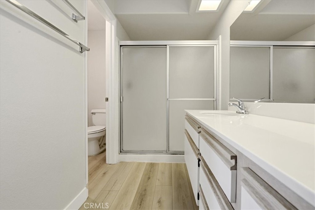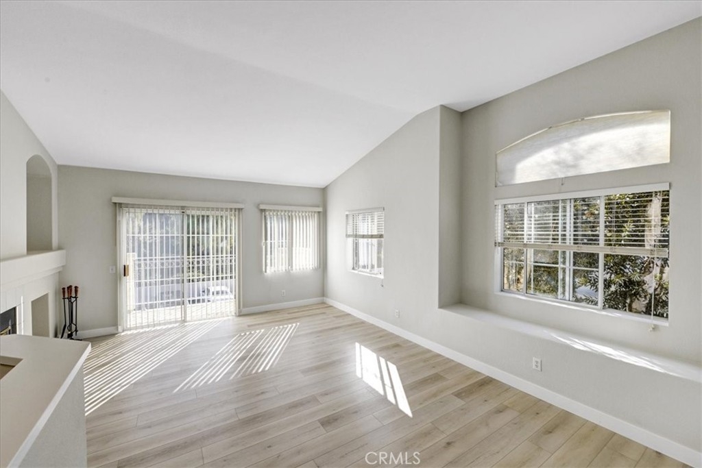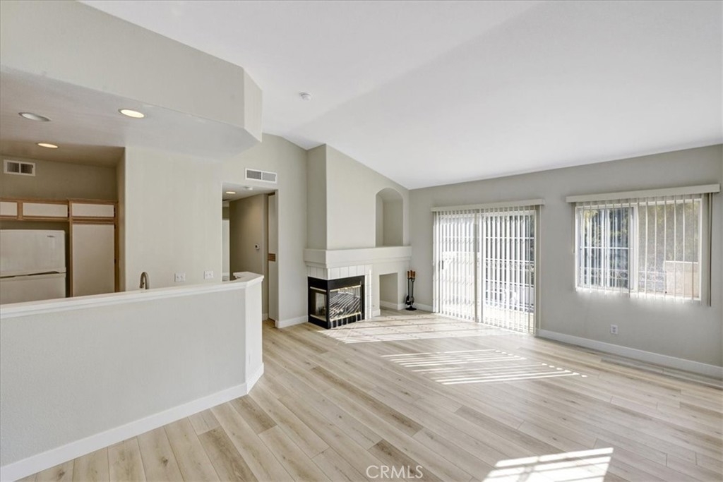 If privacy is what you are looking for this turnkey Condo is the one for you. Discover this two bedroom two bath is located in the highly desirable View Point North gated community. As you enter through the front door you eyes will gaze upon the high celling and windows which brings in an abundance of natural lighting. The one car garage is located on the entry level. As you ascend upstairs you will notice an open floor plan with all living space and bedrooms, Cozy gas fireplace is a focal point in the living room and through the sliding door you can access the balcony. Living room is open to the dinning area and kitchen white gas stove, microwave and dishwasher with white tile countertops. Master bedroom has mirror closet doors to store your personal belongings and roomy enough for a king size bed. Master bathroom features a walking shower with double sink . The guest bedroom and guest bathroom, with bathtub/shower and the laundry are conveniently located off the hallway. This unit has no one above or below. Enjoy the sunshine and outdoors as the HOA includes two community Pool/Spa, BBQ area and Clubhouse . Beside the attached on car garage with direct access, there is assigned parking space and plenty guest parking. Amazing location near Biking/Hiking Trails, Dinning, Shopping, Moving Theater. Quick access to the FWY and Toll Road.