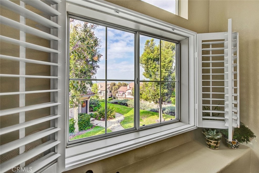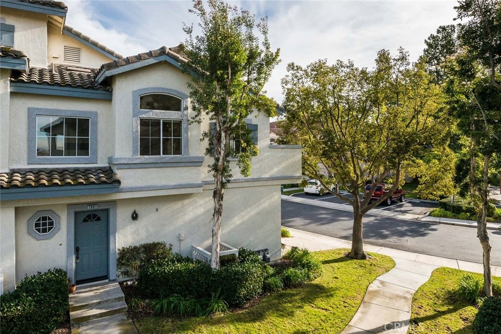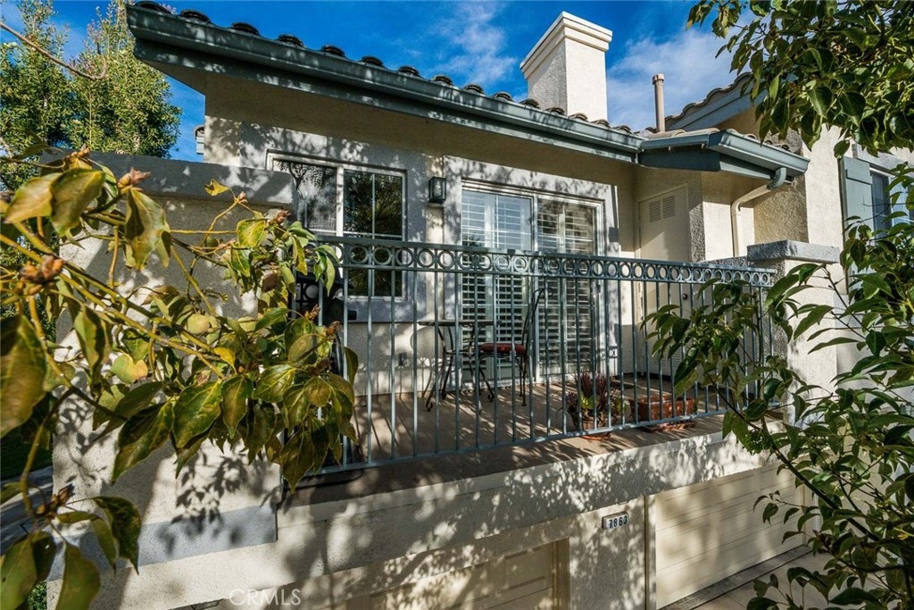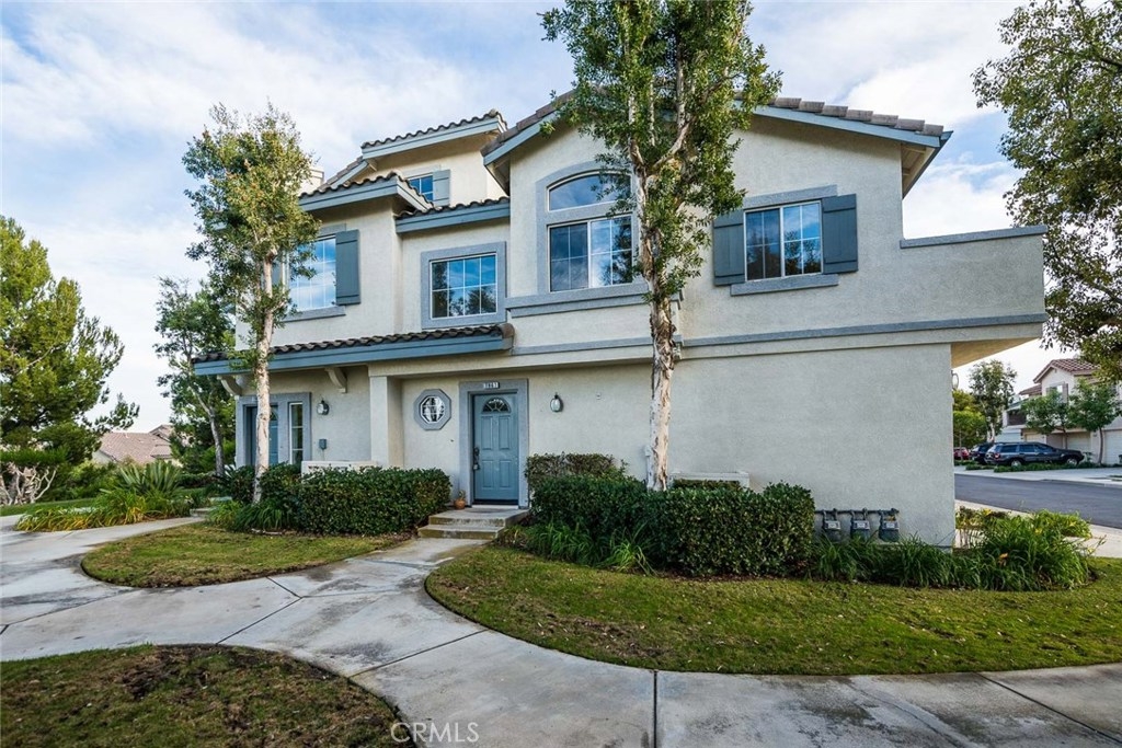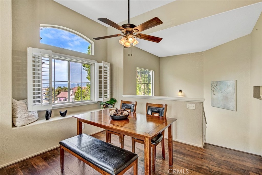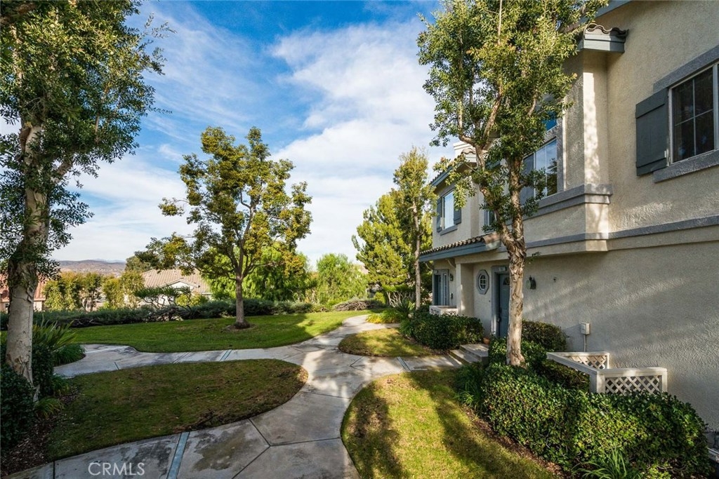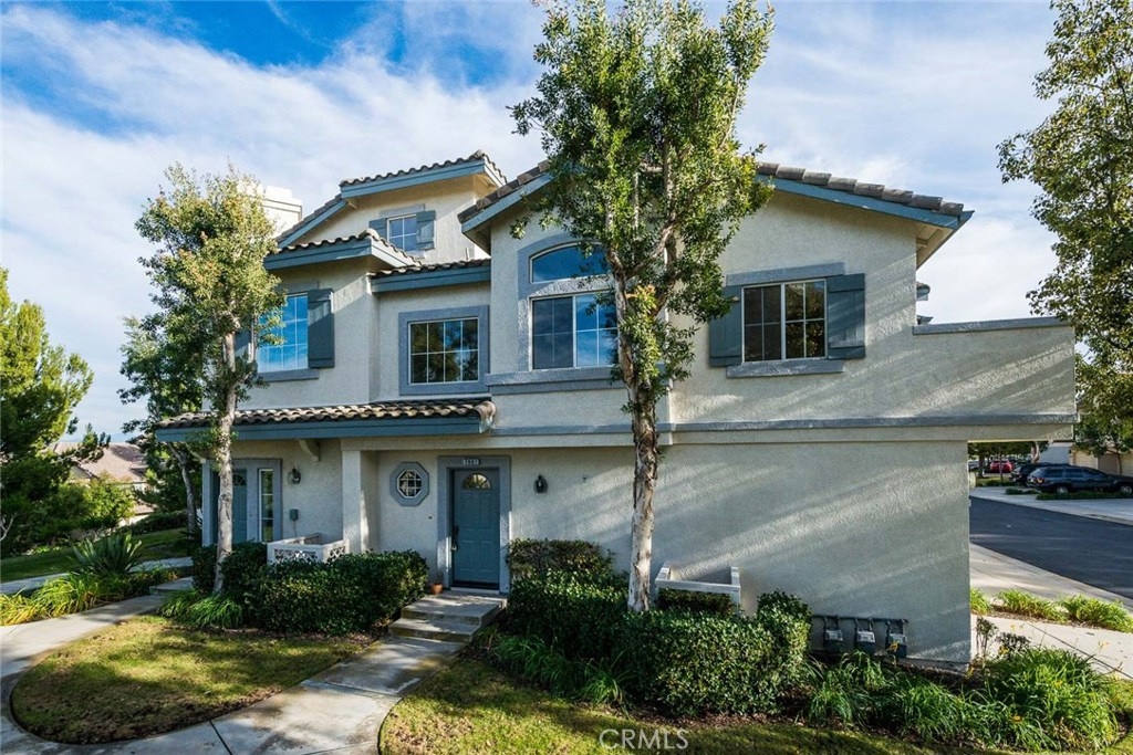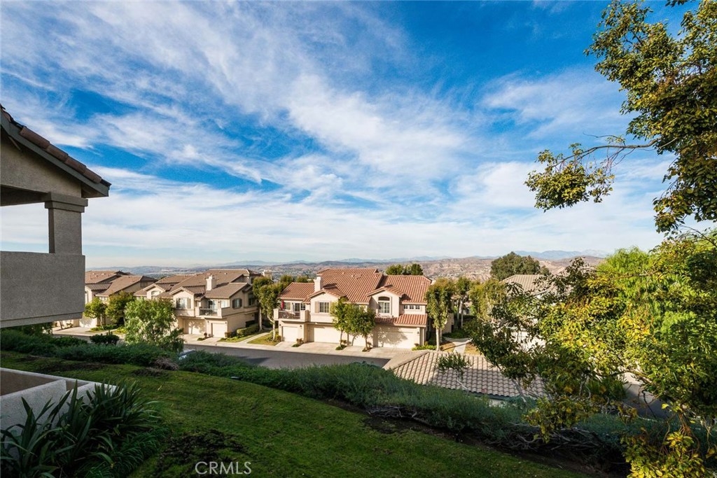 Beautiful views from this two bedroom two bathroom upper end unit located in the gated community of Viewpointe North. Sought after floor plan with no one living above or below you. Great location at 'bend' in street offering gorgeous hills views, extra greenbelt, and plenty of guest parking just across the street. Front door opens to foyer with direct access to the attached one car garage, and open stairwell leading to upstairs living. Vaulted ceilings and many windows add to the bright atmosphere of home. Dining area includes ceiling fan and window seat with view of the hills. Spacious living room with fireplace and media niche and plantation shutters on sliding glass door to private balcony. This floor plan offers one of the largest kitchens in the community with plenty of cabinet and counter space and is open to dining and living rooms. Convenient indoor laundry closet located upstairs and suitable for full size washer and dryer. Large guest bedroom and full guest bathroom. Double door entry into master bedroom with two closets each w/ mirrored doors. Dual sink vanity in the master bathroom and large shower with private toilet area. Highlights include beautiful views, wood laminate flooring, plantation shutters, and a one car designated carport just across the street. Turnkey and ready for immediate move-in. Viewpointe North offers two pools, five spas, club house, and is a gated community.