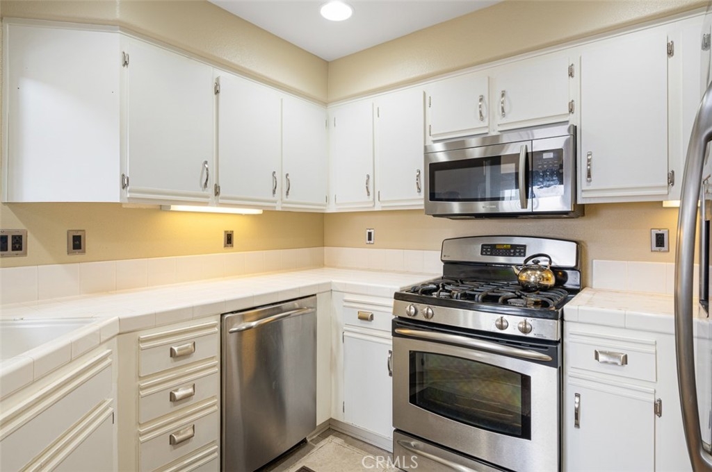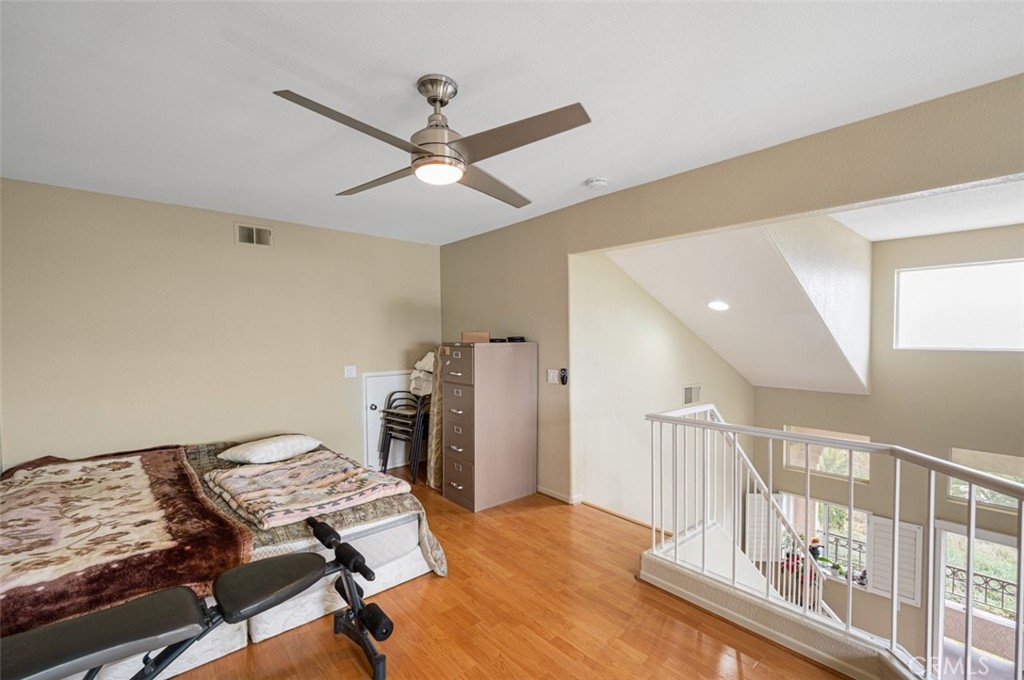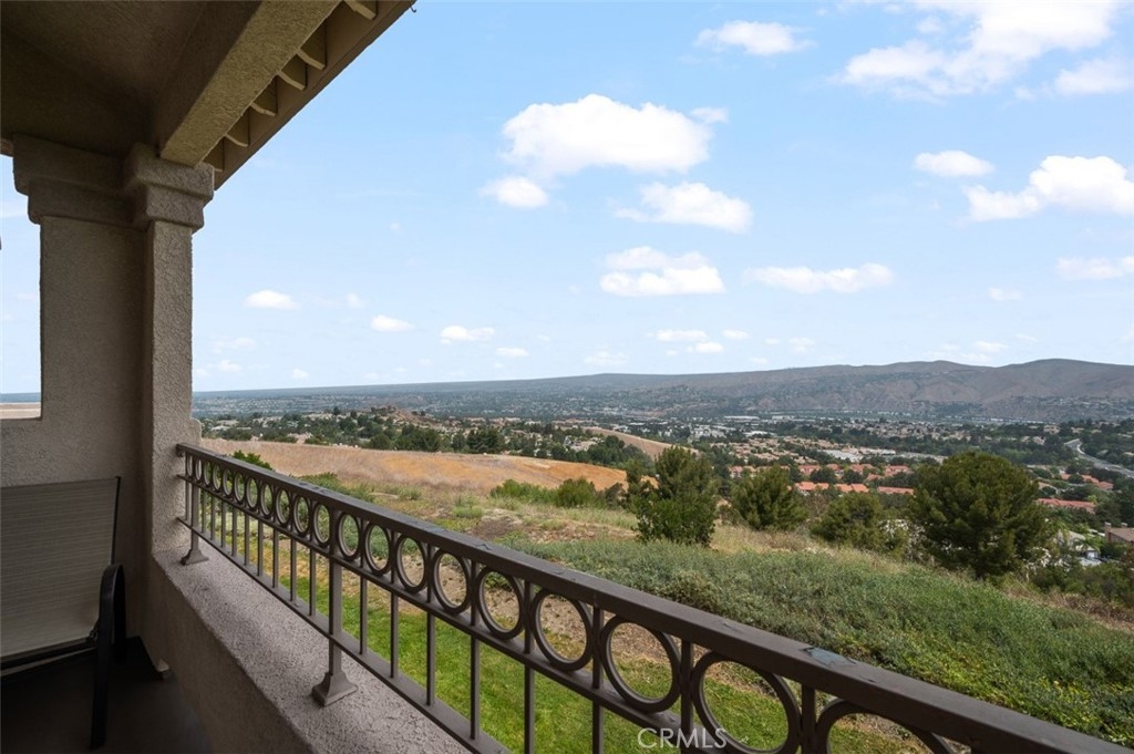 Spectacular panoramic views from all rooms in this upper end unit. Premium location on the sought after Viewrim Drive in the gated community of Viewpointe North. Desirable floor plan offers two bedrooms, two bathrooms, and a large open loft. Soaring cathedral ceilings and many windows add to the bright atmosphere of home. Updated kitchen with white cabinets, recessed lighting, and stainless steel appliances. Kitchen opens to living room which includes fireplace, private balcony, and access to the loft above. Spacious loft is perfect for additional entertaining or a home office. Dining room is adjacent to living room for open area living. Down the hall is the master bedroom with double door entry, vaulted ceilings, and private balcony. Master bathroom offers dual sink vanity and walk-in closet. Guest bedroom with vaulted ceiling and gorgeous views. Guest bathroom with bathtub/shower combo. Laundry closet is conveniently located upstairs and is suitable for full sized washer and dryer. Two car attached garage with direct access to home and driveway for additional parking. Viewpointe North is ideally located near the top of Anaheim Hills and includes two gated entrances, two pools, five spas, and a clubhouse.