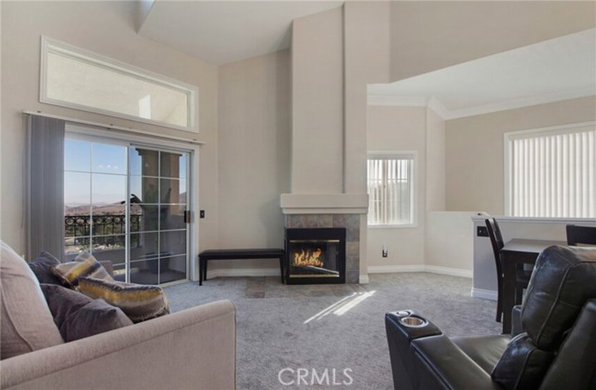 Highly sought after location in ViewPointe North. Stunning panoramic views from this two bedroom + loft, two bathroom condo with dual balconies! Unit has been remodeled from top to bottom, including all flooring, kitchen, and bathrooms. Kitchen includes gorgeous quartz countertops, white cabinets and top of the line stainless steel appliances. Spacious entry leads to cathedral ceiling living room and dining area with custom built storage cabinets and brand new carpeting throughout. Large open loft area above living room can be used as an office or third bedroom - easily fits a queen size bed and more. Master suite features double door entry and private balcony. Remodeled master bath includes dual sink area with quartz countertop, large dressing area with walk-in closet and custom designed closet organization system. Guest bedroom is spacious and includes mirrored closets. Remodeled guest bathroom includes custom vanity, mirror, and fixtures. Laundry room is conveniently located next to bedrooms. Ease of access through two car attached garage. Unit also includes driveway for additional parking and plenty of guest parking close by. Other recent updates include keyless entry in garage and Nest smarthome system. Minutes away from award winning schools and surrounded by private greenbelts! Monthly association also includes cable service. This highly sought after gated community sits at the top of the hill and amenities include two pools, five spas, and a club house for parties.
