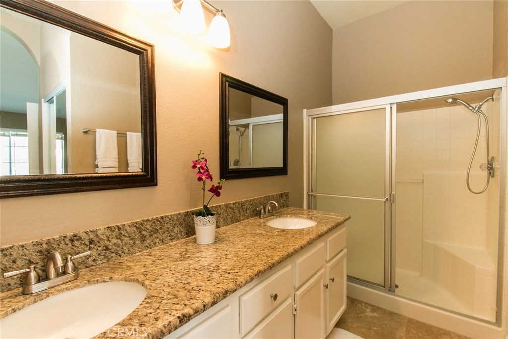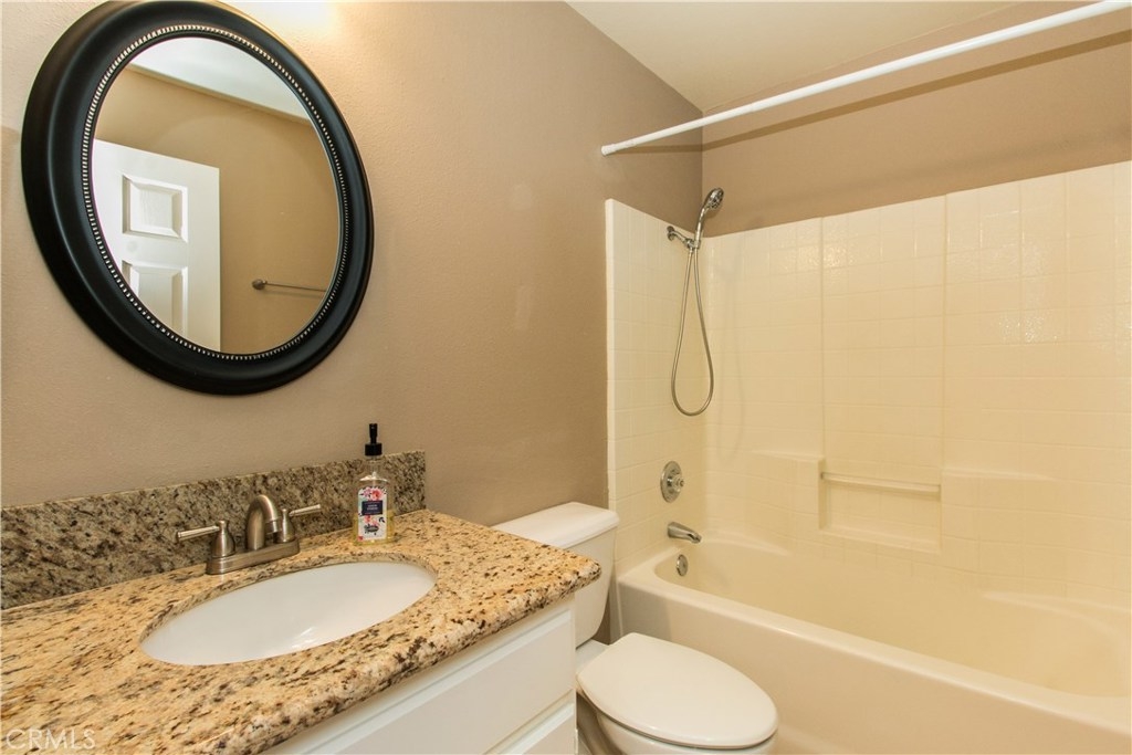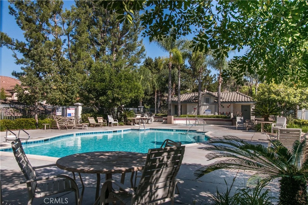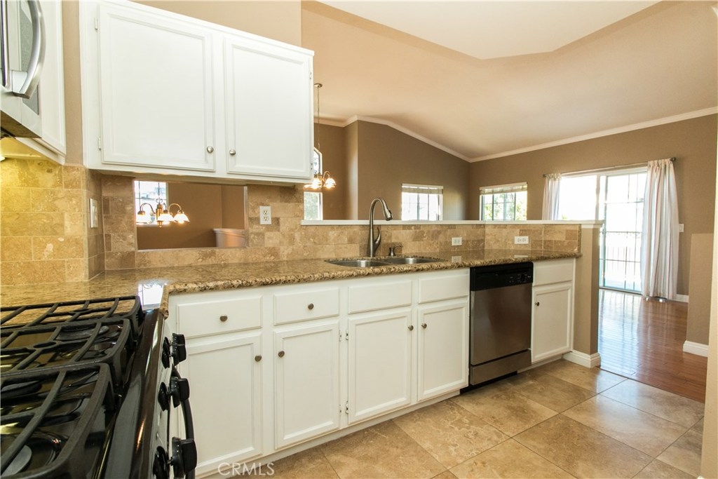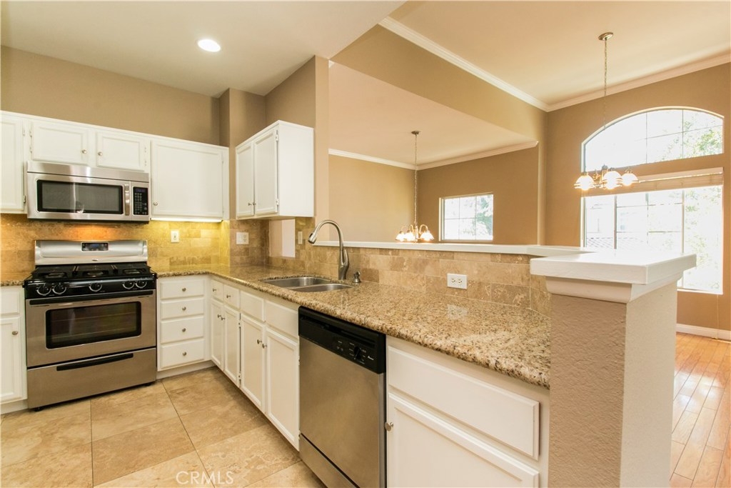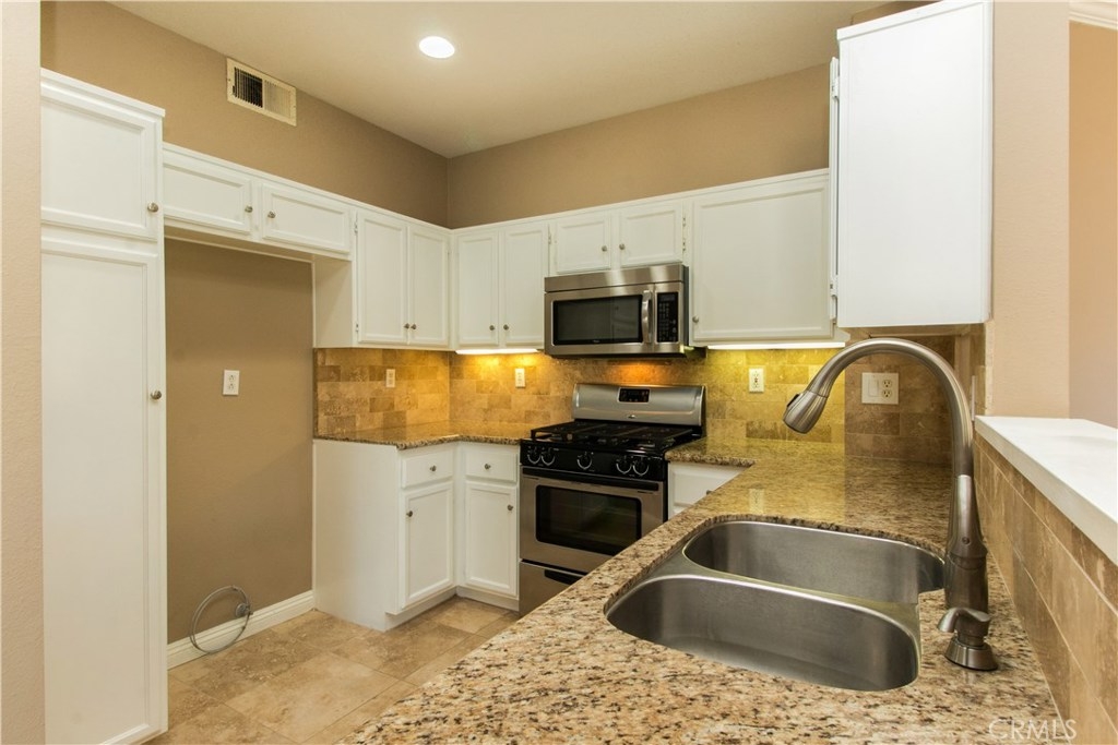 COVETED VIEWPOINTE NORTH END UNIT. Bright and airy "End unit" with upgrades throughout. Absolutely beautiful kitchen with granite stone counter tops, breakfast bar, stainless steel appliances, and custom Travertine backsplash. Large dining area with adjacent to kitchen for easy access. Open concept floor plan is spacious and allows for an abundance of natural light. Real hardwood flooring throughout the living areas, dining area, and hallways with Travertine in the entry, kitchen and both bathrooms. Crown molding throughout the entry and living areas with a Travertine faced fireplace and media area. Dual mirrored double closets in the master with raised ceiling. Granite vanities in both bathrooms with dual sinks in the master. Indoor laundry room for convenience. Attached one car garage with additional reserved covered space very close to the property. Multiple guest parking spots available as well. Community is FHA and VA approved via HUD (Buyer to verify). HOA includes: Multiple pool & spa areas, gated entrance, building insurance, basic cable, and maintenance of the grounds.