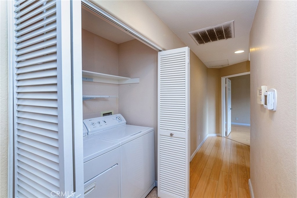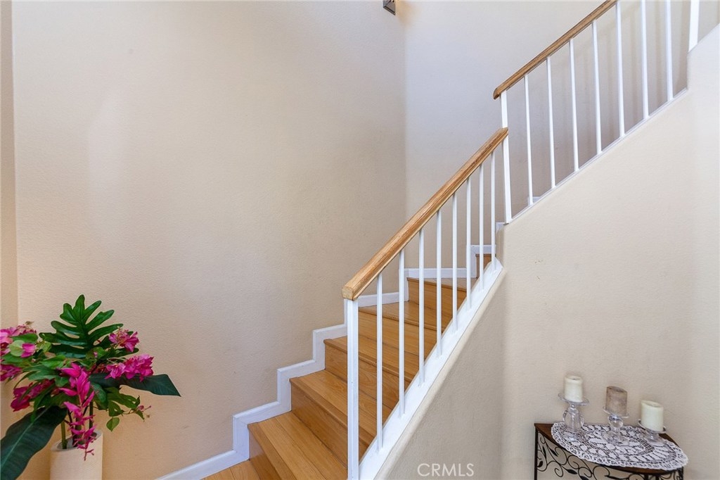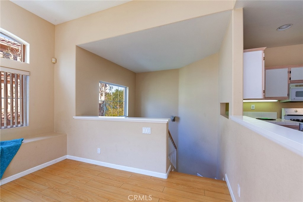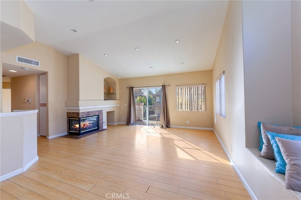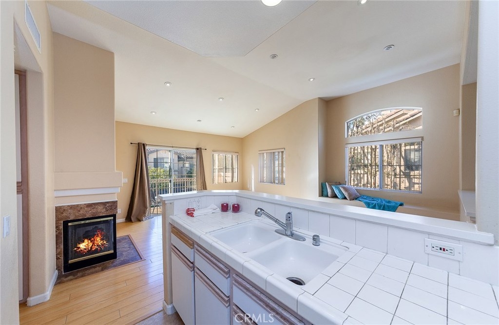 A Charming Two Bedroom, Two Bathroom upper-end unit Condo, no one residing above or below situated in the highly desirable Viewpointe North gated community. This Condo has a great functional layout that flows from room to room. As you walk into the condo you are greeted by an abundance of natural light, which pour in from the countless windows found throughout. A spacious living room featuring a vaulted ceiling, recessed lighting, a cozy fireplace, wood-like flooring and a sliding door that leads out to the balcony. On the left, a kitchen, open to the living room which proves to be perfect for entertaining guests and family. The Master Bedroom which has a double door offers two separate mirrored closets, dual sinks, and a walk-in shower. A great sized second bedroom with another mirrored closet, full second bathroom. Indoor laundry closet conveniently located off the hallway which includes a washer and a dryer. Direct access to One-car garage attached underneath and one covered carport. This community offers five different spas and two swimming pools, one located on the same street as this condo. The community also offers a clubhouse for your special events. Walking distance to the award-winning Canyon Rim Elementary.