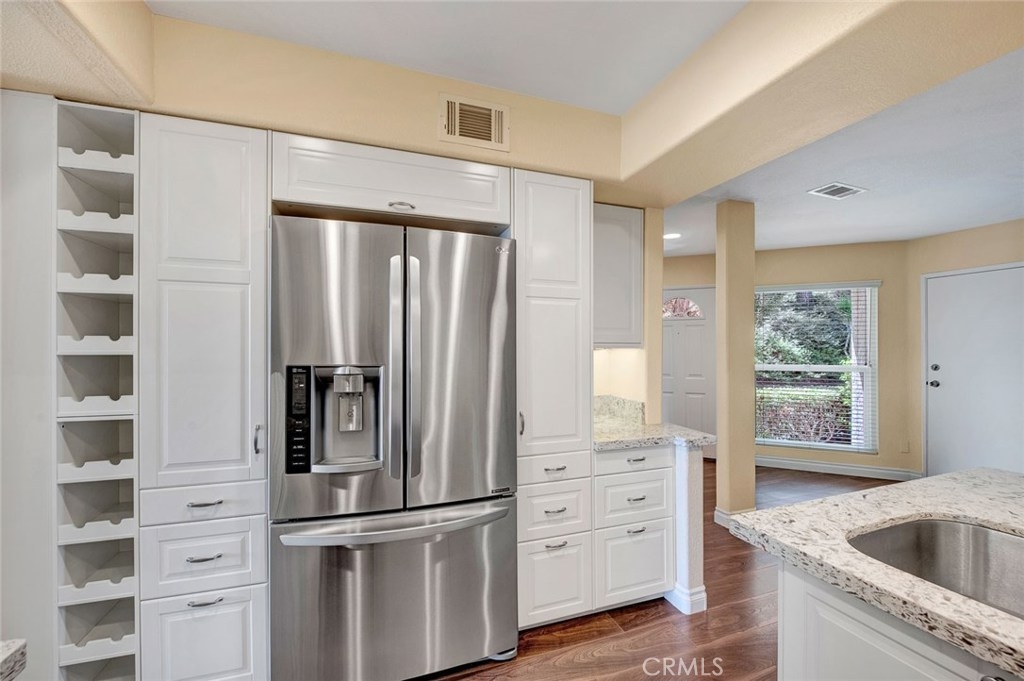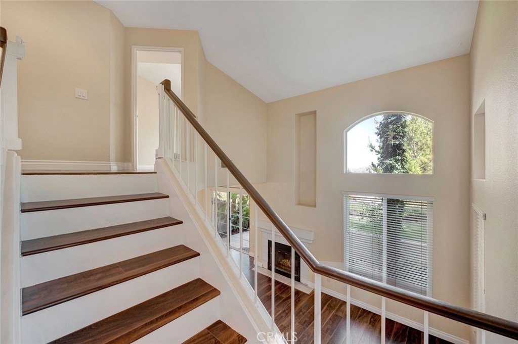 One of the best locations in Viewpointe North is now available for purchase! Breathtaking Panoramic Views from this beautiful end unit town home. Located on the sought after Viewrim Drive in the Gated Community of Viewpointe North. This prime location is at the East end of Viewrim offering nothing next to you except lush green belts and mature trees.Gorgeous remodeled kitchen with white soft close cabinets and drawers, quartz counter tops, recessed lighting, and large counter bar for seating. Kitchen is open to family room with laminate flooring, new window and access to attached garage. Soaring cathedral ceilings in the light and bright living room which includes fireplace and wood laminate flooring. Formal dining room located off the kitchen and has sliding glass door to access private patio which is perfect for relaxing to the view! Remodeled guest bathroom with custom vanity. Spacious master bedroom offering private balcony, wood laminate flooring, and vaulted ceilings. Master bathroom includes dual sink vanity, large oval bathtub, and sizable walk-in closet. Two guest bedrooms located down the hallway with guest bathroom including dual sink vanity and separate bathtub/shower area. Convenient laundry closet is located upstairs.Highlights include wood laminate flooring throughout, custom baseboards, fresh paint, and a two car attached garage with direct access and extra long driveway for additional parking. Viewpointe North offers two pools, five spas, and club house.