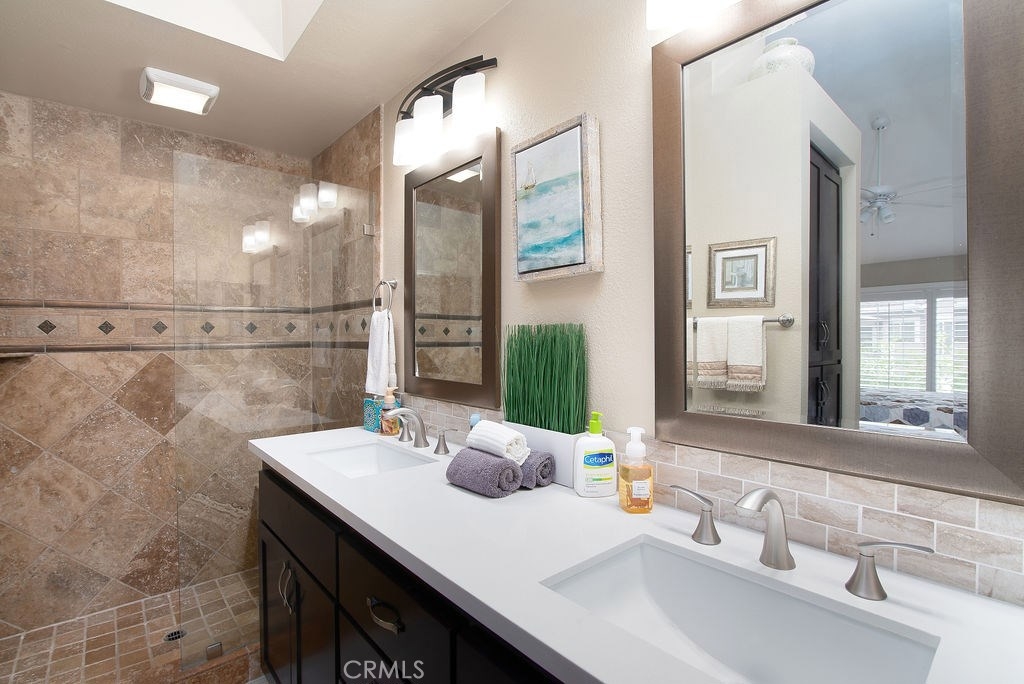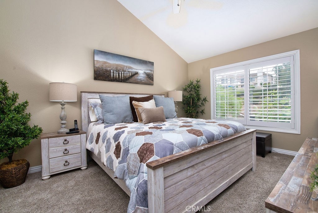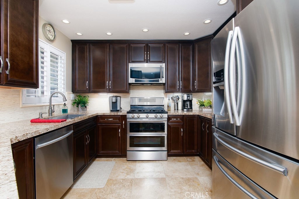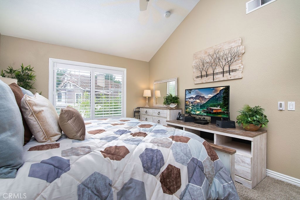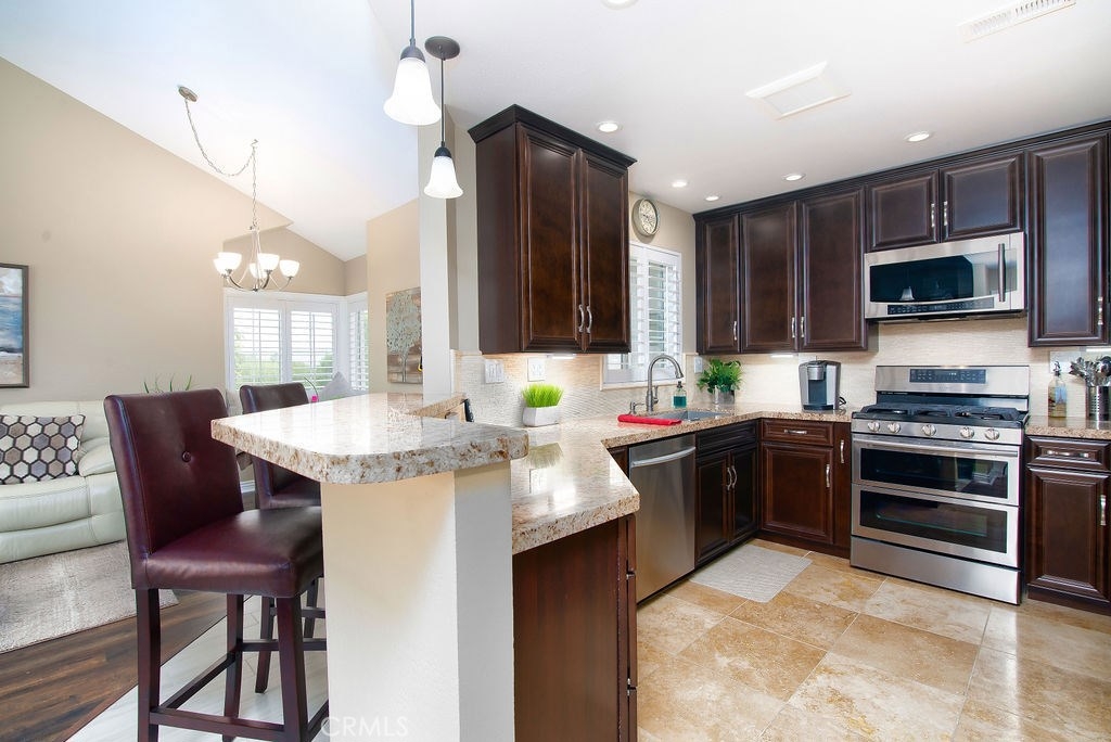 Stop Looking. Start Unpacking! This beautiful upstairs two bedroom two bathroom Viewpoint home in Anaheim Hills is waiting for you to make it your home! As you enter the inviting living room you are greeted with vaulted ceilings, wood flooring and a cozy fireplace. The upgraded kitchen is open to the living space and features newer cabinets, granite counters, and stainless steel appliances that include a gas range with dual oven and convection microwave oven. The spacious master suite also has vaulted ceilings, a large closet, dual sinks and walk-in shower with skylight. There is a second bedroom and guest bathroom down the hall. Other features of the home include inside laundry, shutters, recessed lights, a one car garage, one carport spot and the ability to park in the driveway. The ideal location is close to hiking, great schools and shopping.