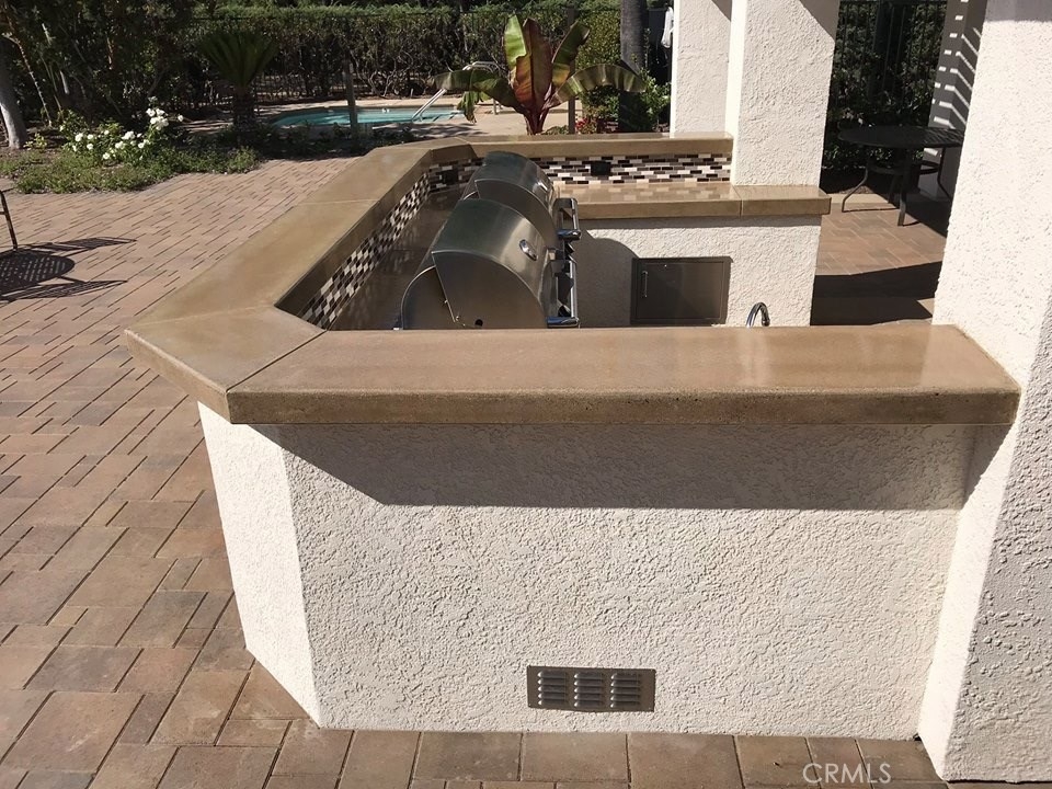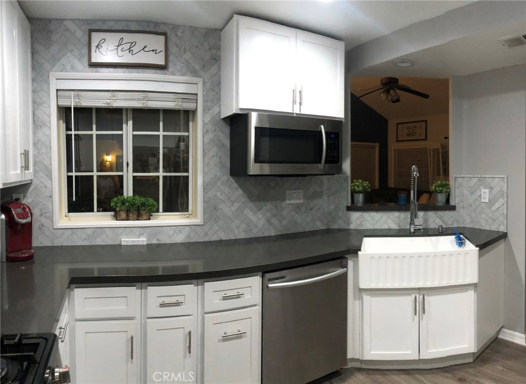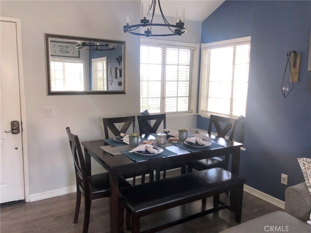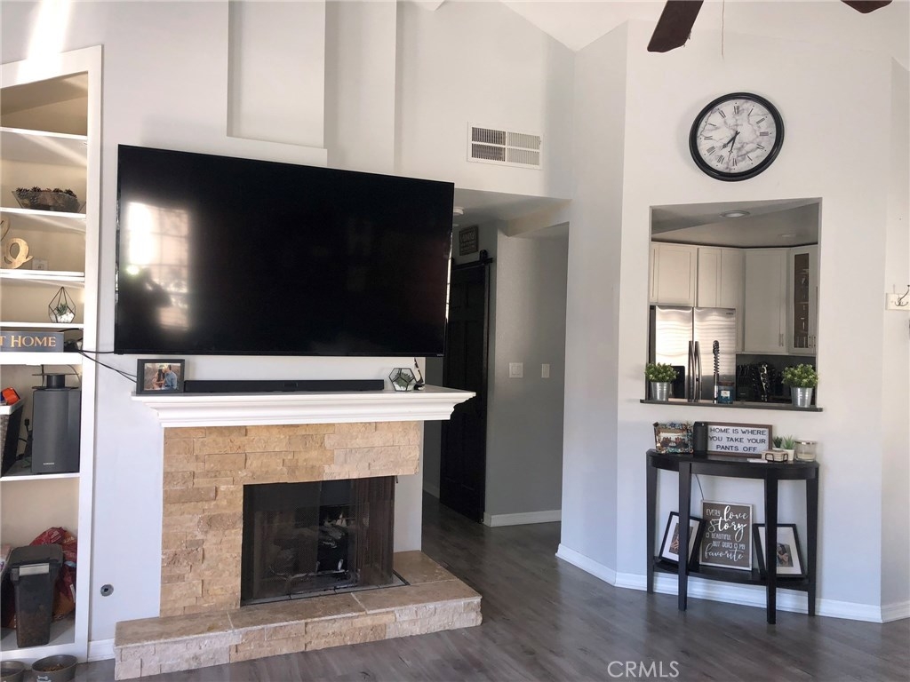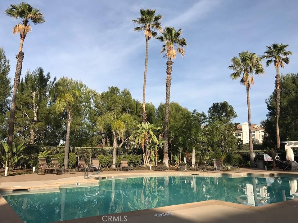 Wonderful end unit condo in the highly desirable gated community of Viewpointe in Anaheim Hills. Upon entering into this lovely upgraded home you will be welcomed into the open living space on one level with vaulted ceilings and lots of natural light. Look out the dining area windows and catch a glimpse of mountain and greenbelt views. Continue out the living room to the private balcony set up for bbq and entertaining guests. Spacious upgraded kitchen with higher ceiling and cabinets with recessed lighting. Updated guest bathroom. Walk into the roomy master bedroom with vaulted ceilings, ceiling fan, and large closet. The master bathroom hosts dual sinks, beautifully upgraded. Secondary bedroom also has, ceiling fan, and closet. Convenient indoor laundry, one car garage with additional carport space, and nearby guest parking. This resort style community comprises of a pool and multiple spas, along with hiking trails that lead to Irvine Regional Park. All within a short walking distance to award winning schools, parks, shopping, golf course, and restaurants.