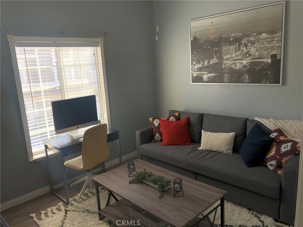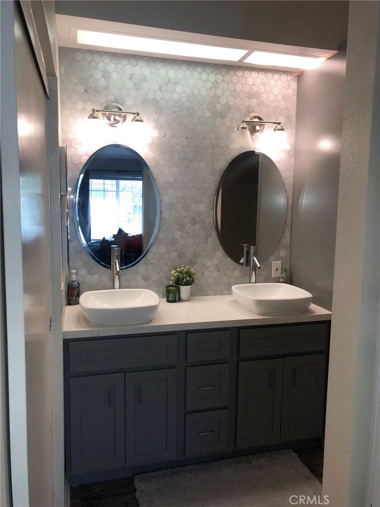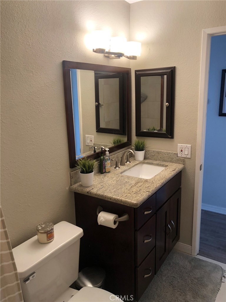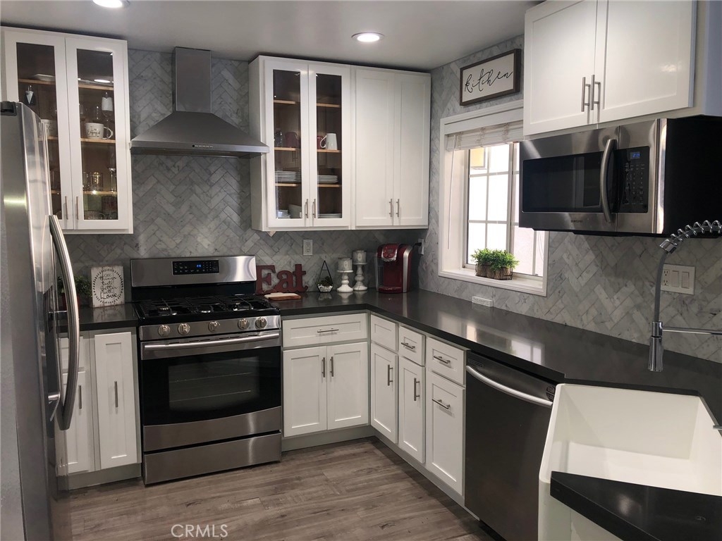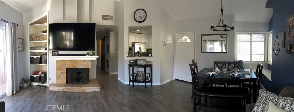 Wonderful end unit condo in the highly desirable gated community of Viewpointe in Anaheim Hills. Upon entering into this lovely upgraded home you will be welcomed into the open living space on one level with vaulted ceilings and lots of natural light. Look out the dining area windows and catch a glimpse of mountain and greenbelt views. Continue out the living room to the private balcony set up for bbq and entertaining guests. Spacious upgraded kitchen with higher ceiling and cabinets with recessed lighting. Updated guest bathroom. Walk into the roomy master bedroom with vaulted ceilings, ceiling fan, and large closet. The master bathroom hosts dual sinks, beautifully upgraded. Secondary bedroom also has, ceiling fan, and closet. Convenient indoor laundry, one car garage with additional carport space, and nearby guest parking. This resort style community comprises of a pool and multiple spas, along with hiking trails that lead to Irvine Regional Park. All within a short walking distance to award winning schools, parks, shopping, golf course, and restaurants.
