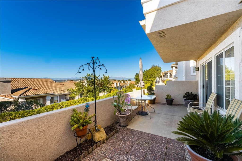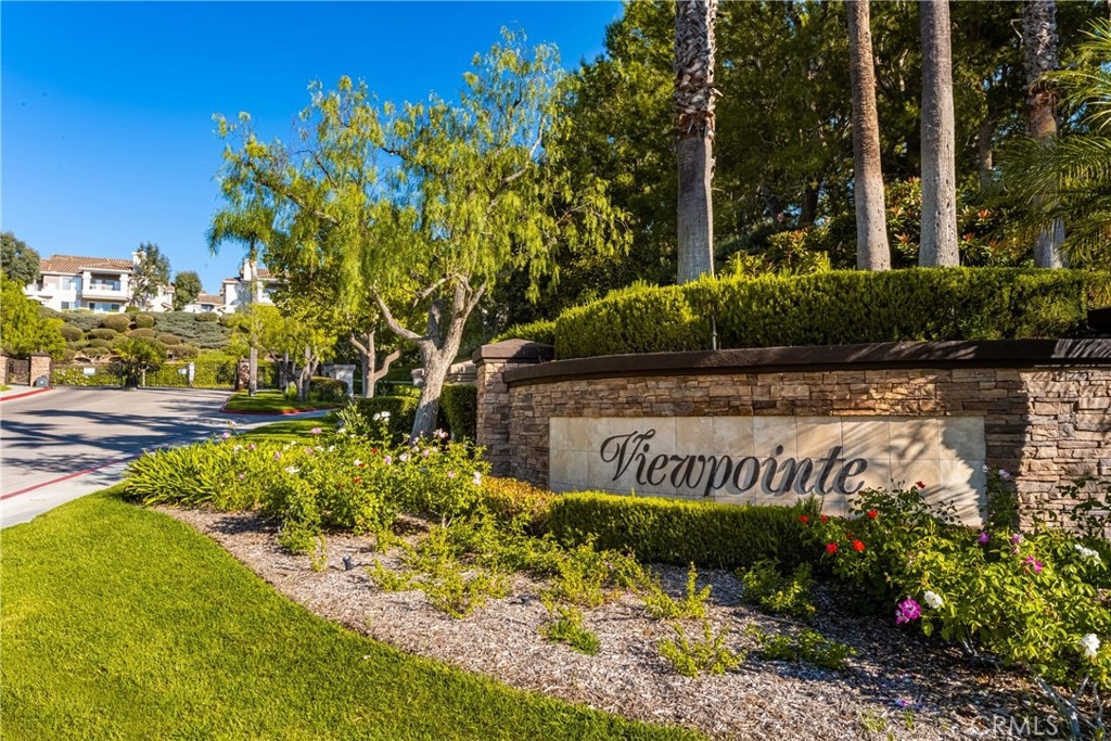 This highly desirable, ground-level home has stunning, uninterrupted mountain and sunset views. This Anaheim Hills two-bedroom, two-bath condo is located in the highly coveted gated community of Viewpointe. Upon entry, you will find an open floor plan with an updated kitchen, gas range, new dishwasher, new garbage disposal, and stainless steel refrigerator. The primary bedroom has an en-suite bathroom with dual vanities and a stand-up shower. It opens to a large patio to enjoy your morning coffee in a quiet and serene setting. There is an additional bedroom with a dedicated closet that could serve as an office or home gym. The laundry area is conveniently located in the hallway, with a washer and dryer included; there is a spacious one-car attached garage and one assigned carport. The owners installed a new A/C unit within the last six months! This end-unit feels private when sitting on the oversized patio that can be accessed from the living room and primary bedroom. You’ll often spot wildlife on the greenbelt fronting the patio. The community has well-maintained landscaping, three spas, a resort-style recreation area with a heated pool, spa, barbeques, and a fire pit. Act fast as other homes in this community have sold within days of listing.