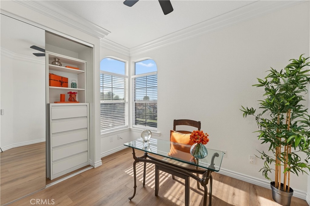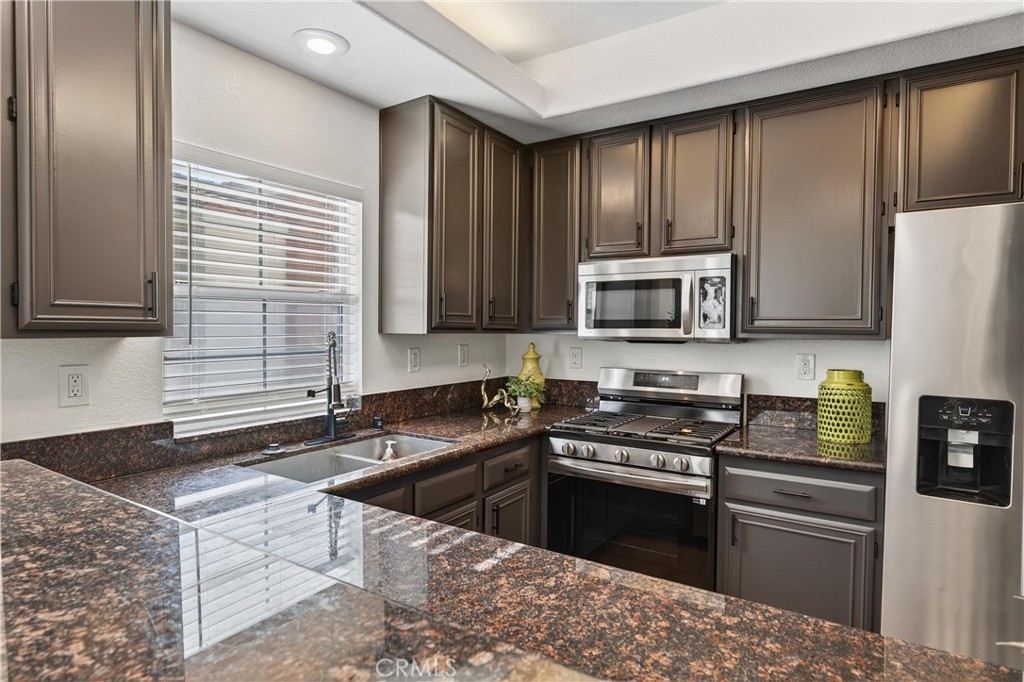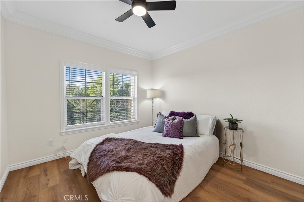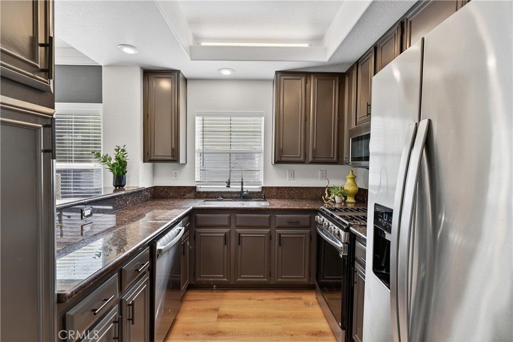 Located in the exclusive gated community of Summit Renaissance, this beautifully remodeled home offers an exceptional blend of comfort, style and modern convenience. Featuring brand new luxury plank flooring, fresh interior paint with designer colors, custom blinds, new electrical work, mostly new plumbing. All mechanical systems have been serviced and up to date. A spacious living area boasts soaring ceilings, a cozy fireplace, walk out balcony and plenty of natural light. The kitchen features granite countertops that include a breakfast bar, stainless steel appliances and beautifully finished cabinetry with plenty of storage. The spacious primary suite includes city lights views, an ensuite bathroom, double vanity sinks with granite countertops, and a generous walk in closet. Large plank flooring extends to all living areas and bedrooms which each feature custom built in closet organizers for convenient storage. Additional highlights include over-sized crown molding, new baseboards, interior full size laundry area, and a private two car garage with wall to wall custom cabinetry. Located within a desirable gated community with additional luxuries that include a beautiful pool and spa for relaxing or entertaining guests. Close to freeways, shopping, restaurants, parks, schools, hiking and biking trails and in one of Orange County's premiere communities!