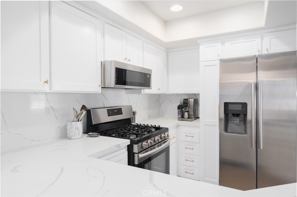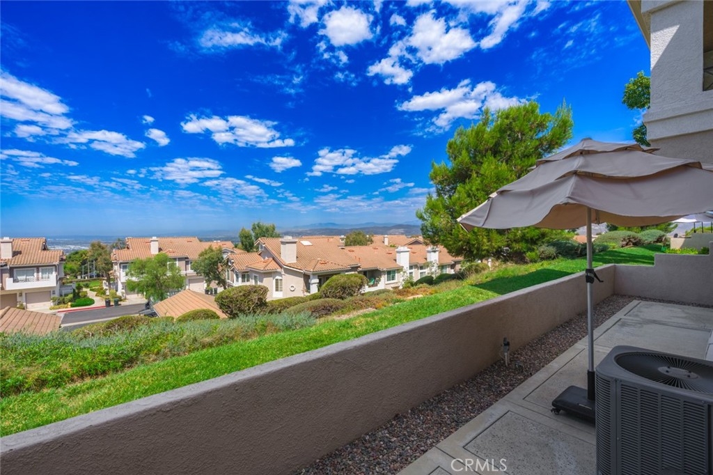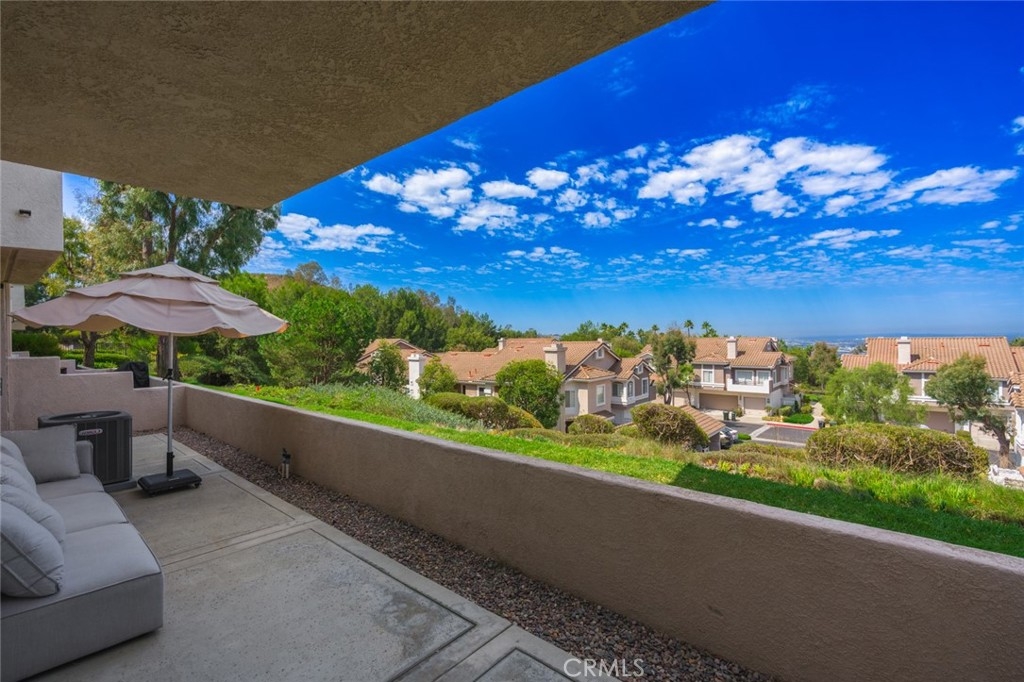 This is the one you’ve been waiting for! Perched at the top of the gated Viewpointe community, this 2-bedroom, 2-bath condo offers unparalleled views and unbeatable privacy. *FHA Approved Community!* Located on a quiet, single-loaded street, this rare gem features a beautifully remodeled interior and an oversized private patio with stunning views stretching all the way to downtown LA. The highly sought-after single-story floor plan offers a spacious open concept living room, newly remodeled kitchen, and dining area. Down the hall, the primary bedroom includes patio access and a connected ensuite bathroom. Another bedroom and bathroom are conveniently located nearby along with in-unit laundry hookups. Enjoy expansive views from your private patio, surrounded by a peaceful greenbelt. Additional features include direct access to a one-car garage and an extra covered carport spot. The association offers a gated community, pool, and spas, with easy access to hiking, mountain biking, and equestrian trails. Come home to everything Anaheim Hills has to offer!