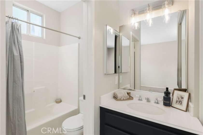 Welcome to your Pinterest inspired condo in Anaheim Hills featuring 2 bedrooms, 2 1/2 baths, and 1035 SQFT of living space in the gated Summit Renaissance community. The kitchen has been recently remodeled with bright white cabinets, quartz countertops, a new stove, microwave, stainless steel sink & faucet. Across from the kitchen, you’ll find a convenient remodeled desk/work station, for a home office or study area. The interior of the home has been freshly painted in "accessible beige" from the Sherman Williams collection, giving it a modern and clean look. A new chandelier has been added to brighten up the room. Upstairs, both bedrooms have an en-suite bathroom with cabinets updated in Sherman Williams "naval" blue with new lighting fixtures to enhance the space. Direct access to a 2-car garage with laundry hookups offer added convenience. Relax & unwind on the front patio with enclosed gate. Situated in a premium location, this property offers resort style living with a sparkling pool, workout room & guest parking close by. Love living in Anaheim Hills as you enjoy this turnkey condo with no one above or below you & conveniently located near shopping centers, highly rated schools & parks. This is HOME.