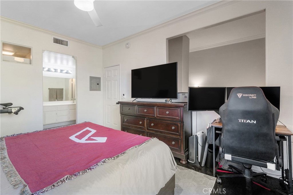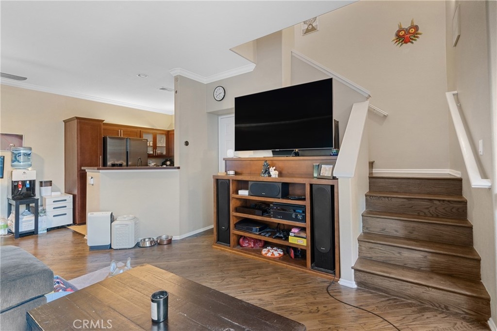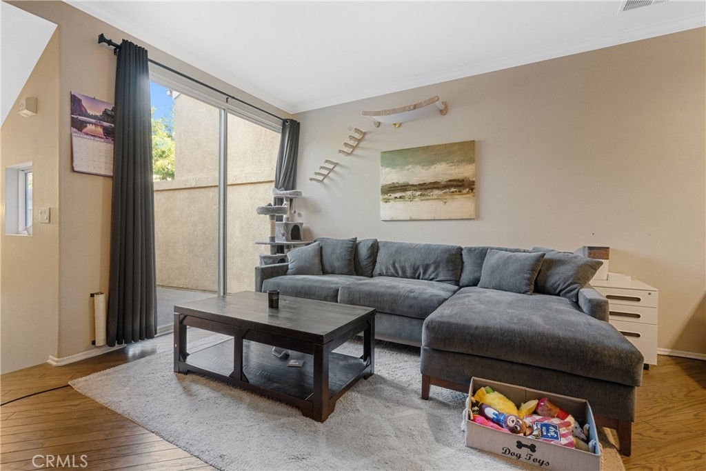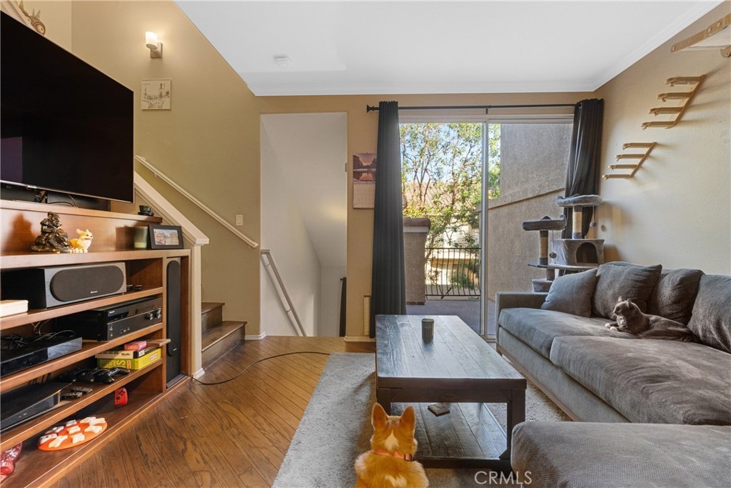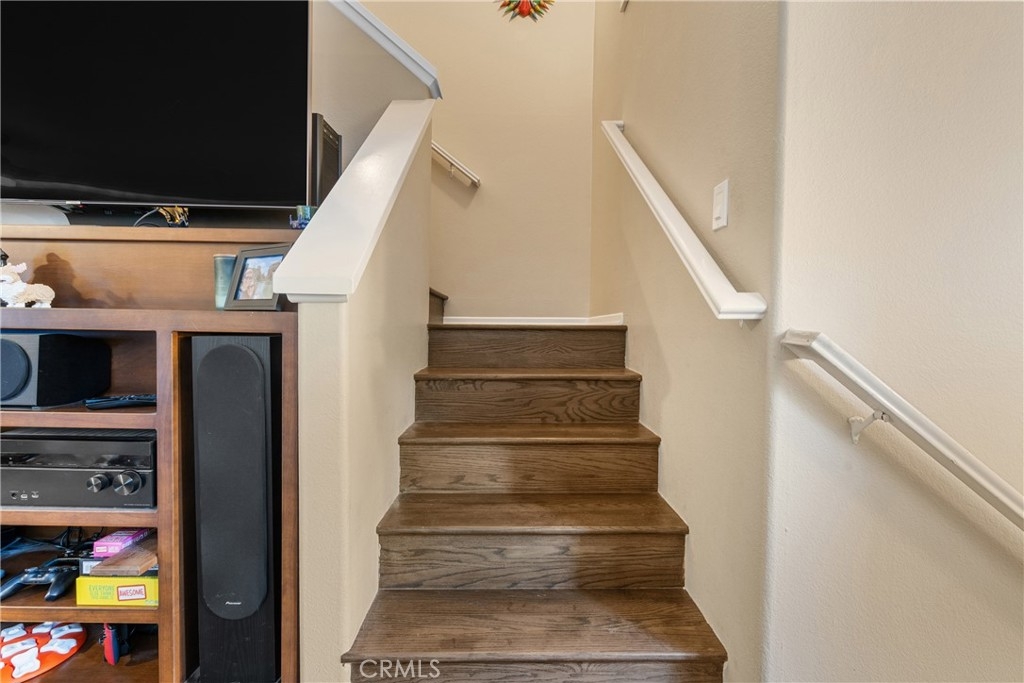 Elegant Tri-Level Townhouse-Style Condo with Premium Upgrades in the Exclusive Monaco Development! Step into luxury with this meticulously upgraded residence, where no detail has been spared. The unique layout ensures privacy, with no neighbors above or below. The open-concept design flawlessly integrates the living room, dining room, kitchen, balcony, and a convenient 1/2 bath on the main level, creating a harmonious living space. Revel in the sophistication of diagonally laid walnut hardwood floors, which perfectly complement the custom crown molding and recessed lighting in the living area. The open kitchen is a culinary haven, featuring granite counters and travertine floors. Step onto the private outdoor balcony, ideal for BBQs and entertainment. The extra-large master bedroom is a retreat with a spacious walk-in closet. The master bath boasts a double sink vanity and a shower over a large oval soaking tub. This home comes with an impressive array of upgrades, enhancing both comfort and efficiency. The HVAC system, installed in September 2022, now operates as a heat pump using electricity, replacing the original hydronic heater. A new water heater was installed in 2021, and both bathrooms feature new toilets from 2022. The kitchen is a showcase of modernity with 2020 Samsung smart appliances, including a fridge, range, microwave, and dishwasher. Further enhancements include a garbage disposal replaced in 2022, LED lights, and a Nest Smart Thermostat, Nest Smart Smoke/CO2 detectors in each room and smart light switches in most rooms. Experience the convenience of a community that offers access to resort-style amenities, featuring a large pool, tables with umbrellas, 3 spas, BBQ areas, clubhouse, weight/workout room, and tennis courts. Ideally located within walking distance to Canyon Rim Elementary School, Canyon Rim Park, and Walnut Canyon Reservoir, this residence is just minutes away from Target, grocery stores, Costco, Home Depot, a movie theater, restaurants, the library, and the 91 Freeway. Elevate your lifestyle in this exceptional townhouse-style condo, where luxury and functionality seamlessly converge!
