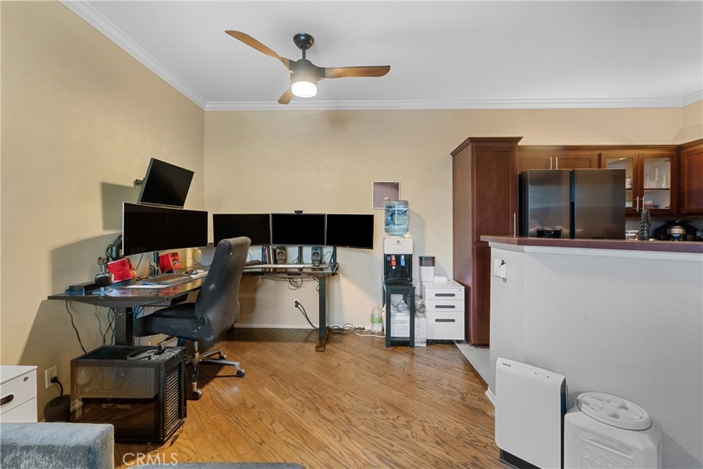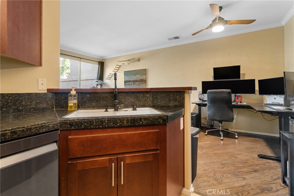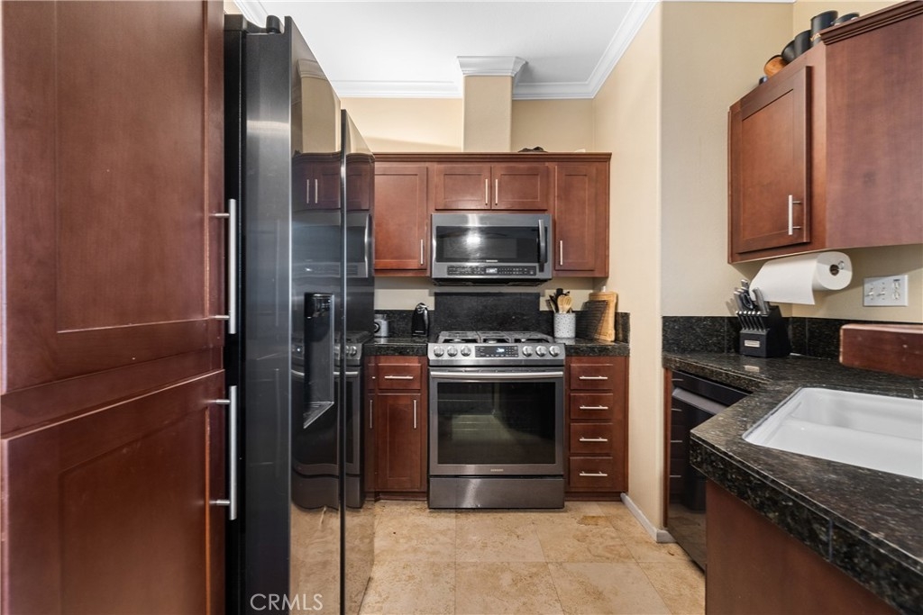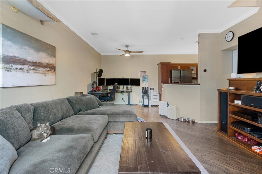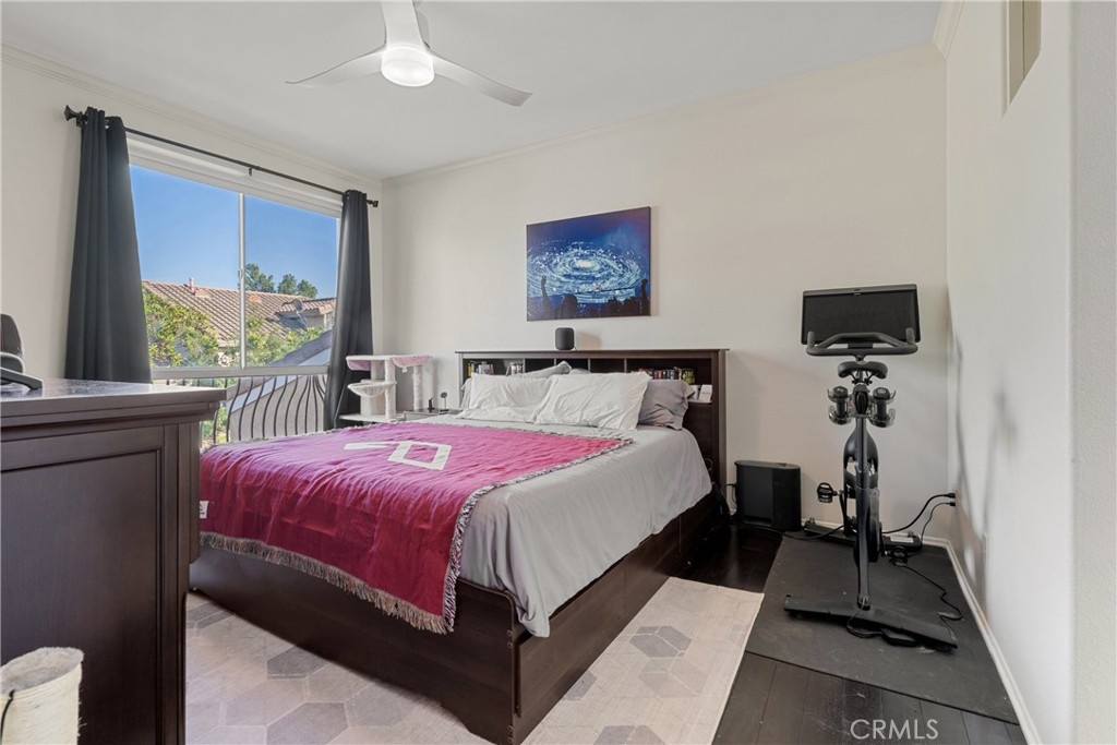 Elegant Tri-Level Townhouse-Style Condo with Premium Upgrades in the Exclusive Monaco Development! Step into luxury with this meticulously upgraded residence, where no detail has been spared. The unique layout ensures privacy, with no neighbors above or below. The open-concept design flawlessly integrates the living room, dining room, kitchen, balcony, and a convenient 1/2 bath on the main level, creating a harmonious living space. Revel in the sophistication of diagonally laid walnut hardwood floors, which perfectly complement the custom crown molding and recessed lighting in the living area. The open kitchen is a culinary haven, featuring granite counters and travertine floors. Step onto the private outdoor balcony, ideal for BBQs and entertainment. The extra-large master bedroom is a retreat with a spacious walk-in closet. The master bath boasts a double sink vanity and a shower over a large oval soaking tub. This home comes with an impressive array of upgrades, enhancing both comfort and efficiency. The HVAC system, installed in September 2022, now operates as a heat pump using electricity, replacing the original hydronic heater. A new water heater was installed in 2021, and both bathrooms feature new toilets from 2022. The kitchen is a showcase of modernity with 2020 Samsung smart appliances, including a fridge, range, microwave, and dishwasher. Further enhancements include a garbage disposal replaced in 2022, LED lights, and a Nest Smart Thermostat, Nest Smart Smoke/CO2 detectors in each room and smart light switches in most rooms. Experience the convenience of a community that offers access to resort-style amenities, featuring a large pool, tables with umbrellas, 3 spas, BBQ areas, clubhouse, weight/workout room, and tennis courts. Ideally located within walking distance to Canyon Rim Elementary School, Canyon Rim Park, and Walnut Canyon Reservoir, this residence is just minutes away from Target, grocery stores, Costco, Home Depot, a movie theater, restaurants, the library, and the 91 Freeway. Elevate your lifestyle in this exceptional townhouse-style condo, where luxury and functionality seamlessly converge!