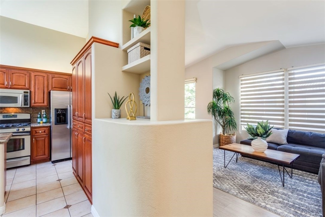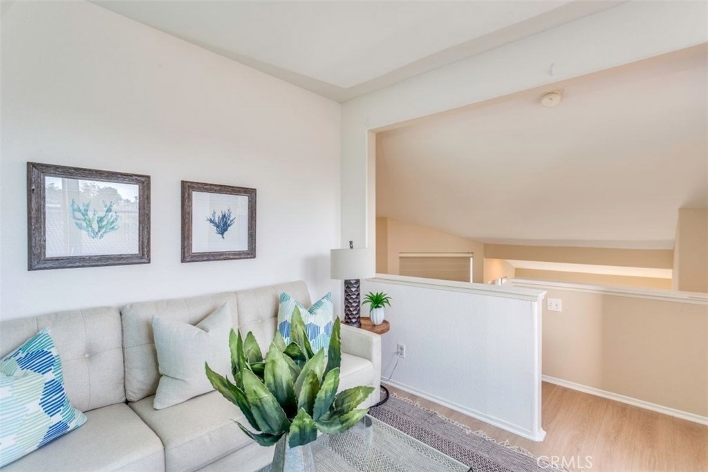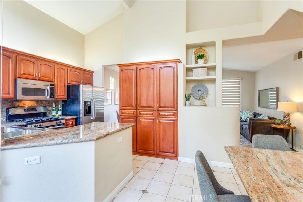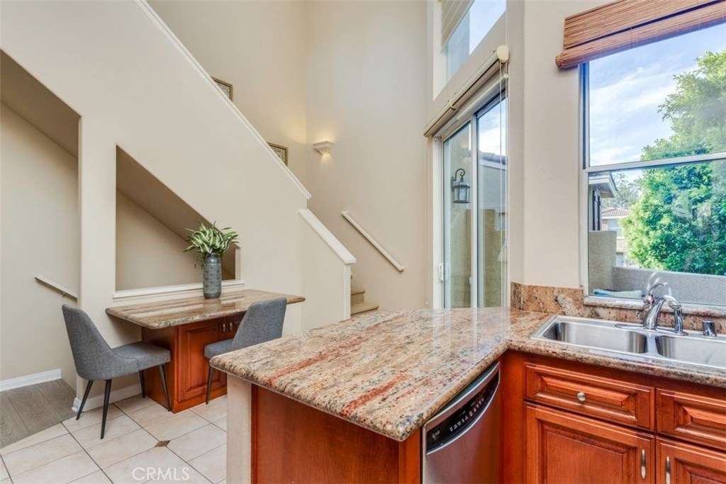 Highly desirable community of Monaco Condominiums!! Beautiful 3 bedroom 2 bath home offers high vaulted ceilings allowing for tons of natural lighting throughout the day as well as a peaceful end unit location. Highly upgraded kitchen with cherry wood cabinetry, granite counter tops and stainless steel appliances. Beautiful laminate flooring for easy care and maintenance . The 3rd bedroom is a upstairs loft currently being used as a den/office that could be easily plumbed and ready for a 3rd bathroom and could be converted into a full 3rd bedroom suite. Perfect for those out of town guest. Also included is direct access 2 car garage. This community is in one of the best school districts in the area. The resort-style living offers some of the best amenities with pool, spa and tennis courts!! Close by to most major freeways, toll roads and shopping. Don't miss out on the opportunity to own this Beautiful home.